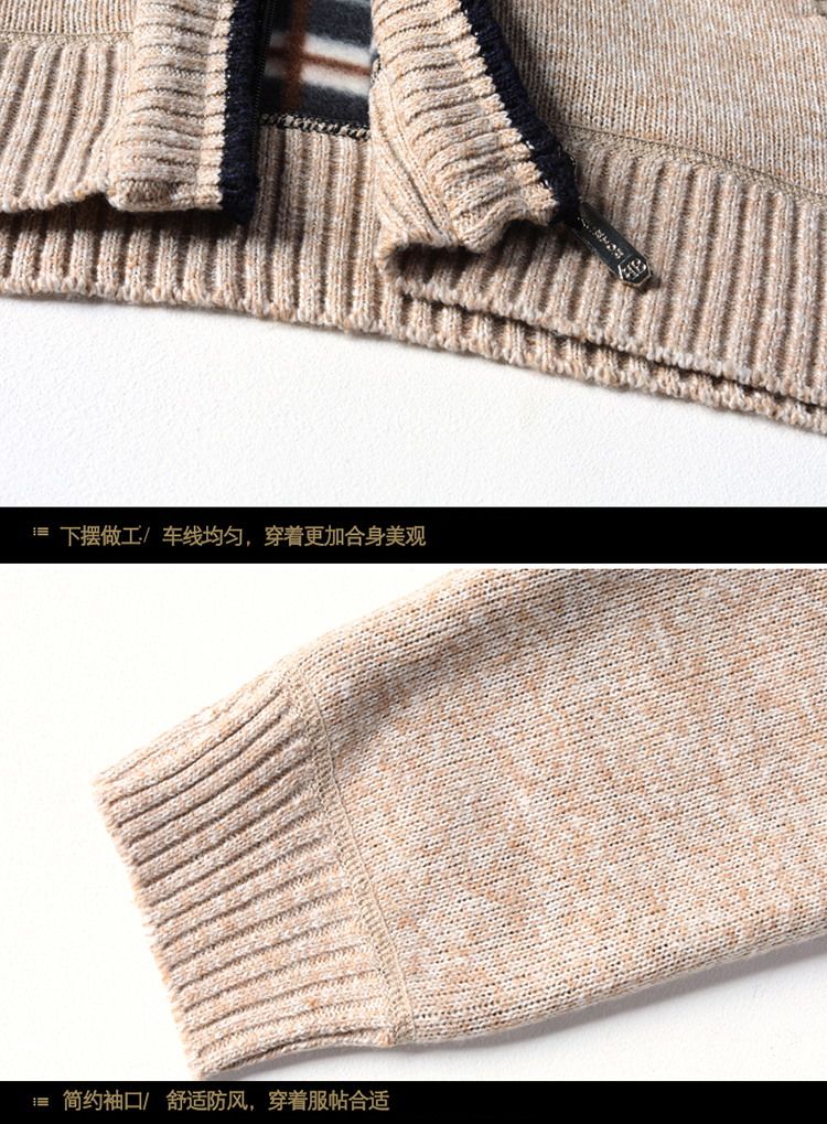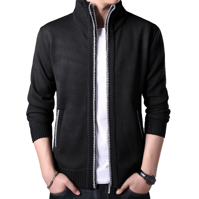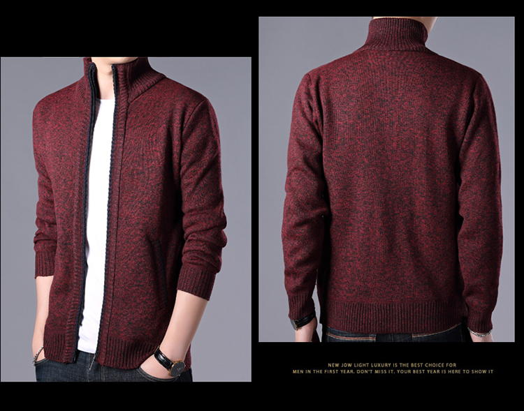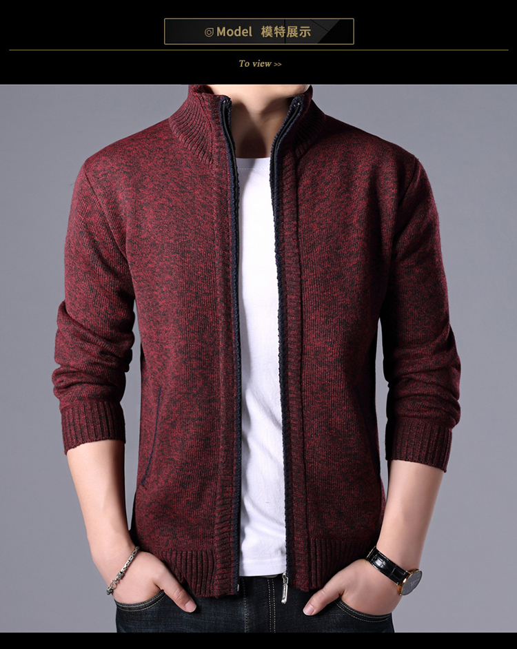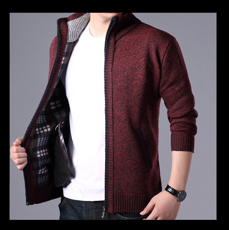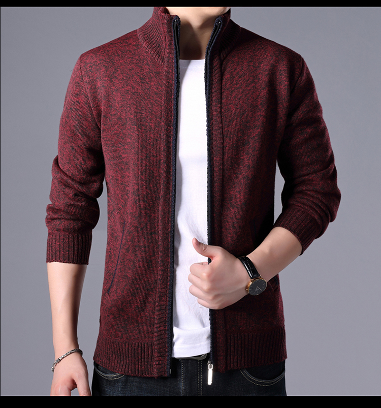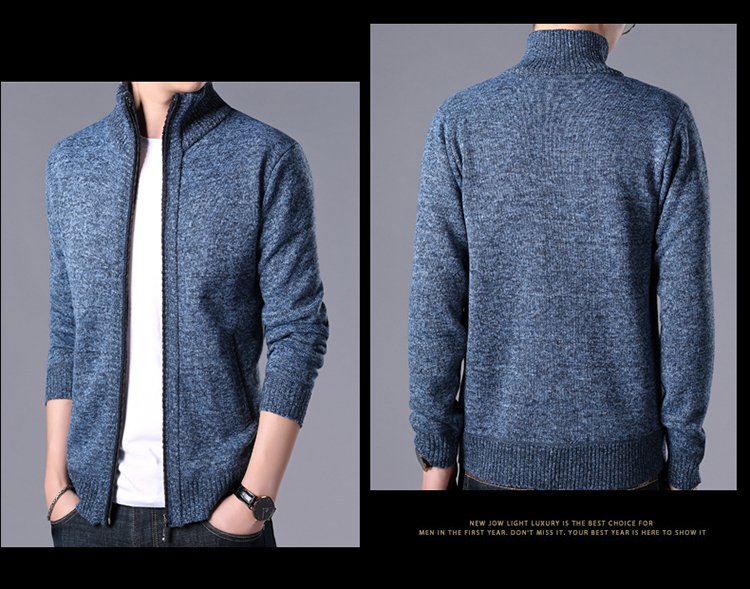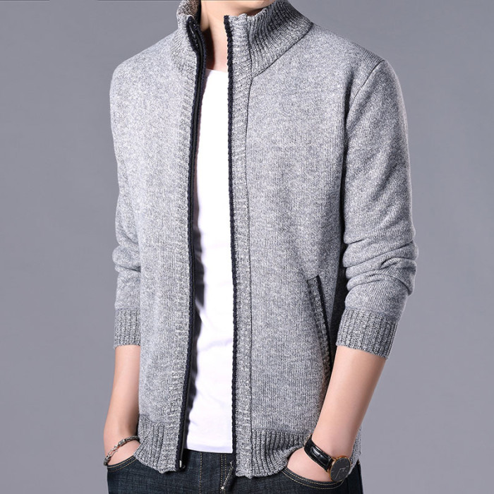秋冬新款男士開衫拉鍊毛衣加絨加厚夾克純色百搭男針織衫上衣外套