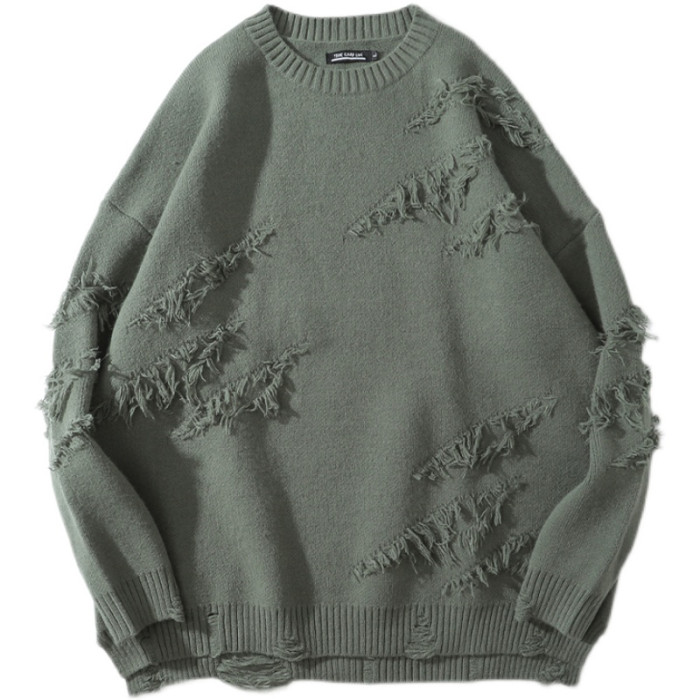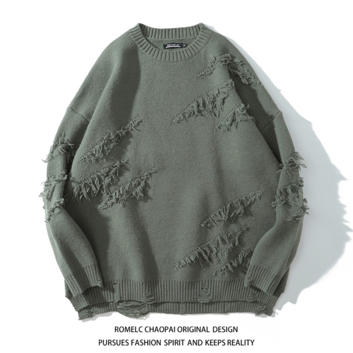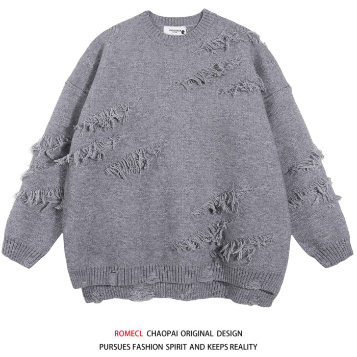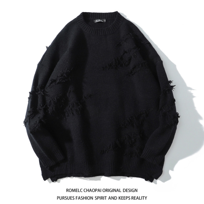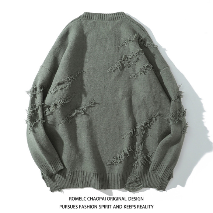 ROMECL秋冬潮牌破洞百搭男女保暖美式休閒日系復古百搭毛衣針織衫