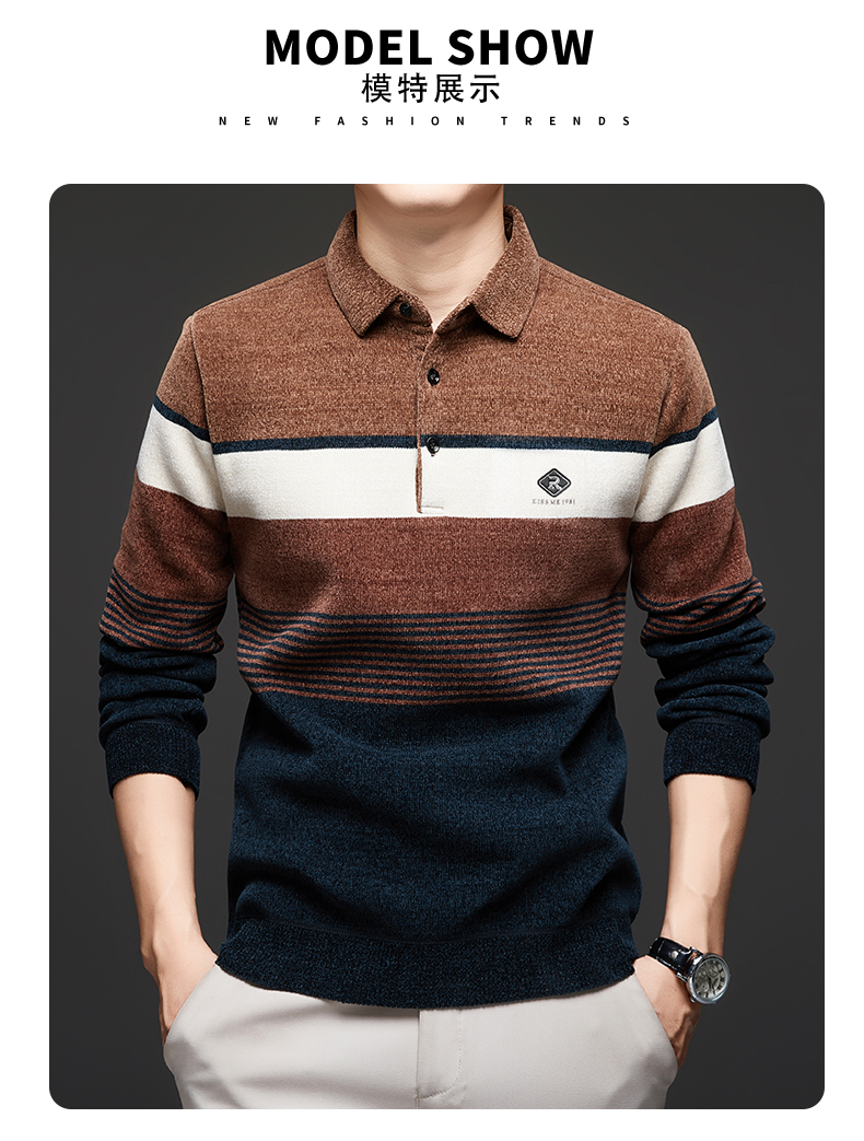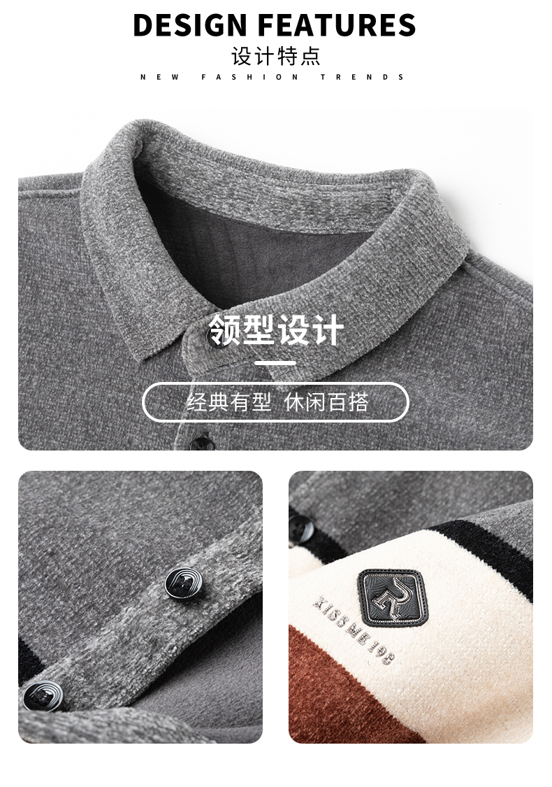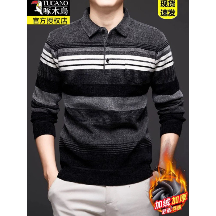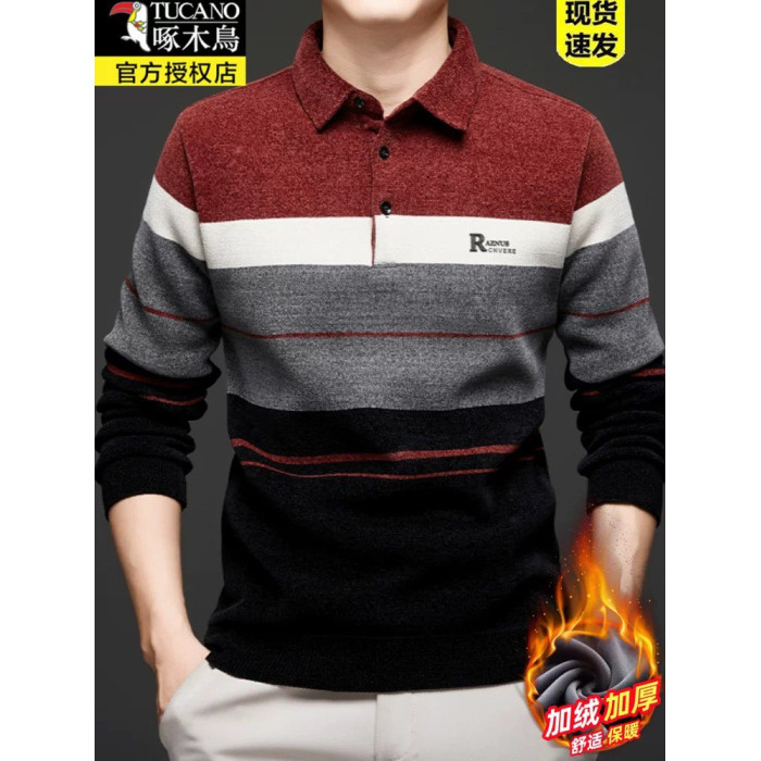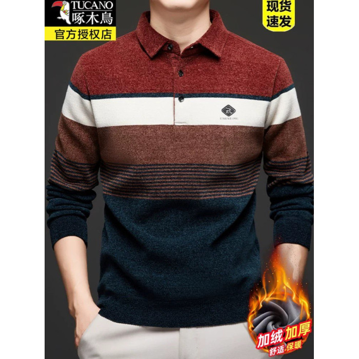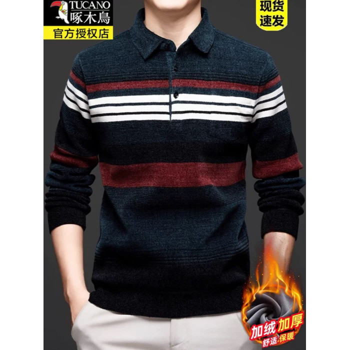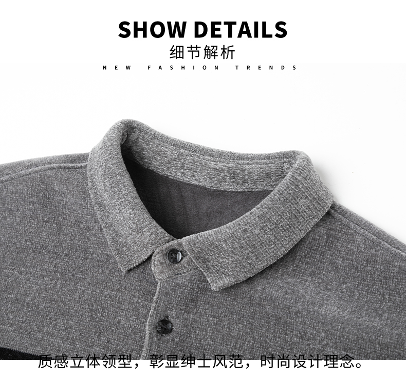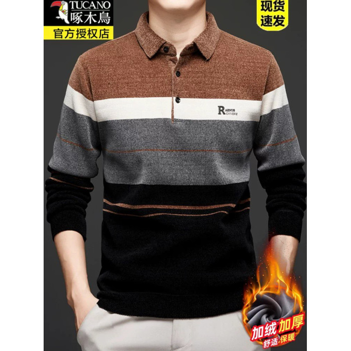 啄木鳥長袖雪尼爾毛衣男士秋冬高檔翻領t恤加絨加厚打底衫針織衫