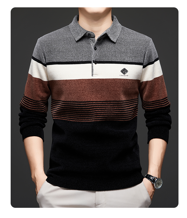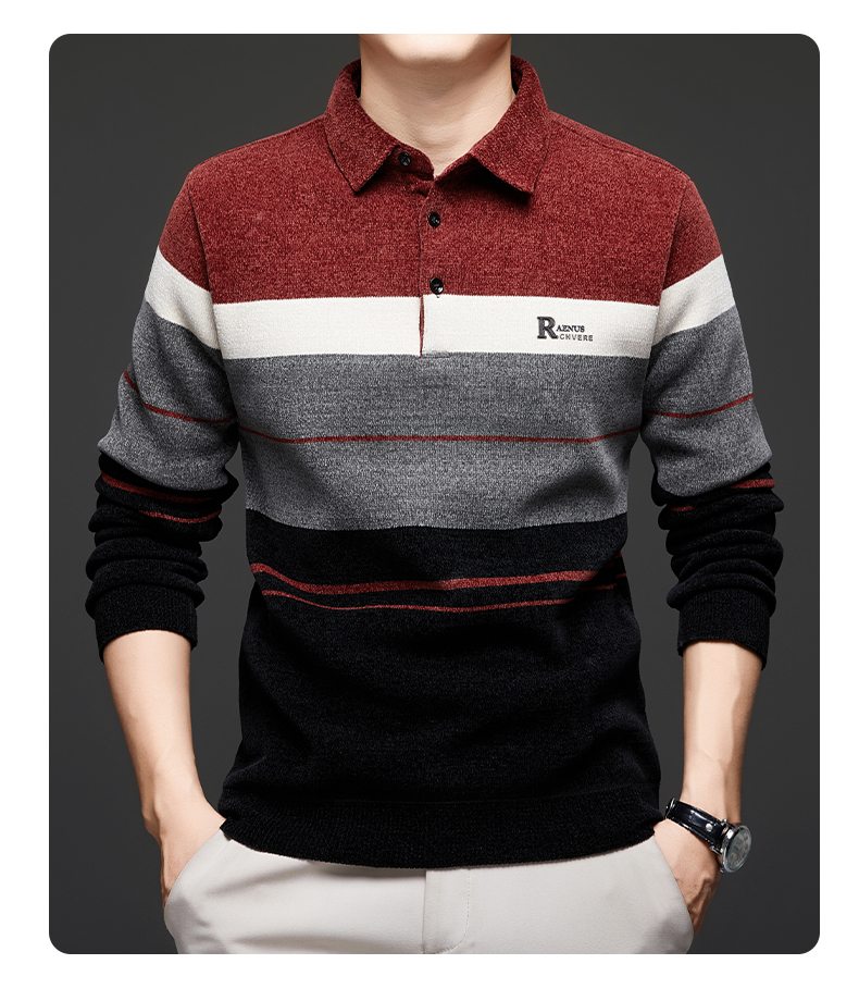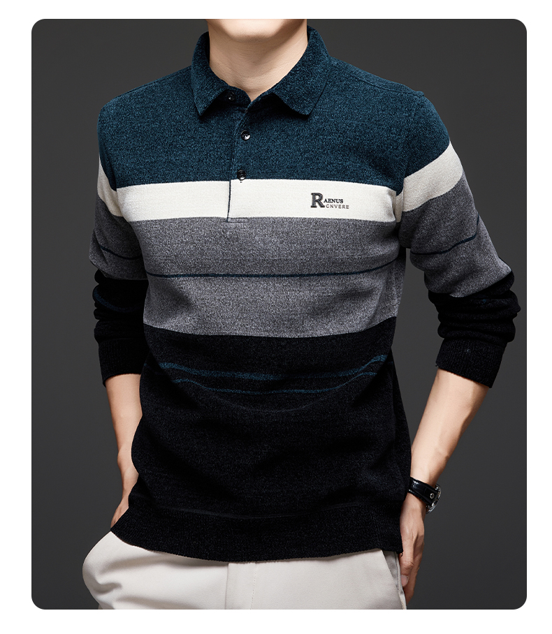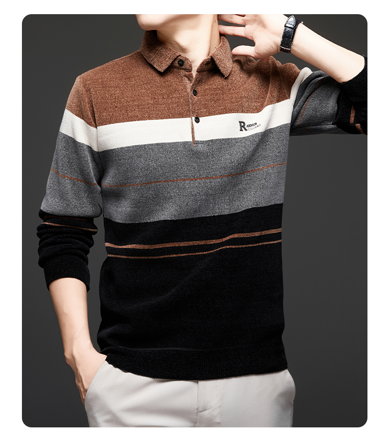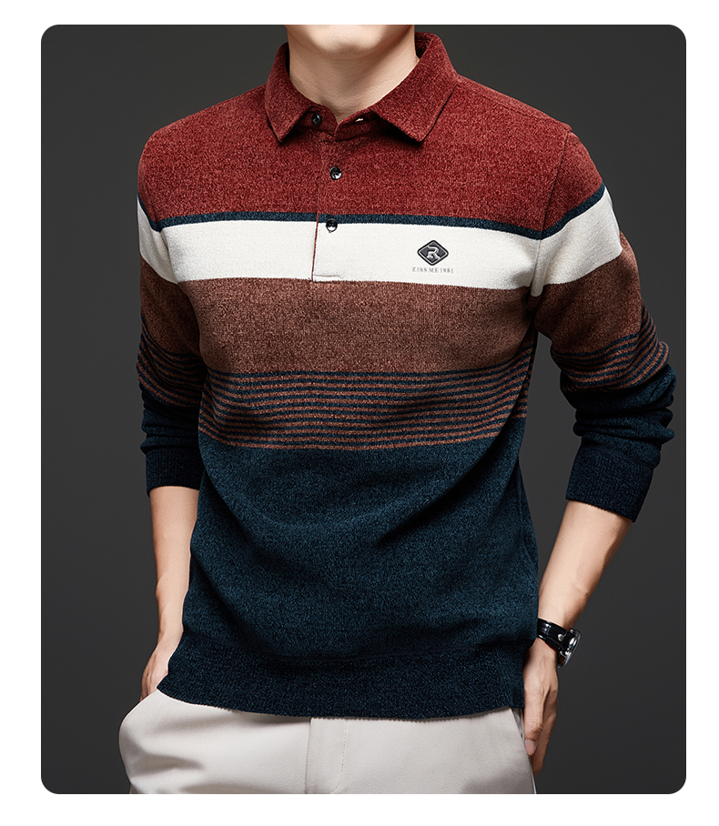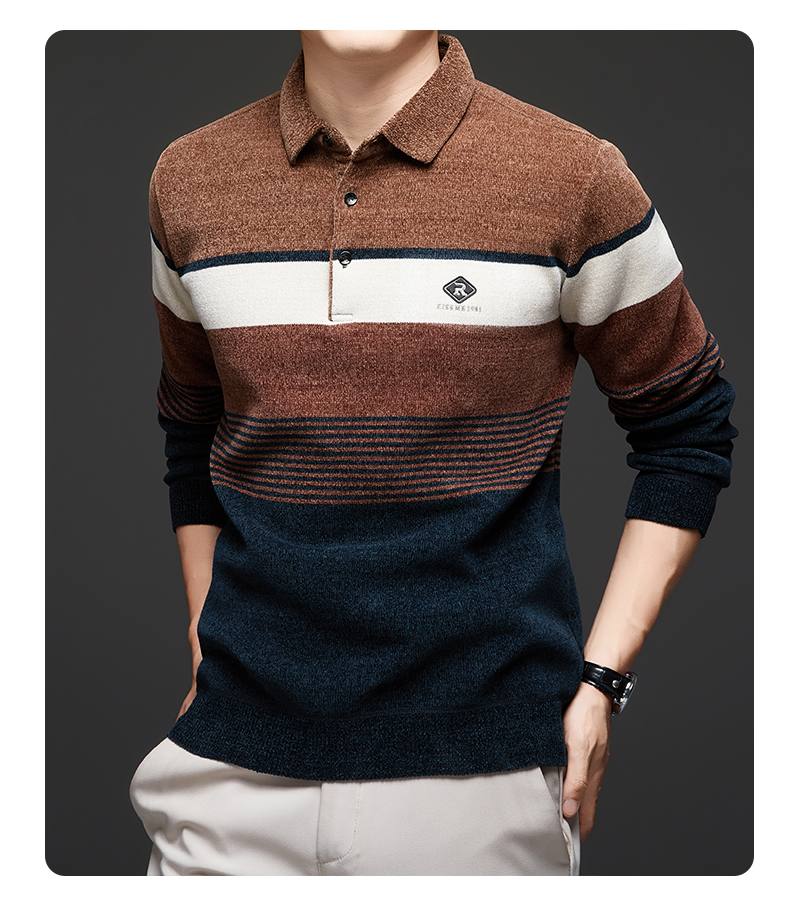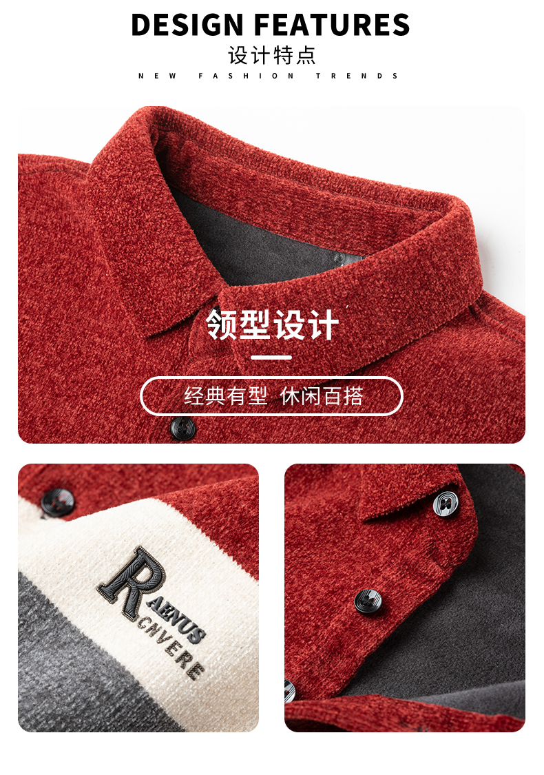 啄木鳥長袖雪尼爾毛衣男士秋冬高檔翻領t恤加絨加厚打底衫針織衫