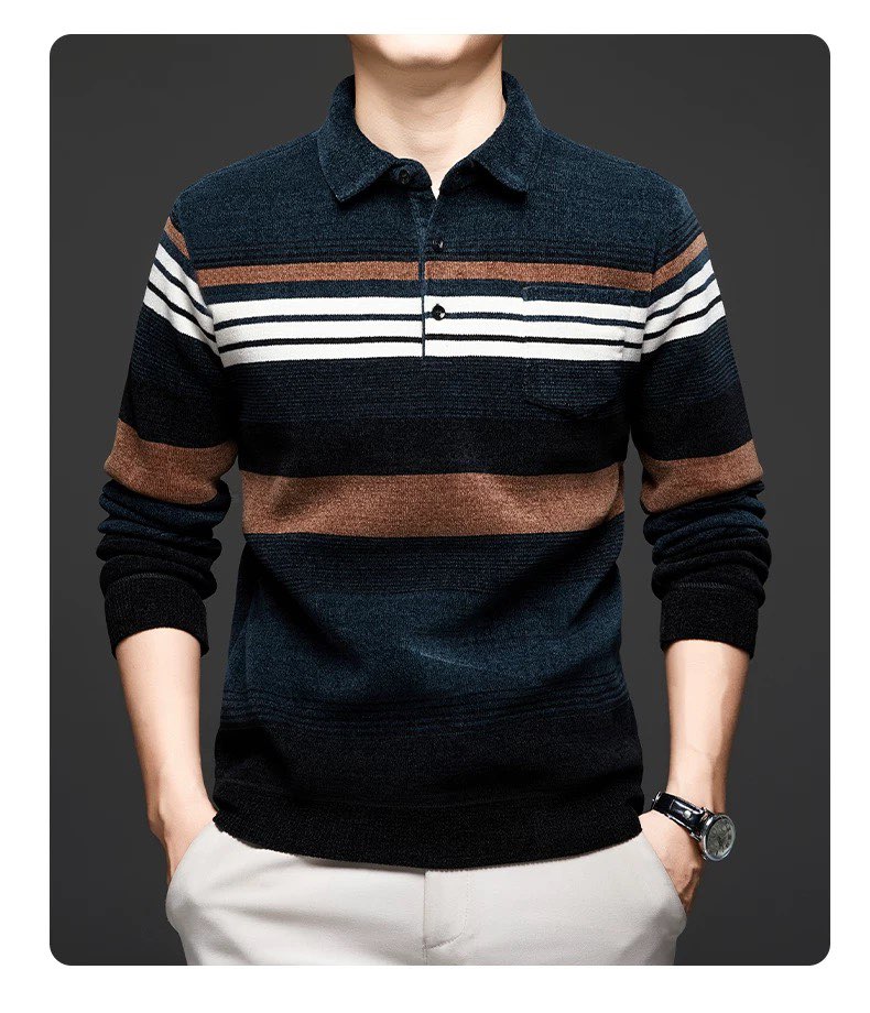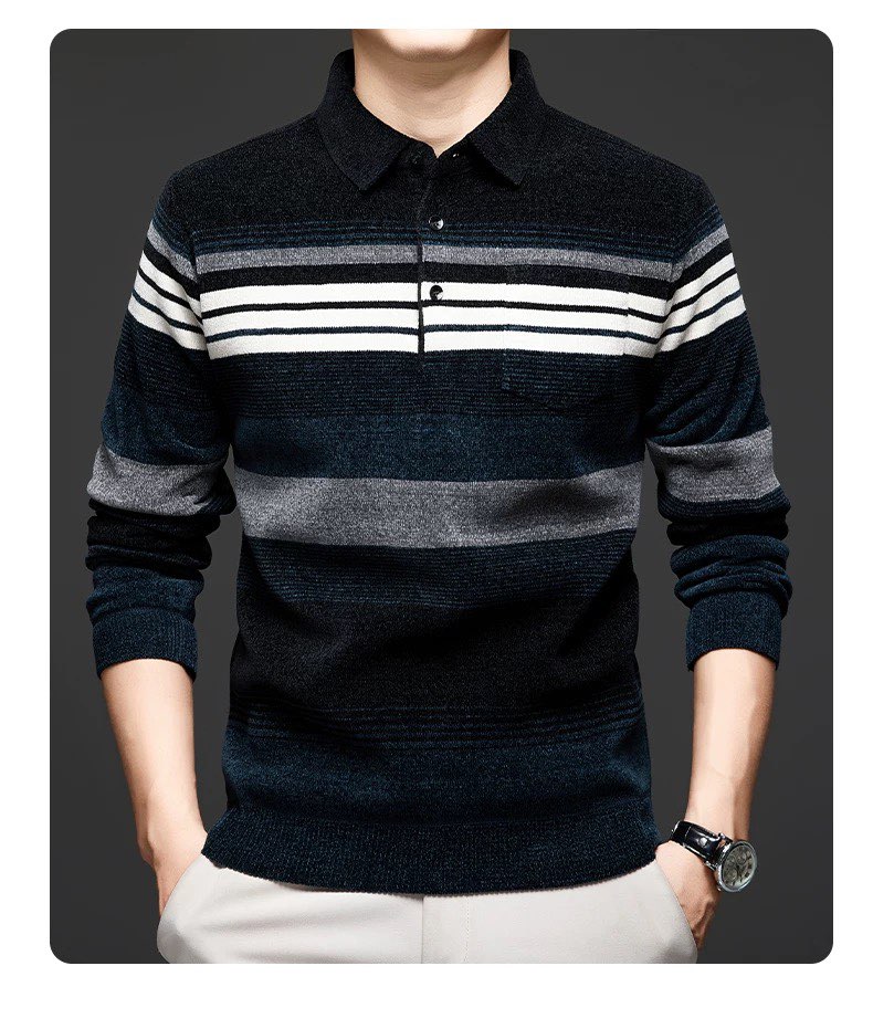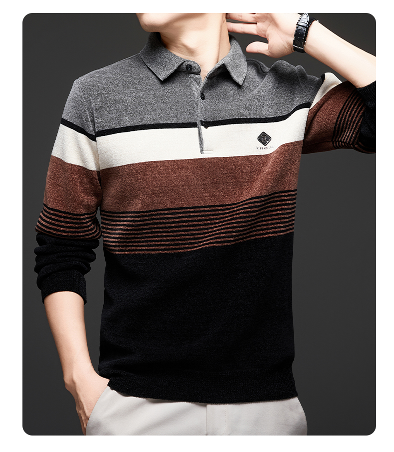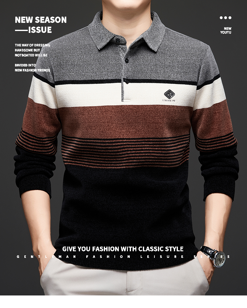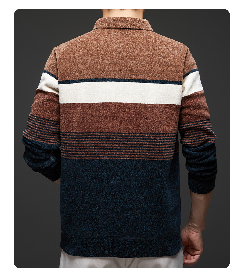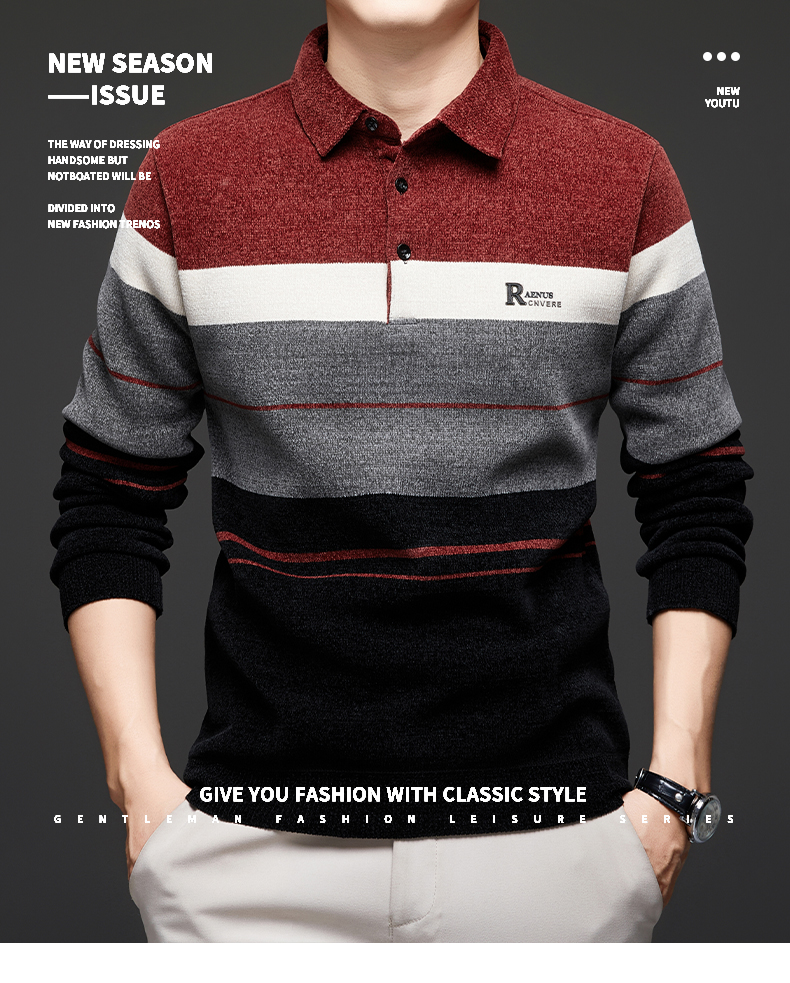 啄木鳥長袖雪尼爾毛衣男士秋冬高檔翻領t恤加絨加厚打底衫針織衫