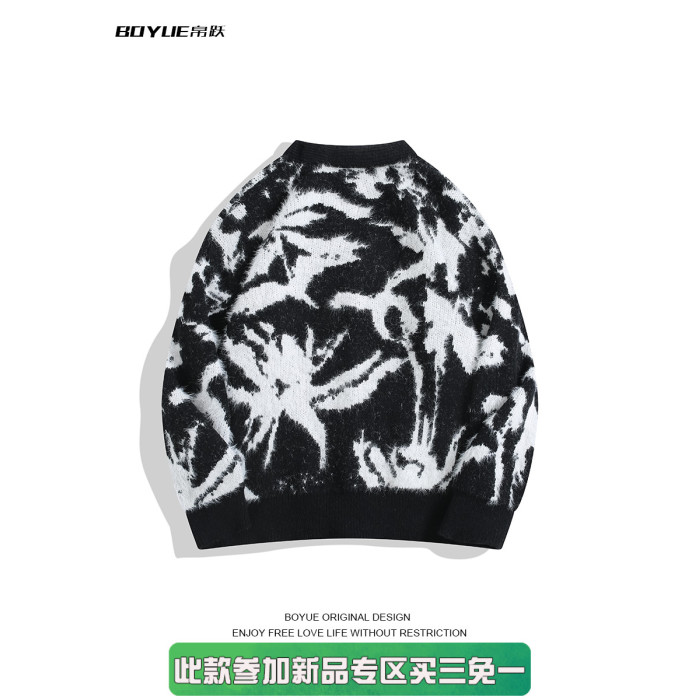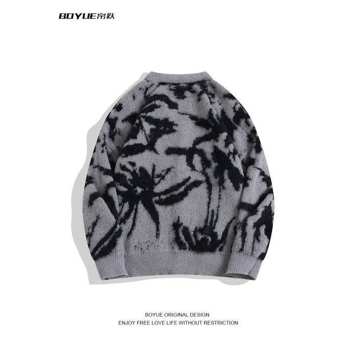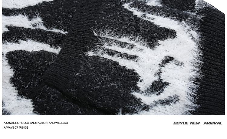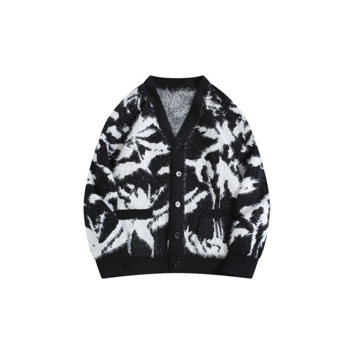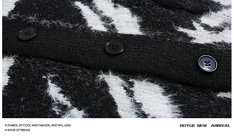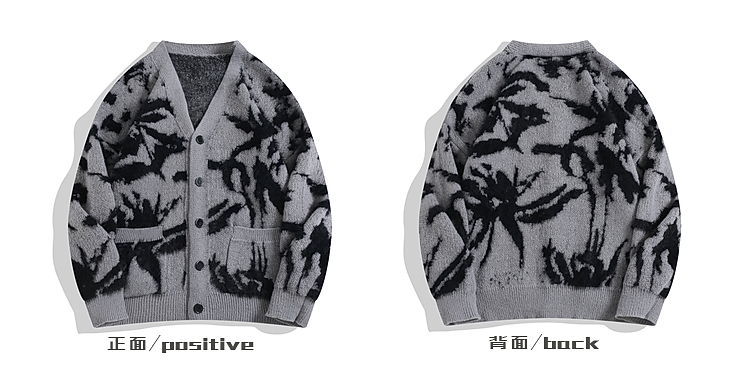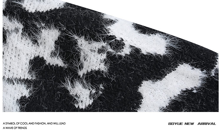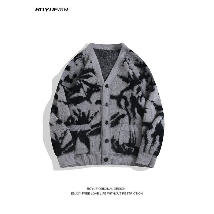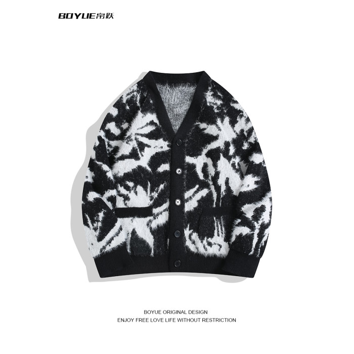 BOYUE帛躍秋冬小衆仿貂毛V領針織開衫復古提花紥染毛衣外套男女潮
