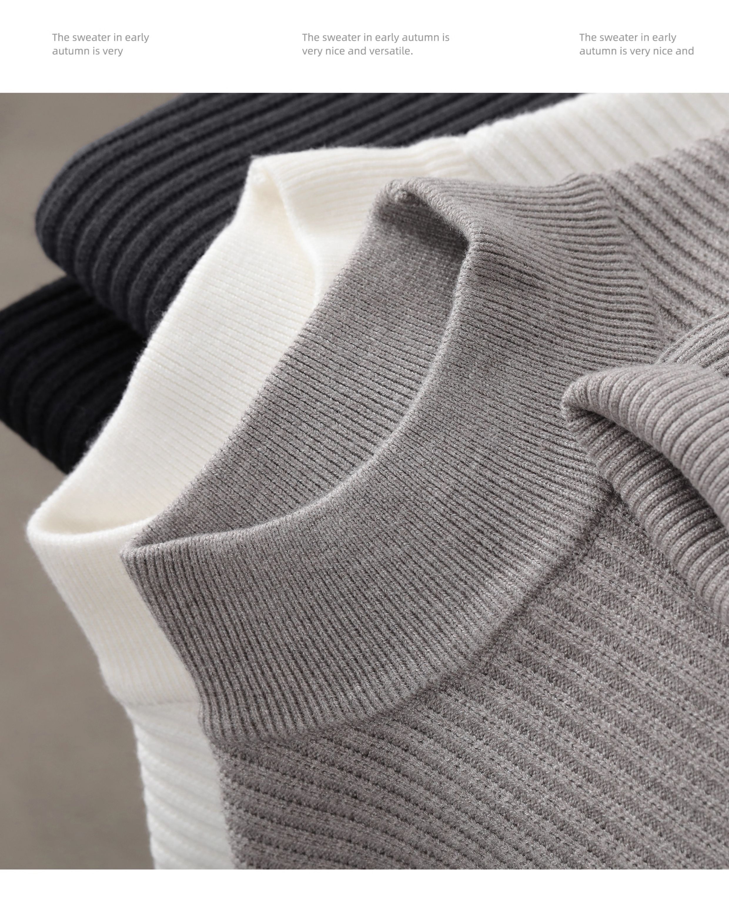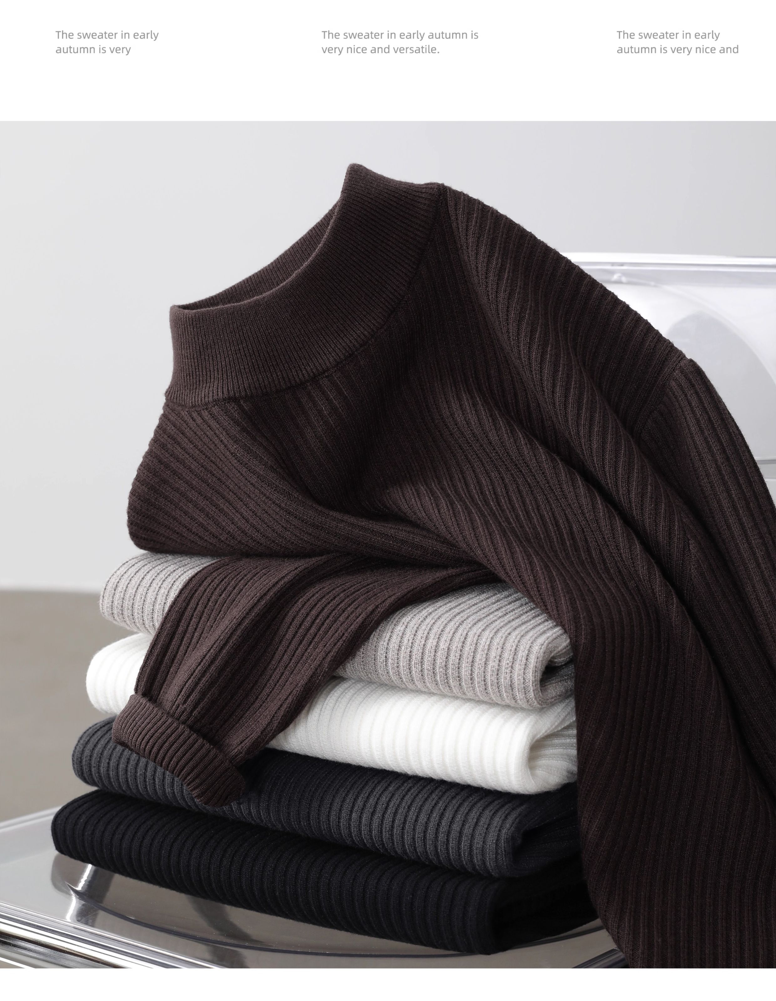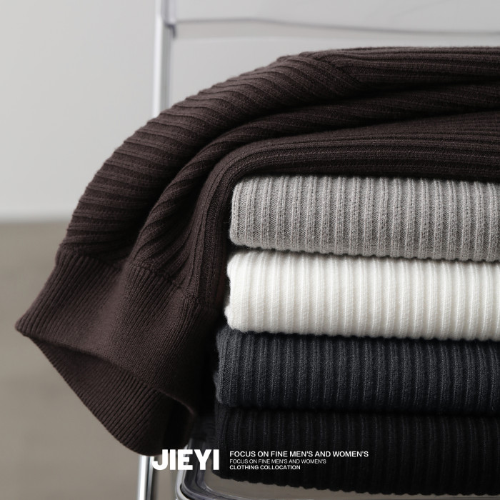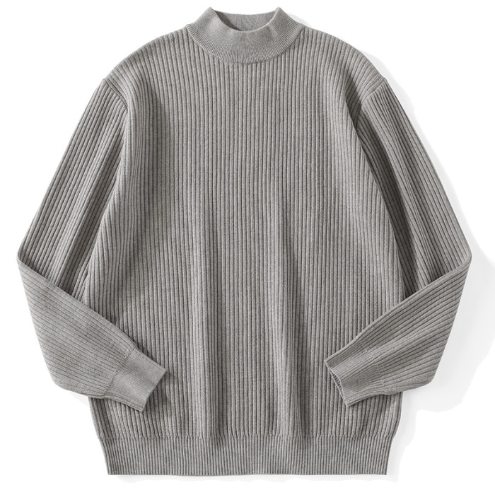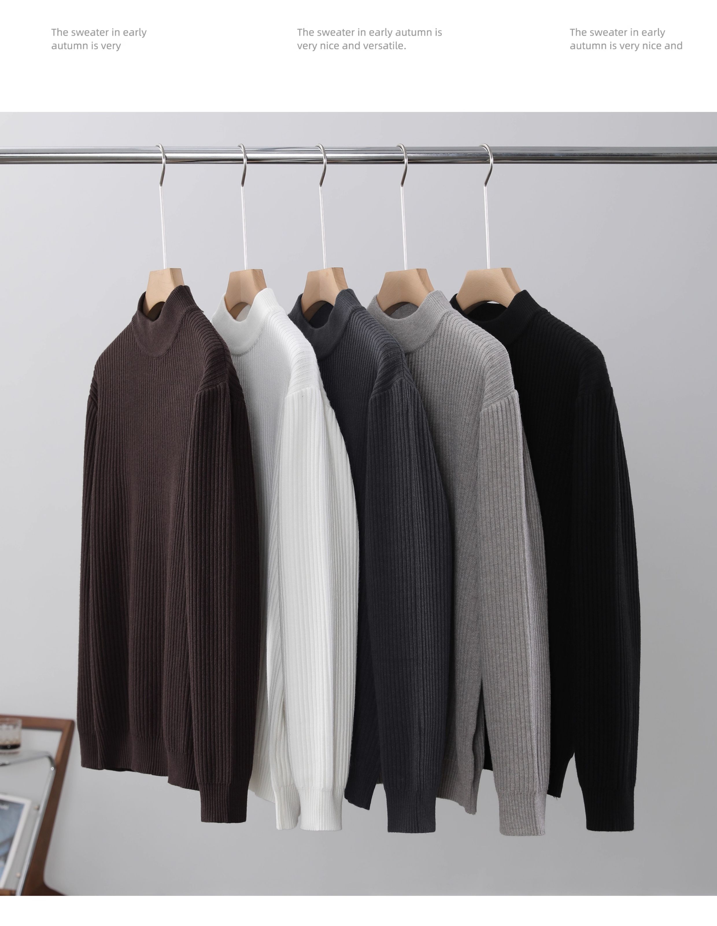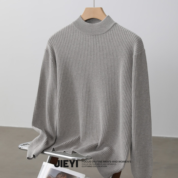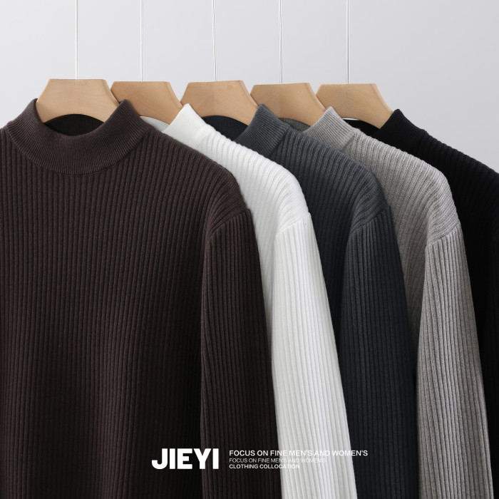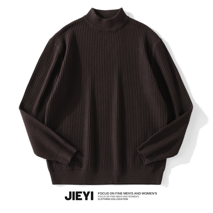 介乙 提花半高領毛衣男冬季慵懶風中領打底衫潮流內搭保暖針織衫