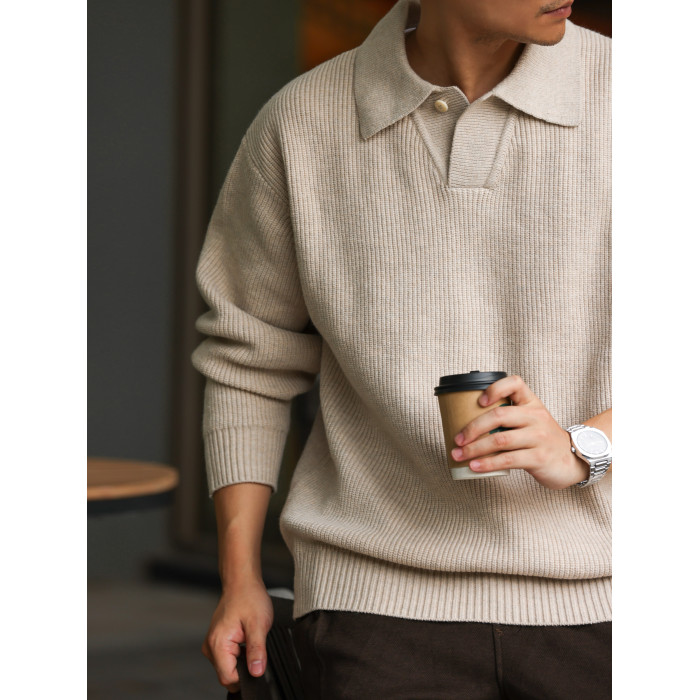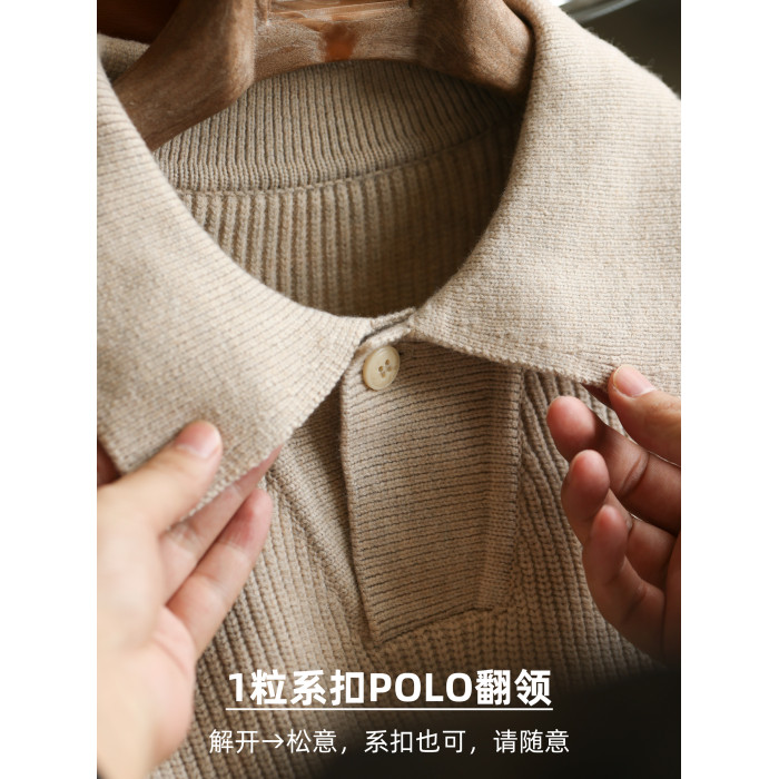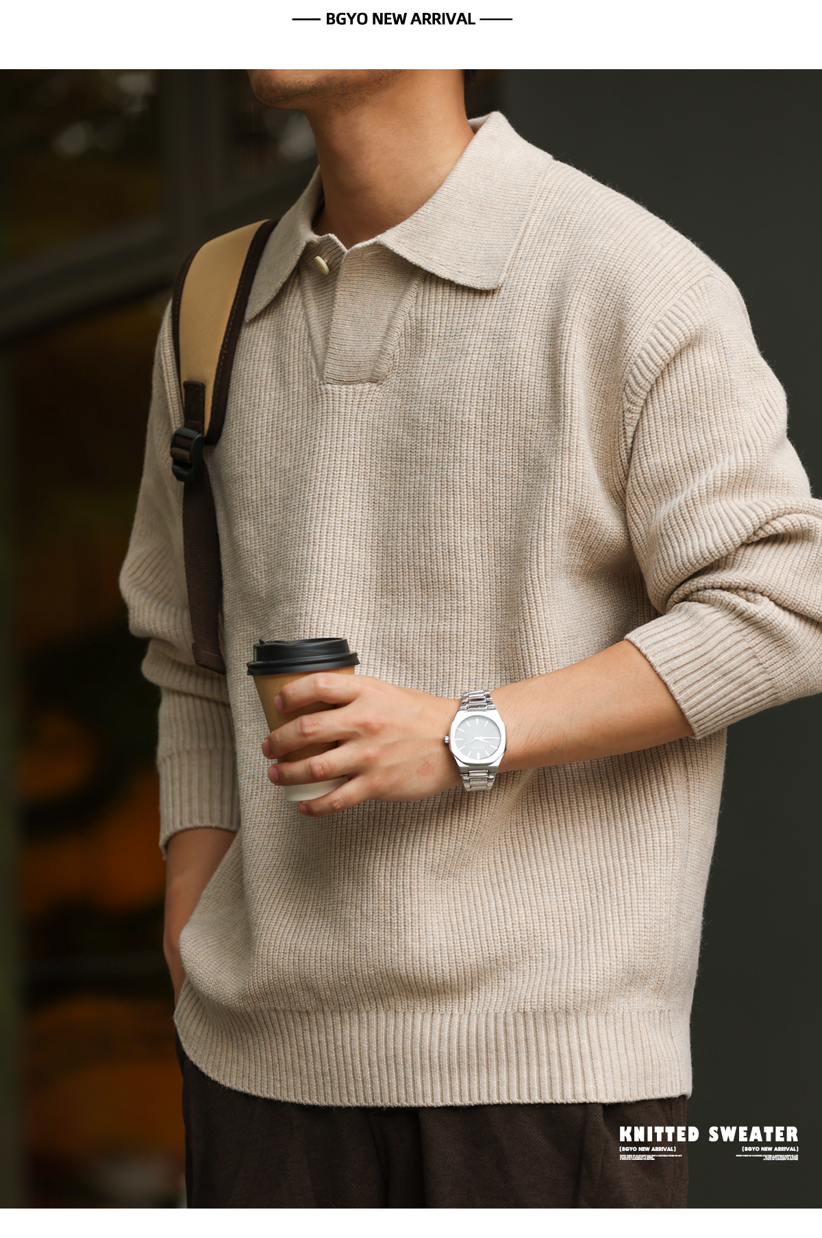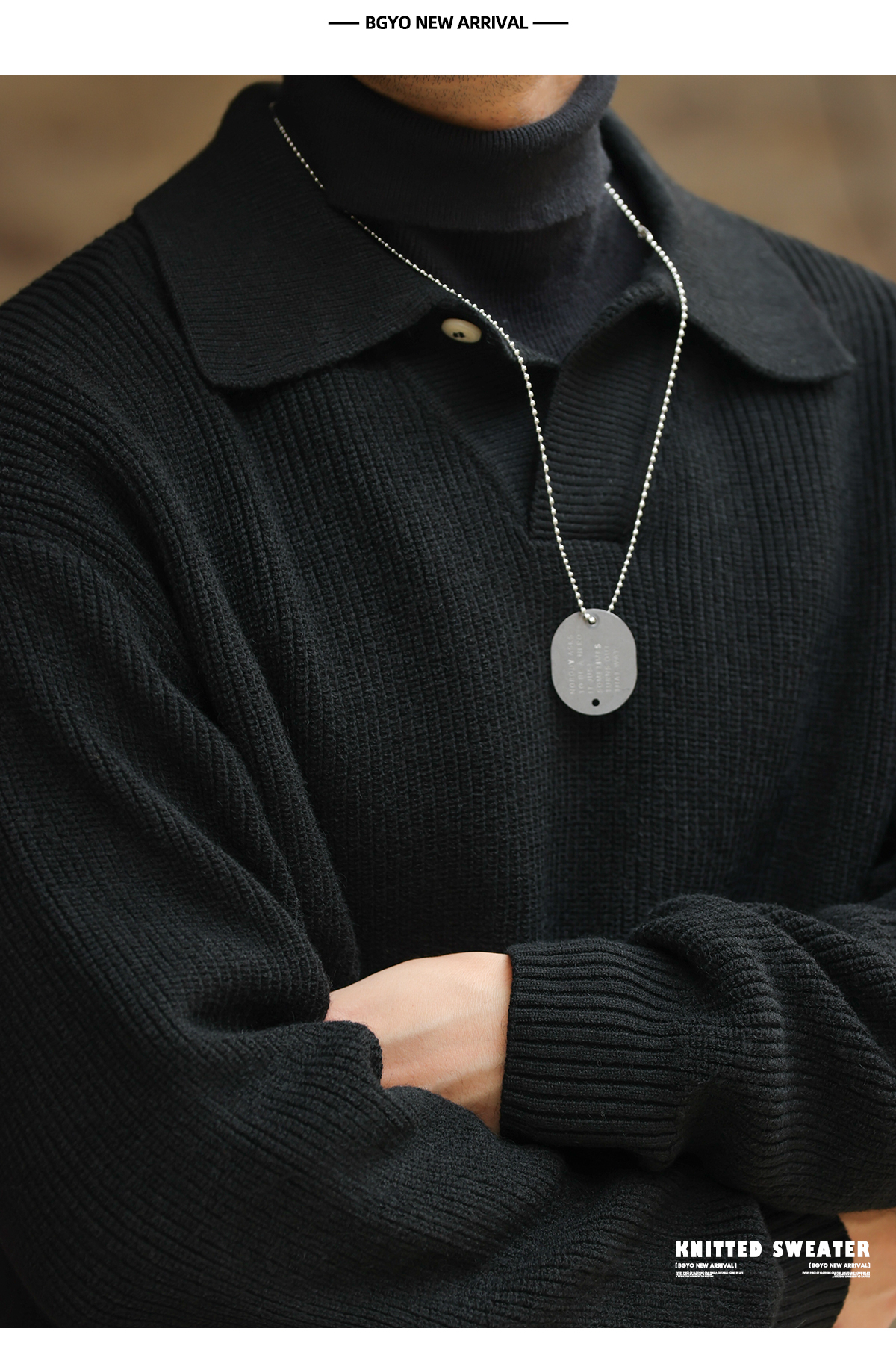 BGYO鹿起 美式復古單粒釦polo領針織衫男660g粗針慵懶風毛衣外套