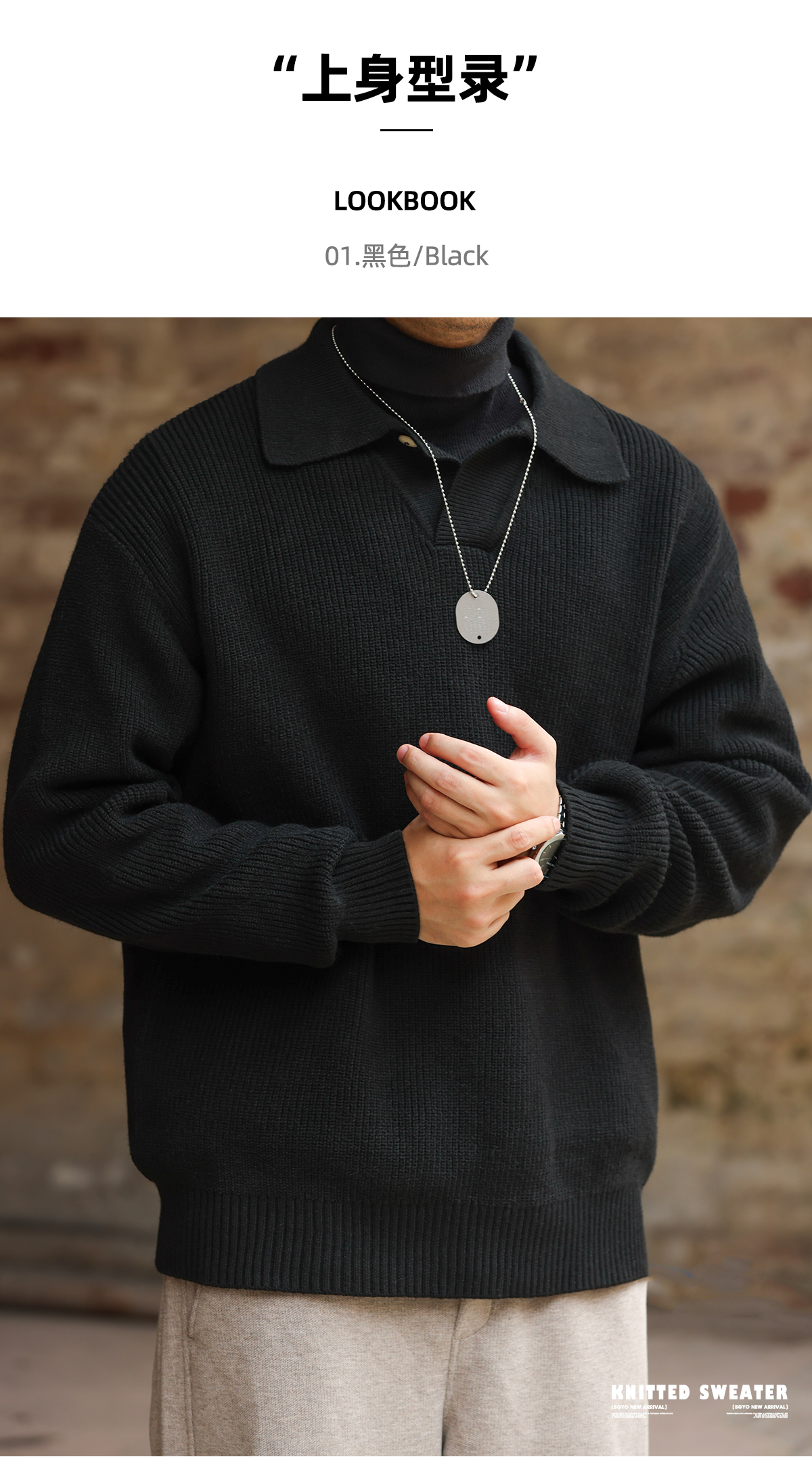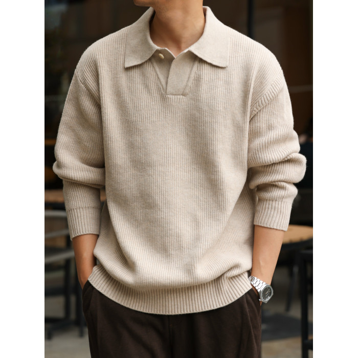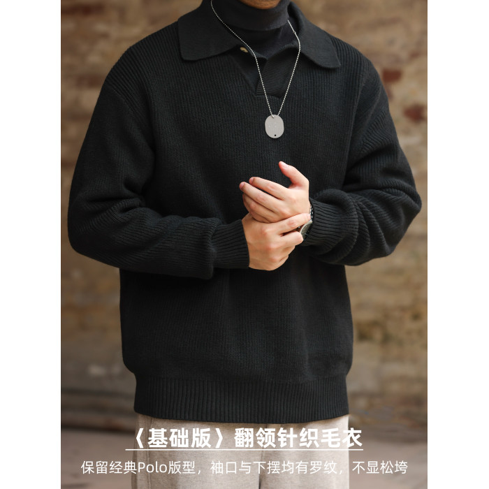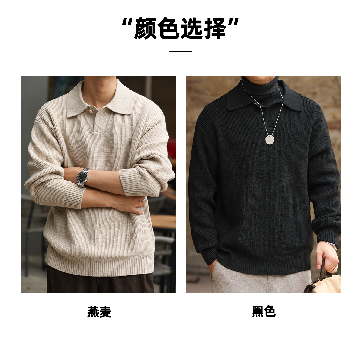 BGYO鹿起 美式復古單粒釦polo領針織衫男660g粗針慵懶風毛衣外套