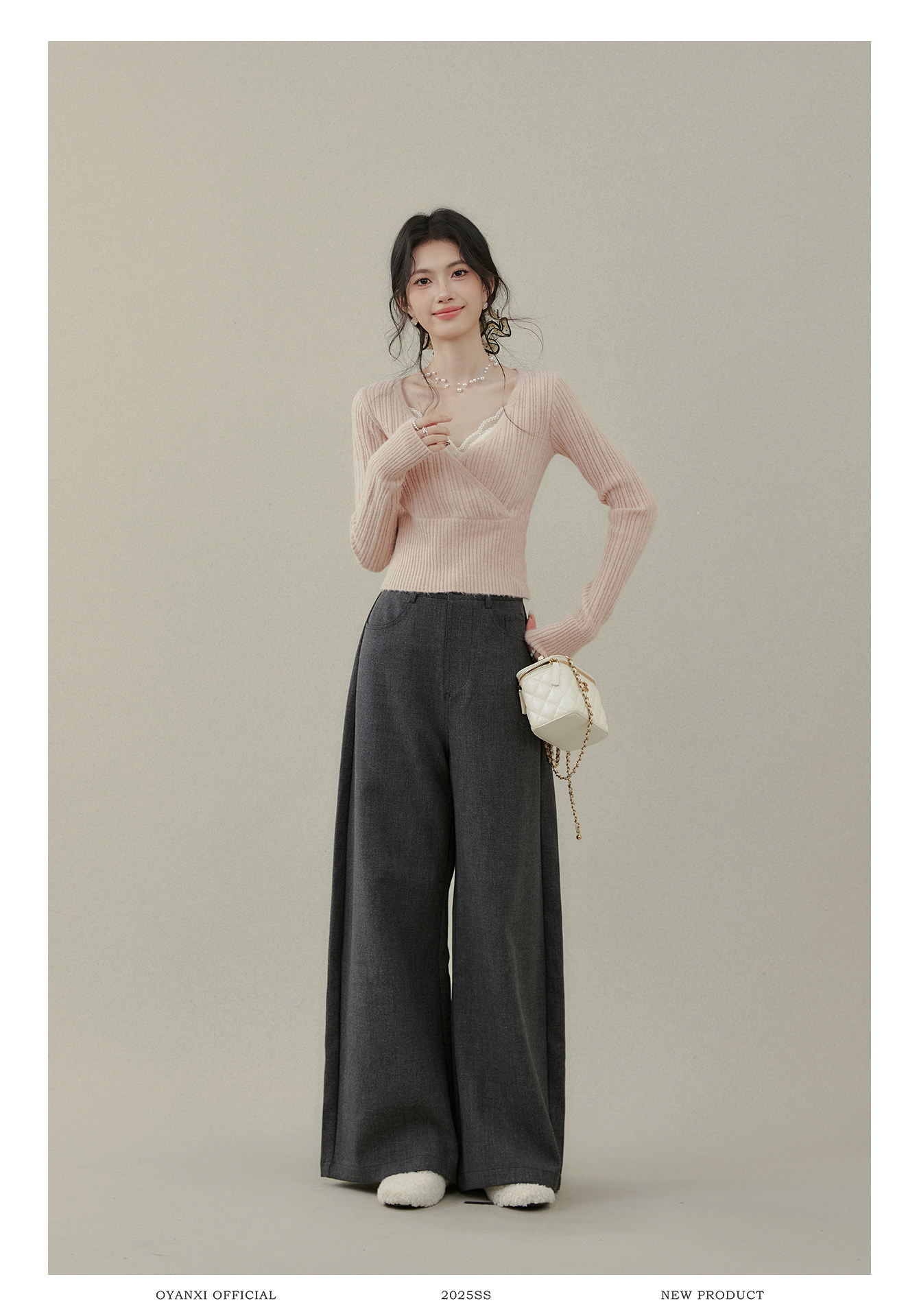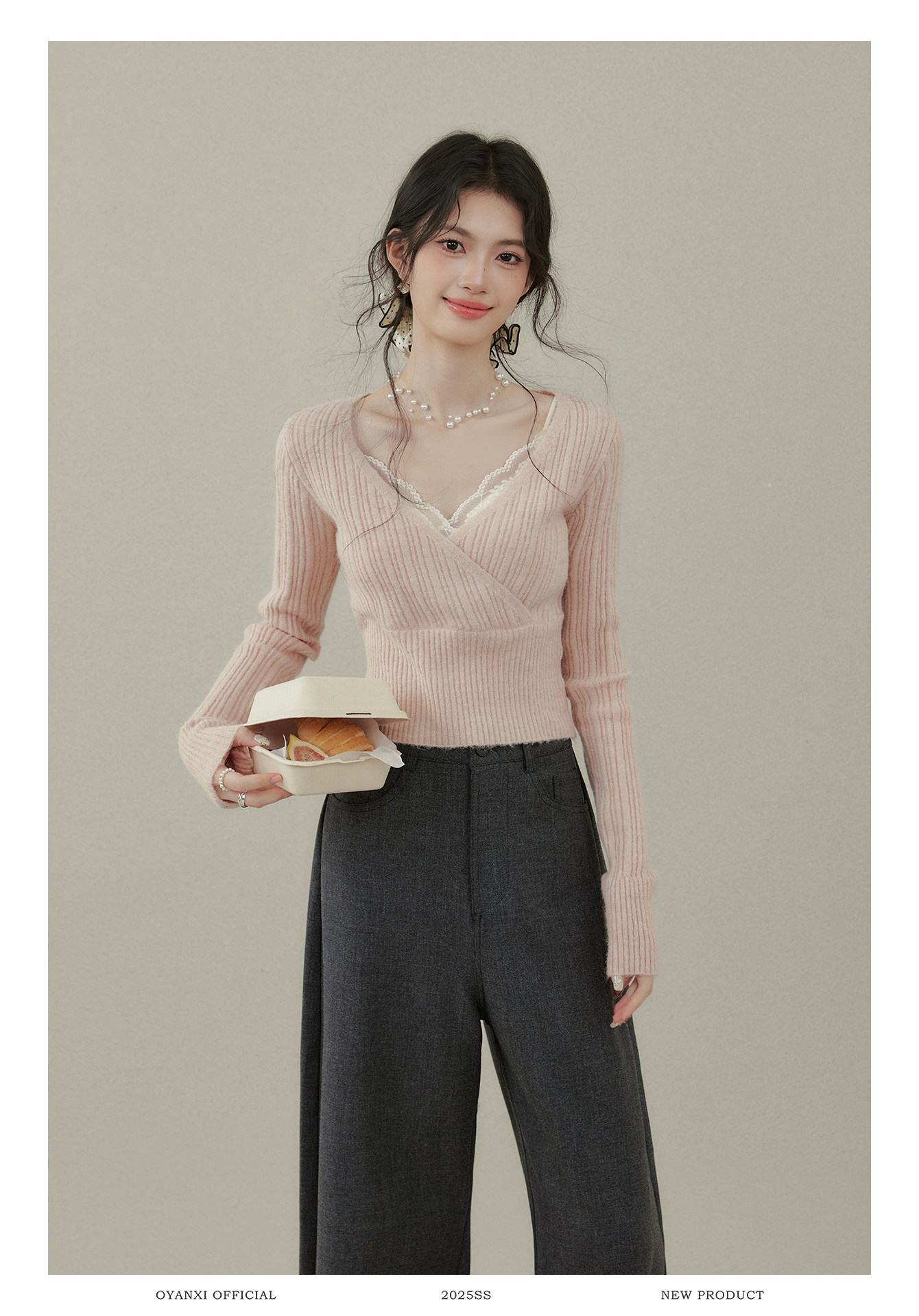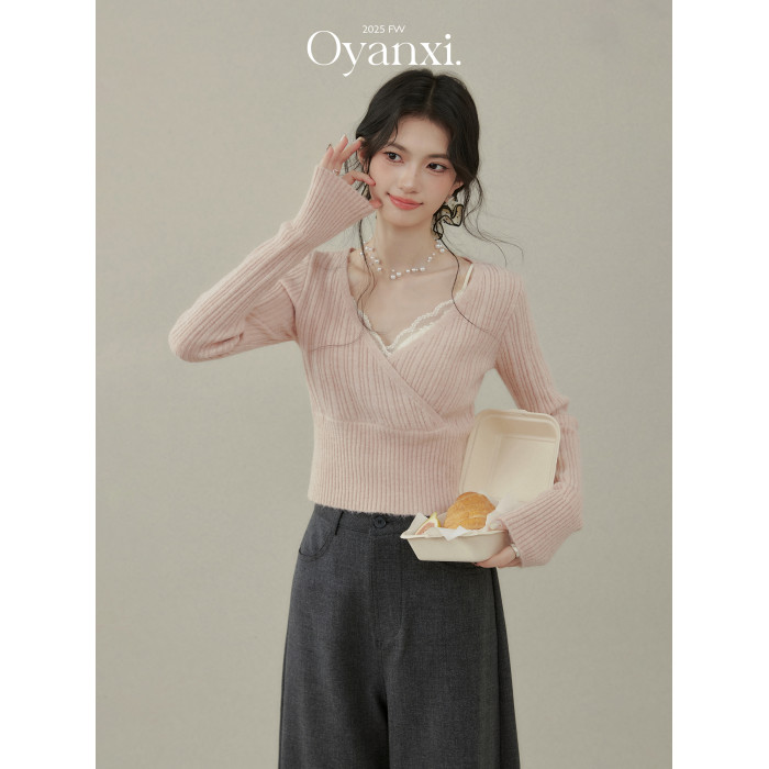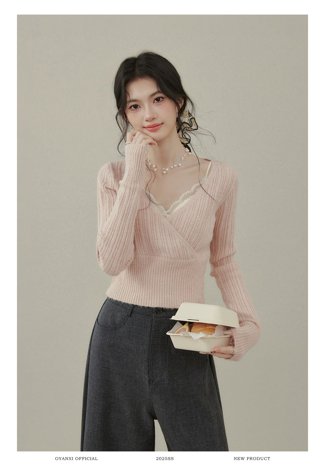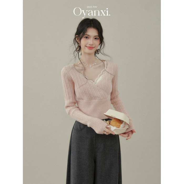 歐陽喜《甜氧旋律》粉色長袖針織毛衣女秋冬季新款修身絕美小上衣