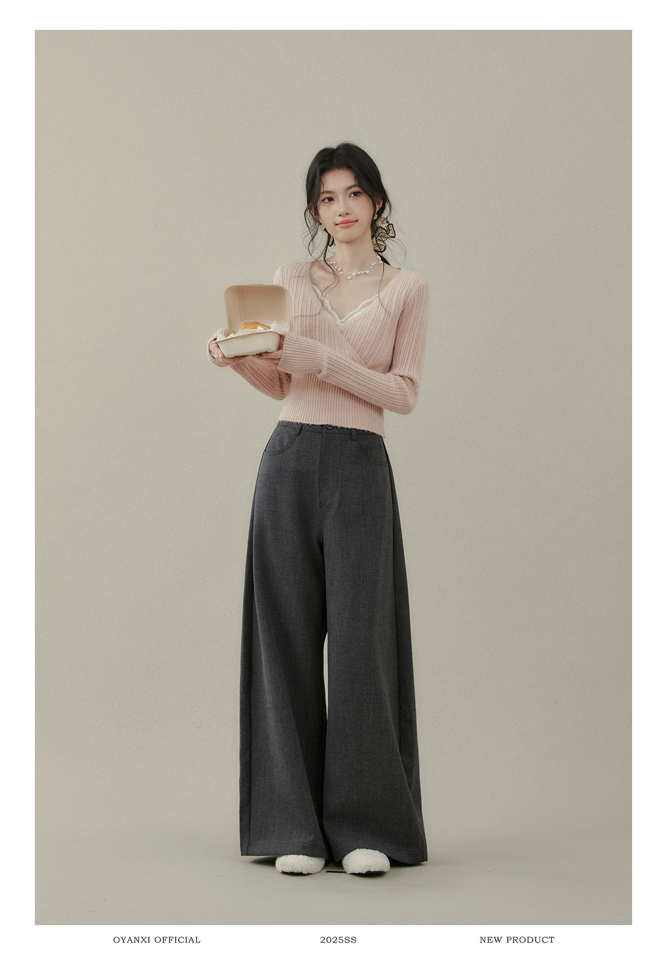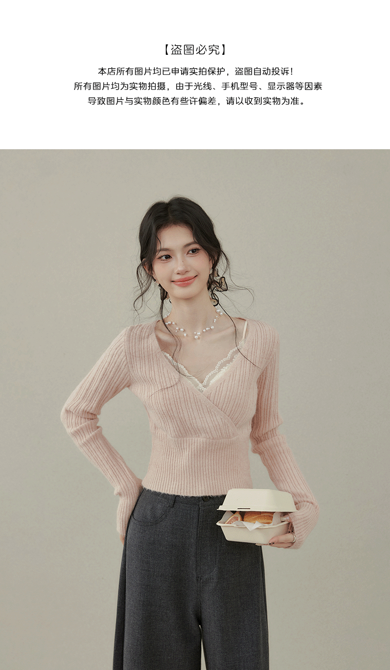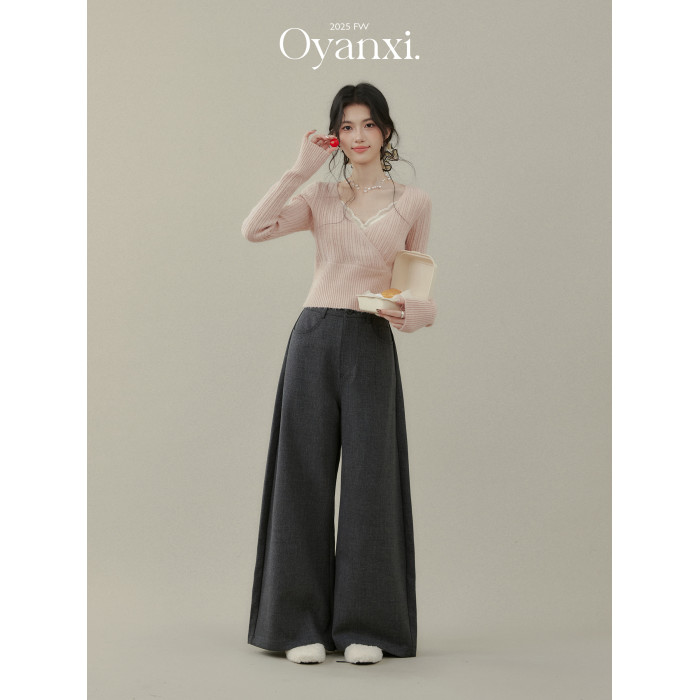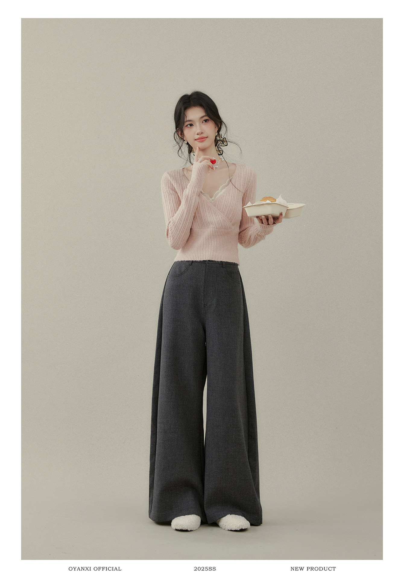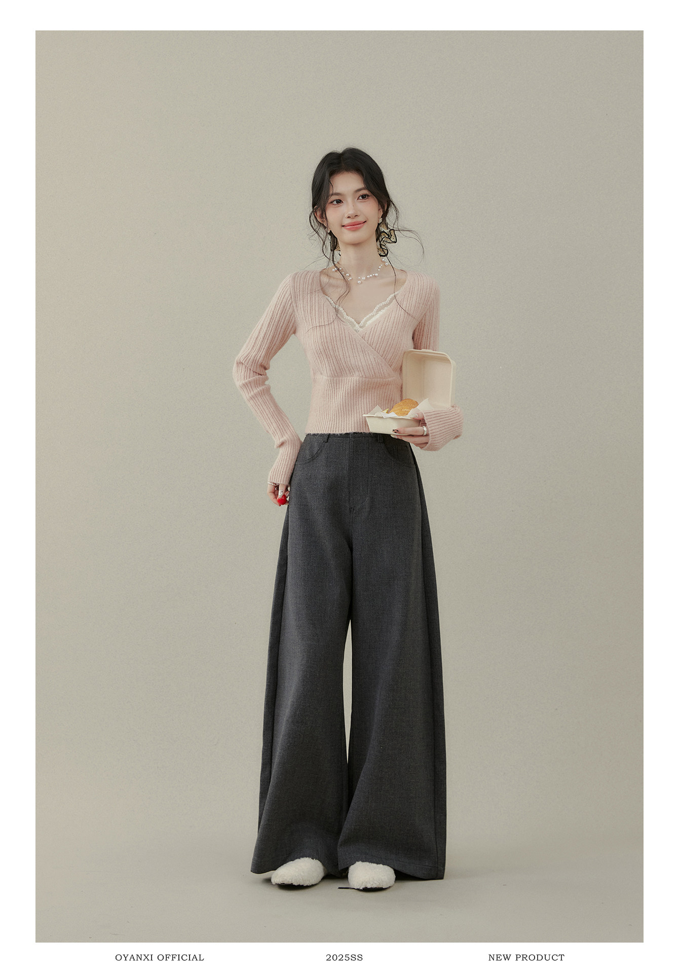 歐陽喜《甜氧旋律》粉色長袖針織毛衣女秋冬季新款修身絕美小上衣