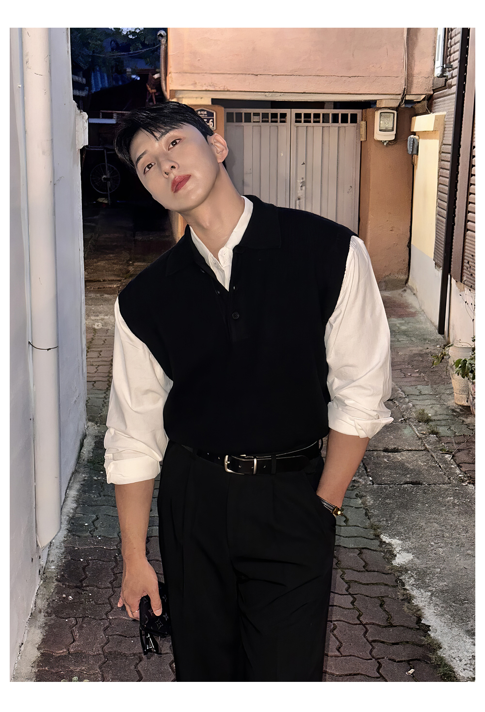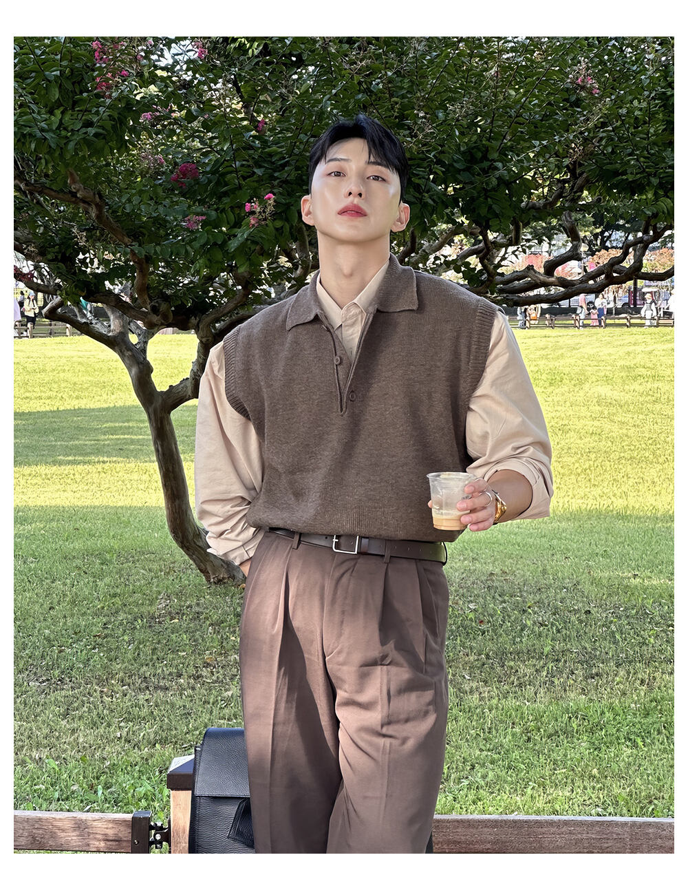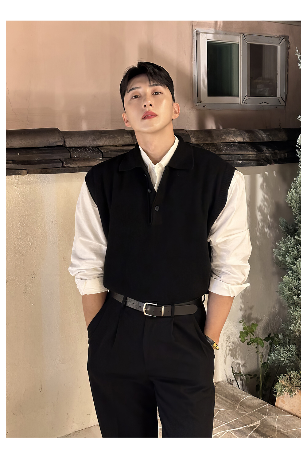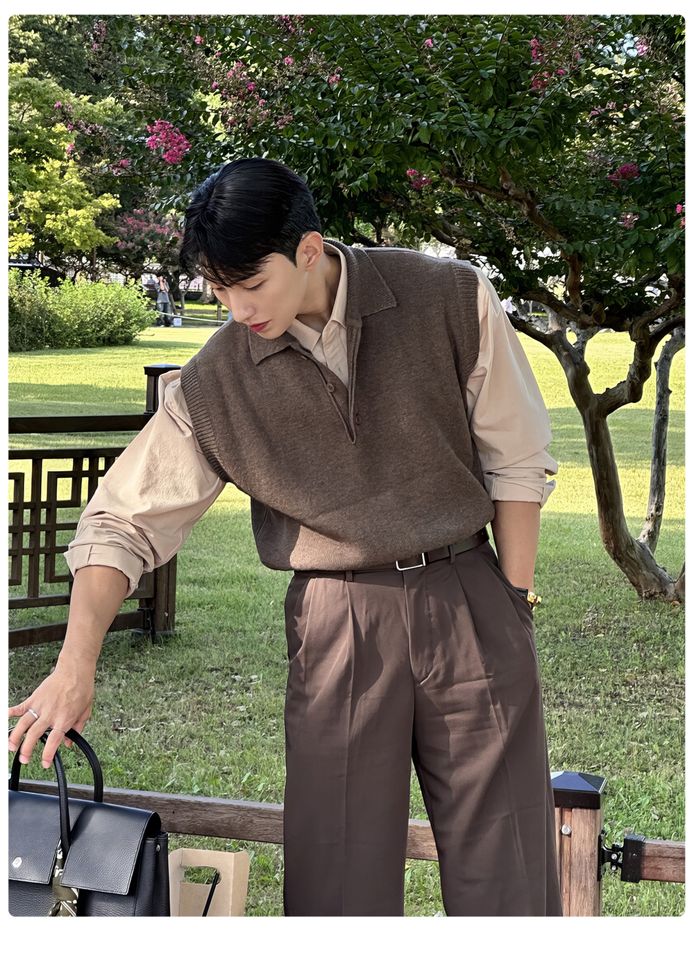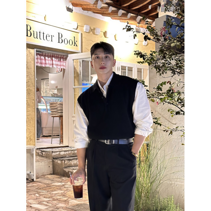 翻領針織衫背心男士春秋韓版美拉德穿搭無袖毛衣輕熟風polo領馬甲