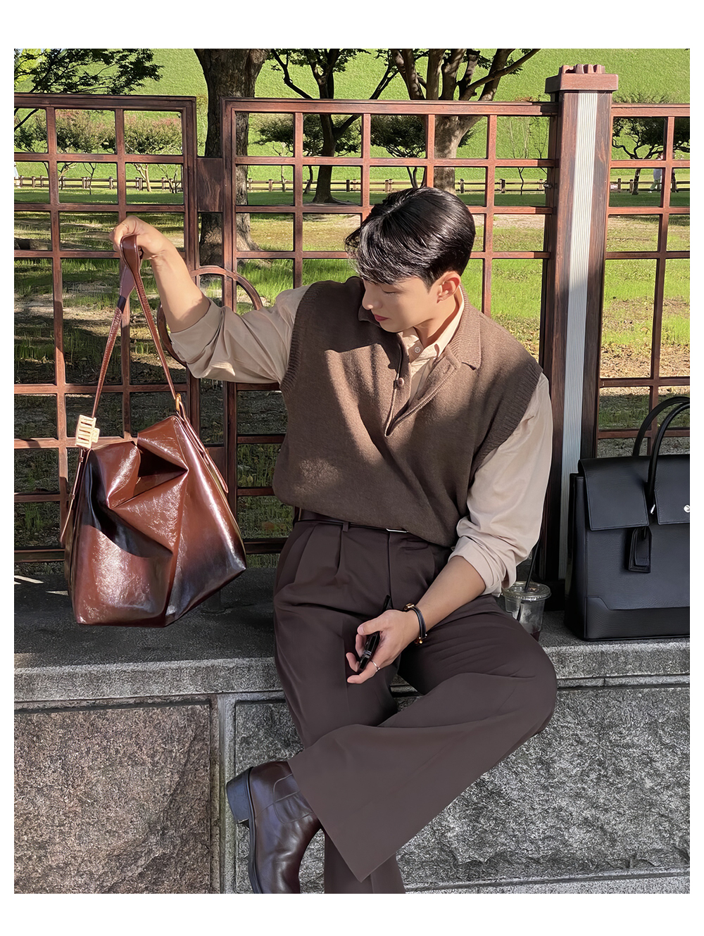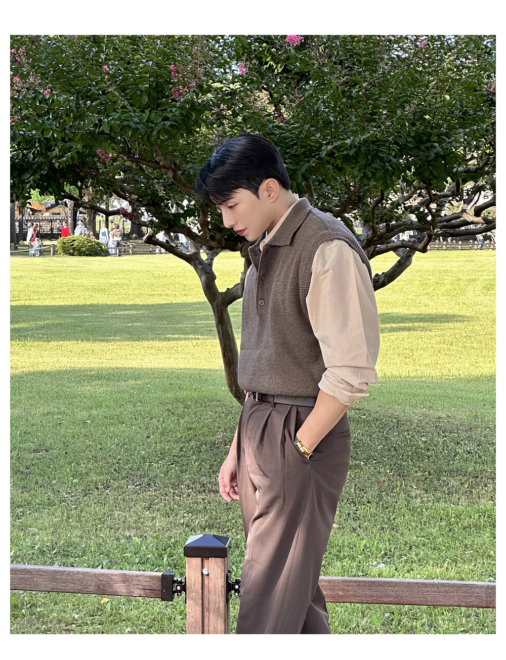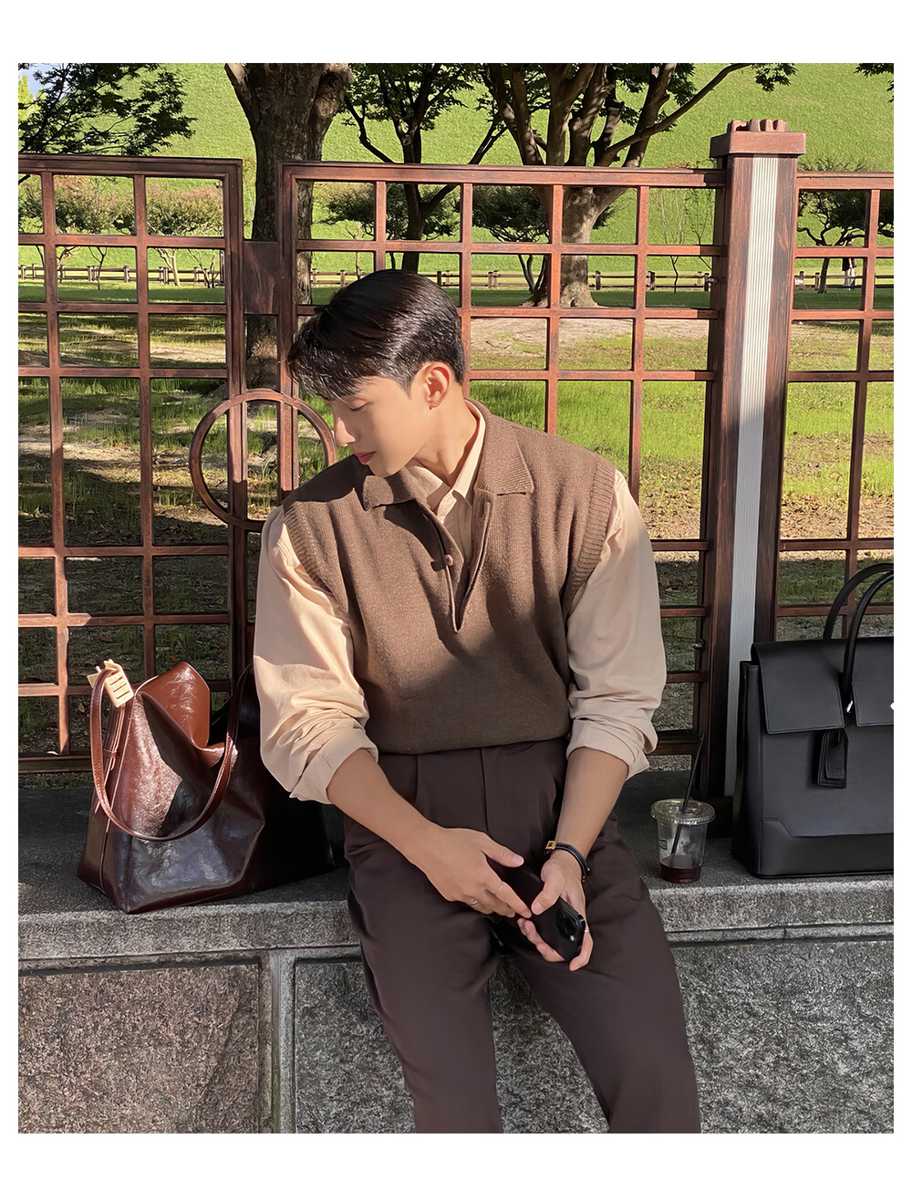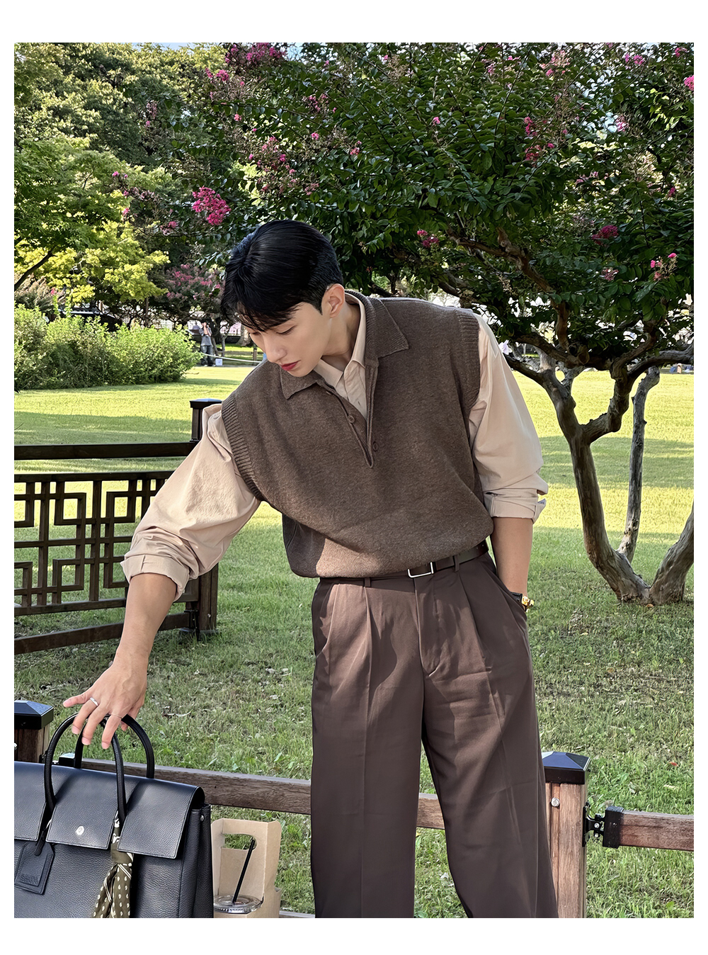 翻領針織衫背心男士春秋韓版美拉德穿搭無袖毛衣輕熟風polo領馬甲