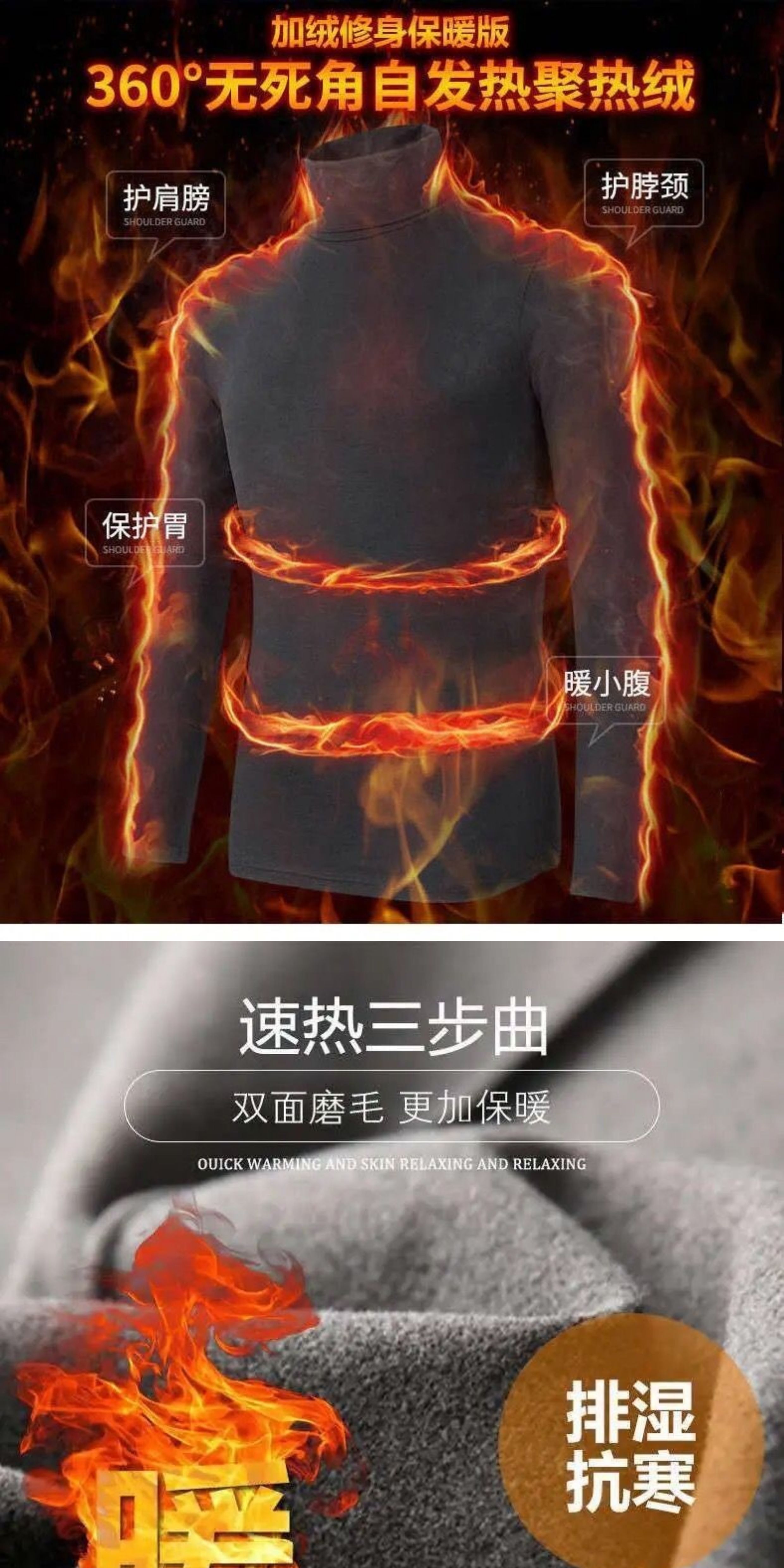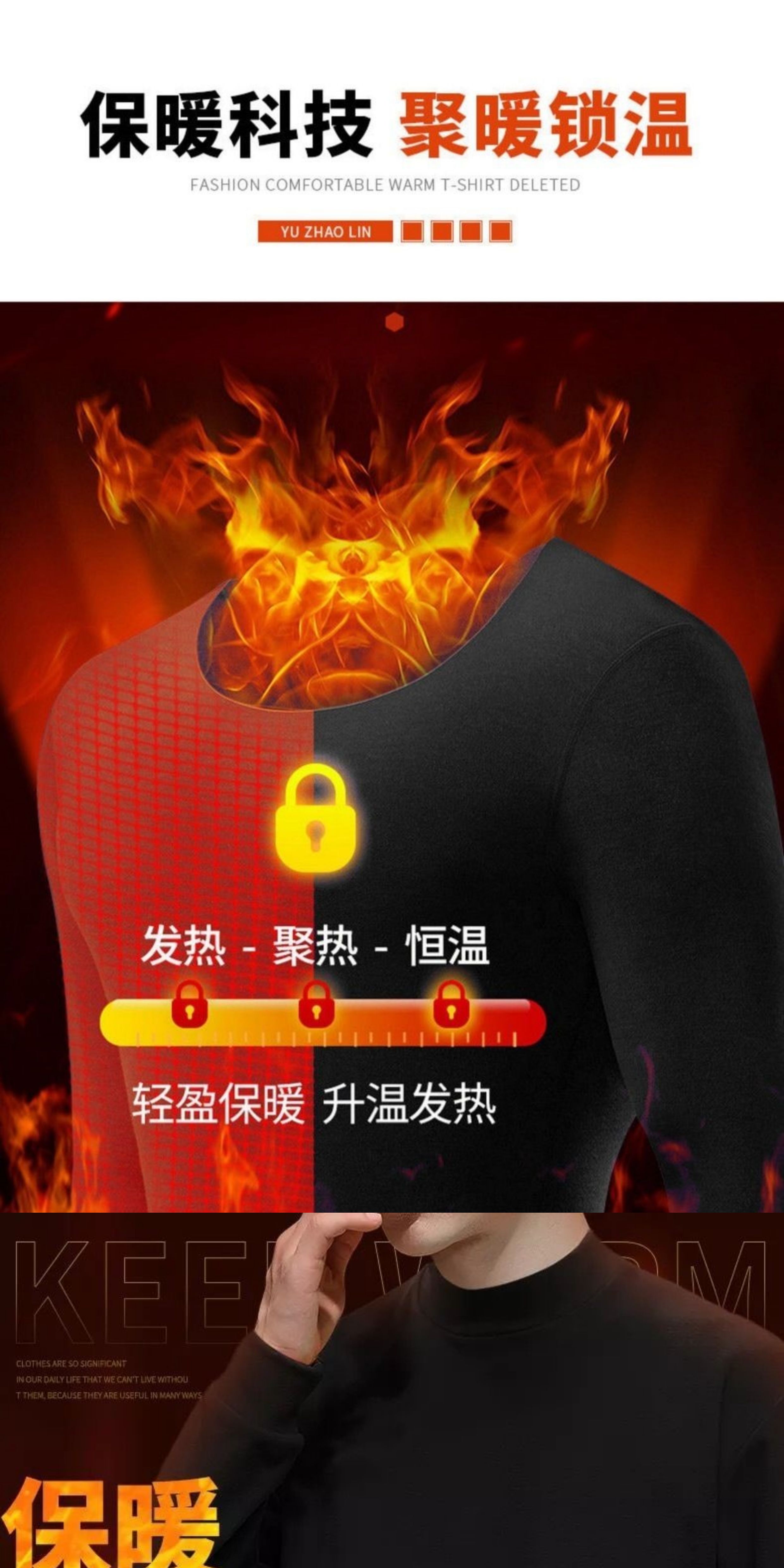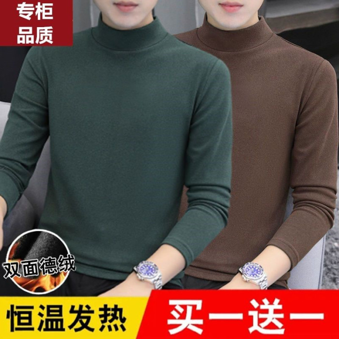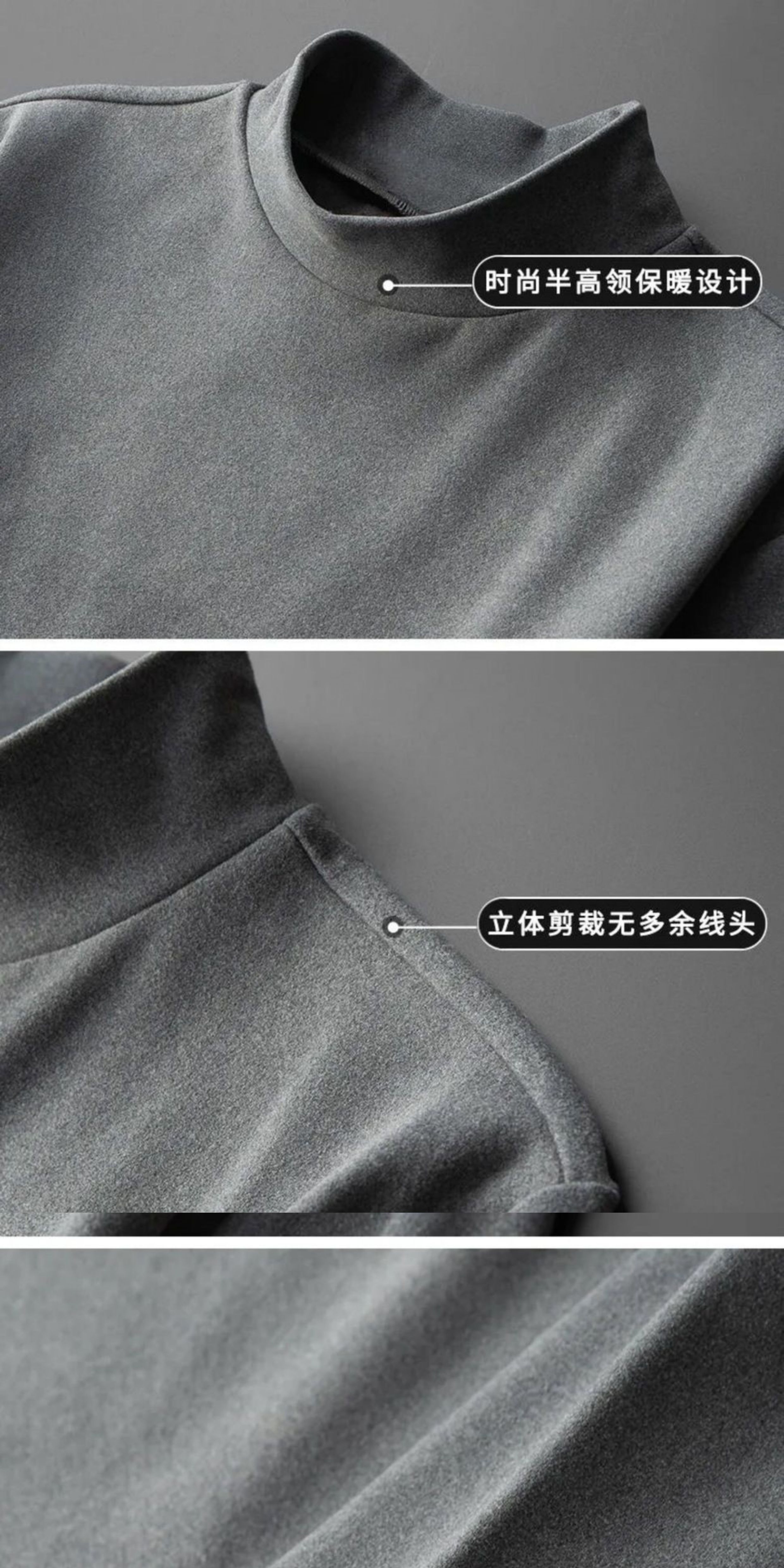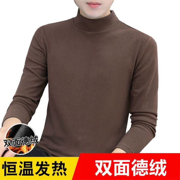 德絨恒溫保暖內衣加絨加厚內搭男士打底衫半高領中年長袖t恤毛衣