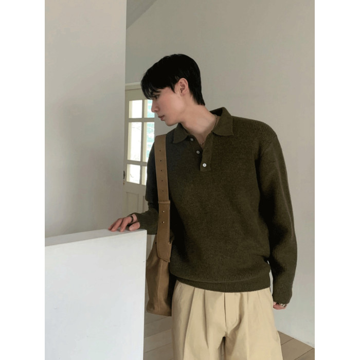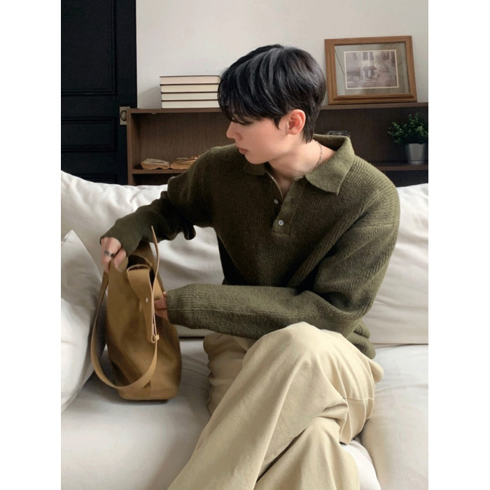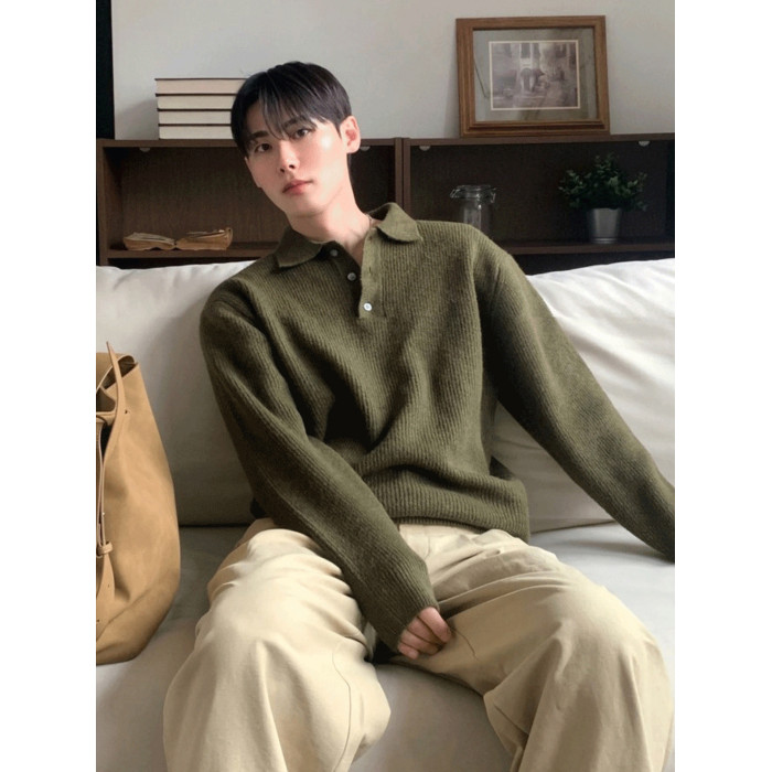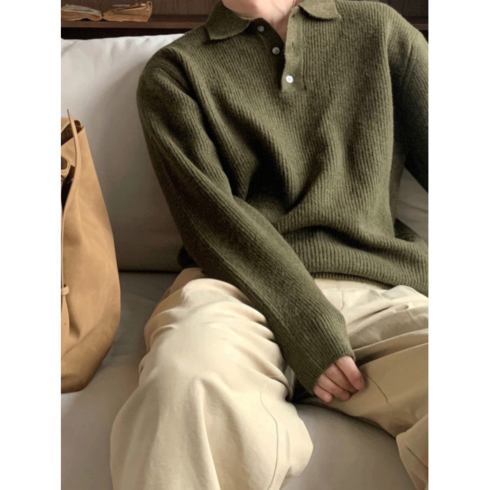 SSUMENAM「老錢風 紋理感 」polo領毛衣男秋冬季寬松翻領針織衫