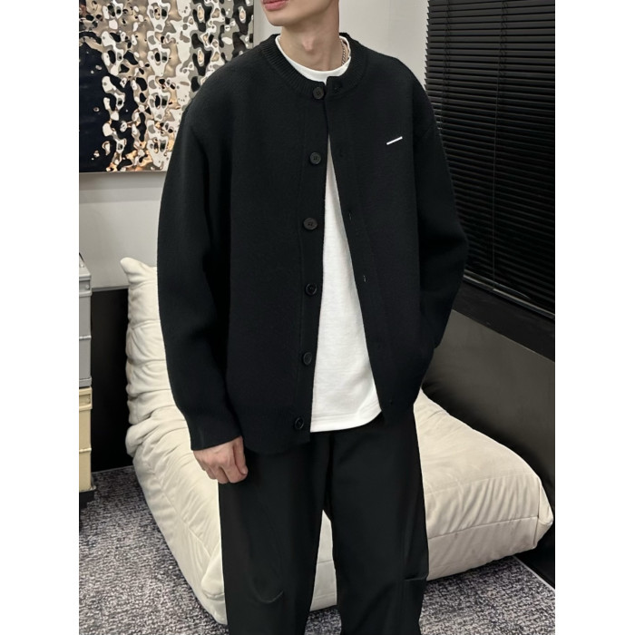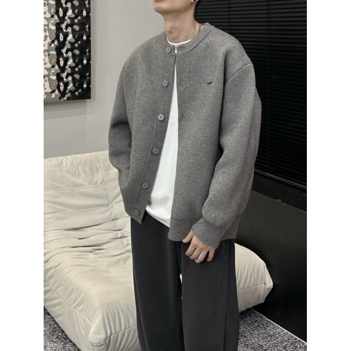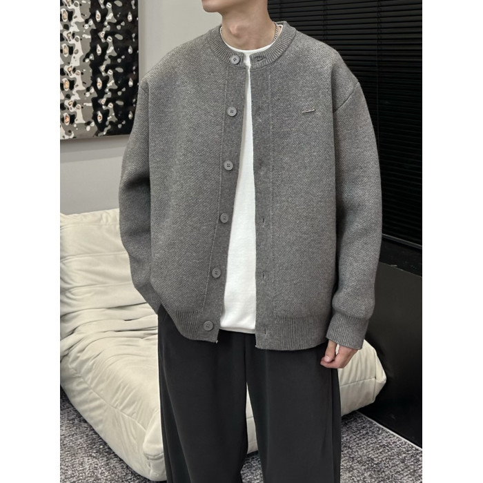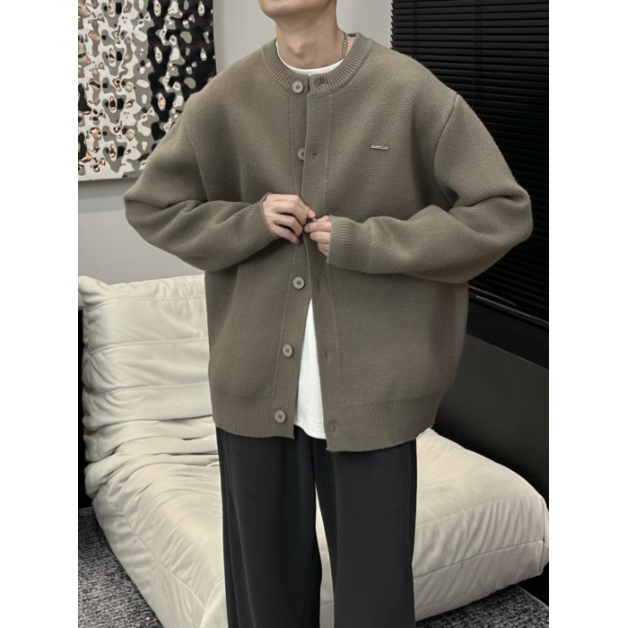 2025春秋新款棒球領粗針開衫純色寬松休閒慵懶感毛衣外套男女同款