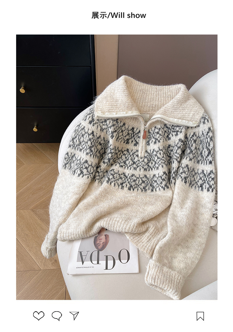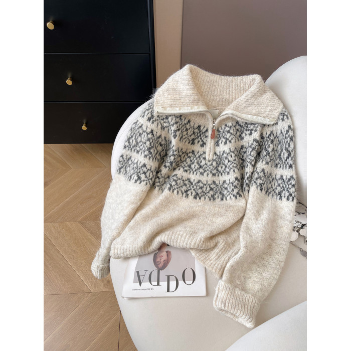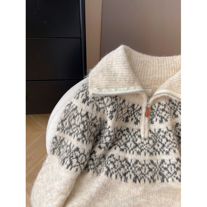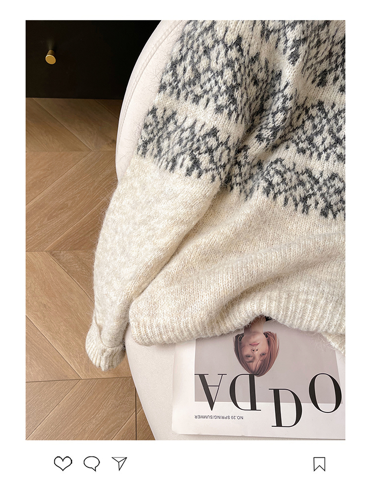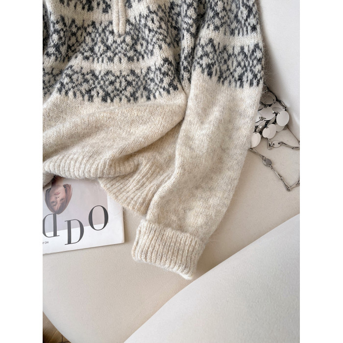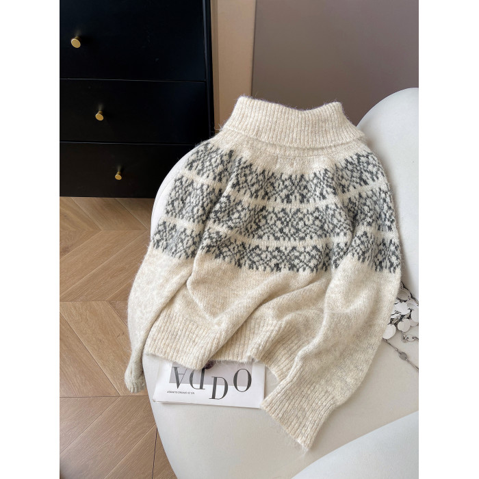 小C家 提花費爾島毛衣女款2025新款秋冬翻領羊毛奶呼呼軟糯針織衫