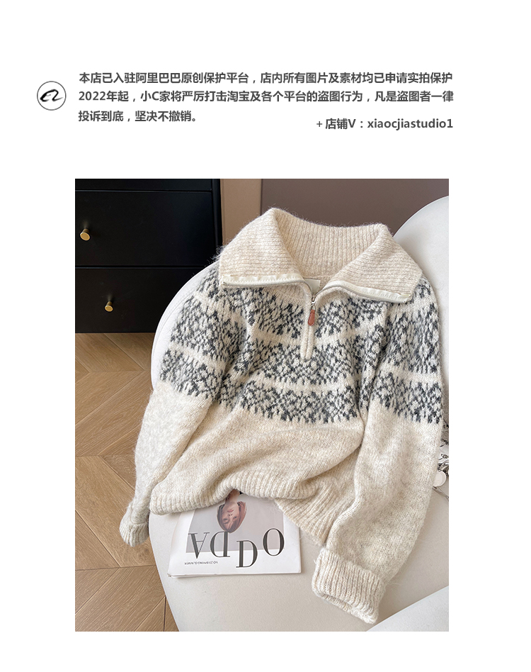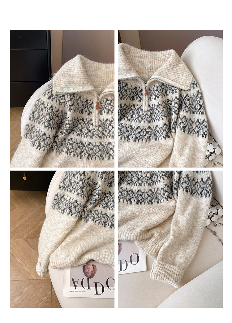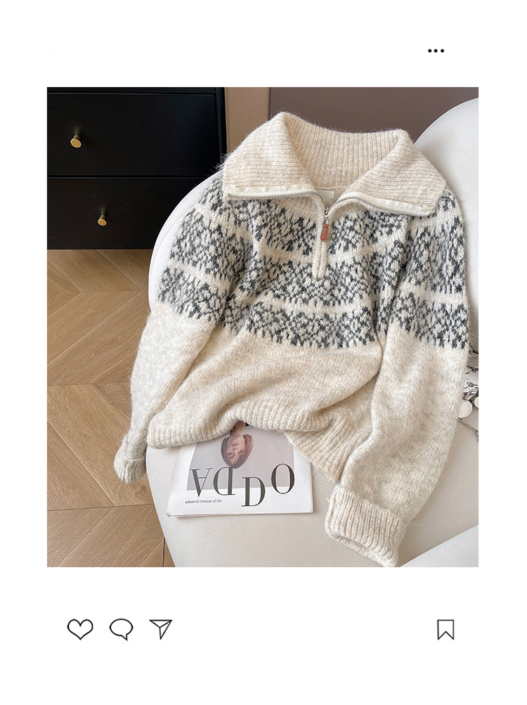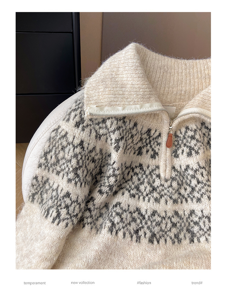 小C家 提花費爾島毛衣女款2025新款秋冬翻領羊毛奶呼呼軟糯針織衫