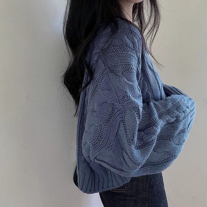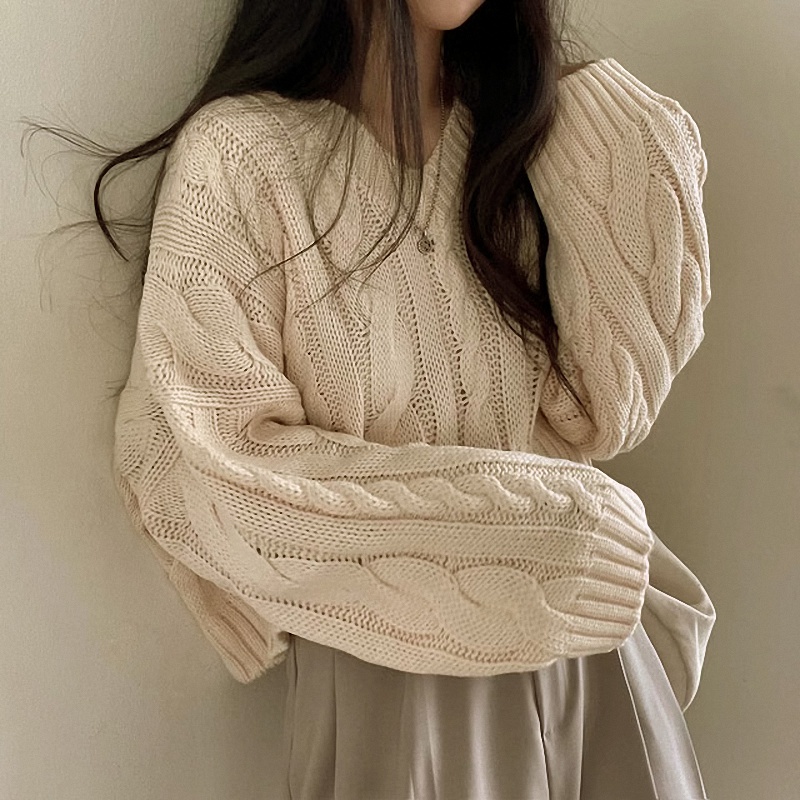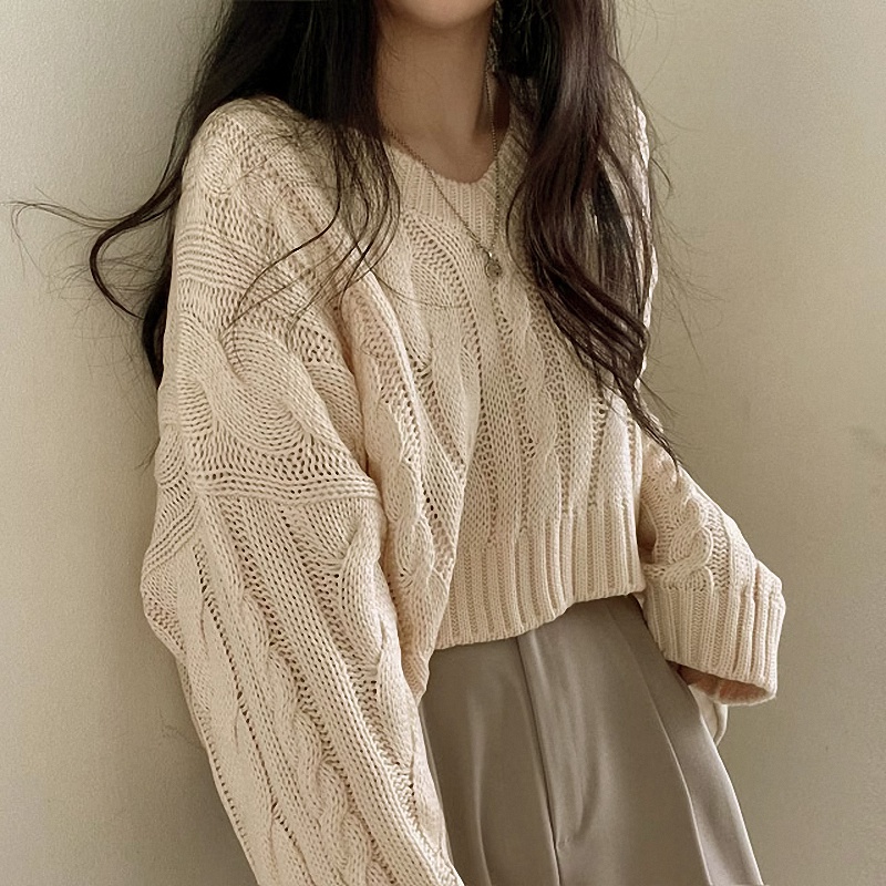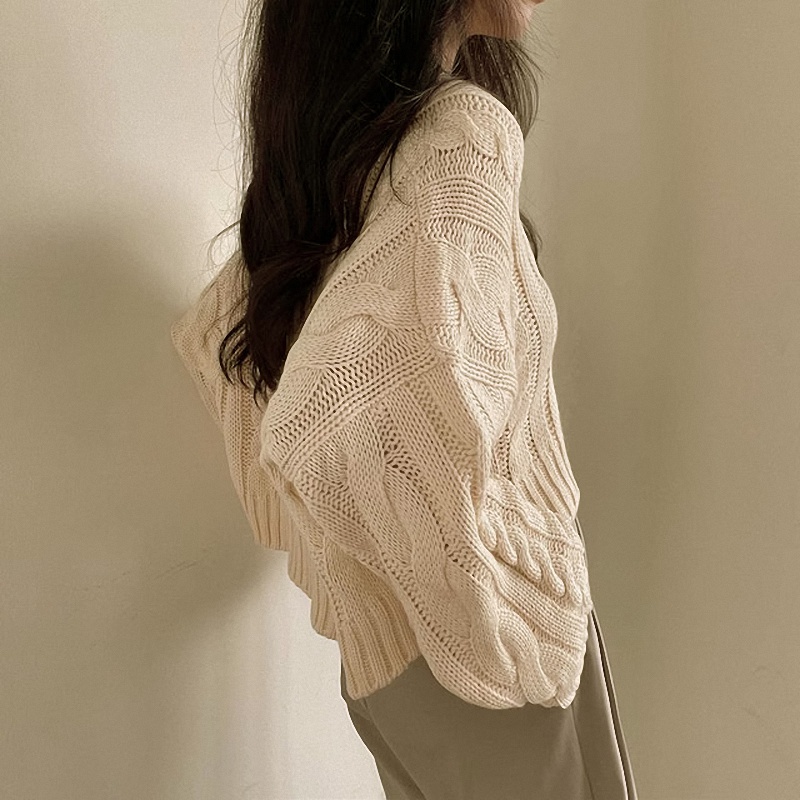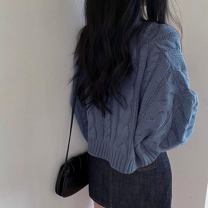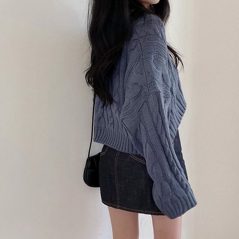 秋冬女裝批新款髮chic休閒復古長袖外穿寬松慵懶針織麻花短款毛衣