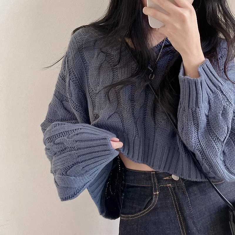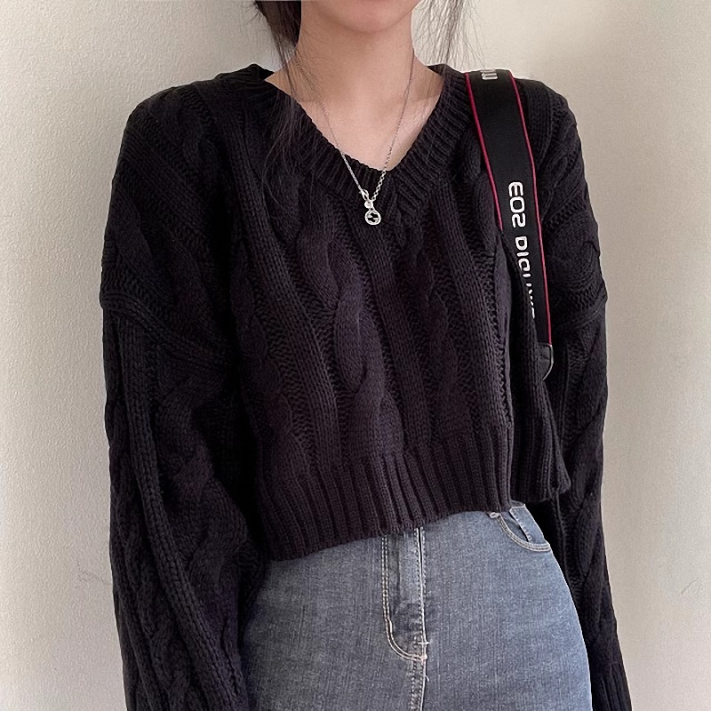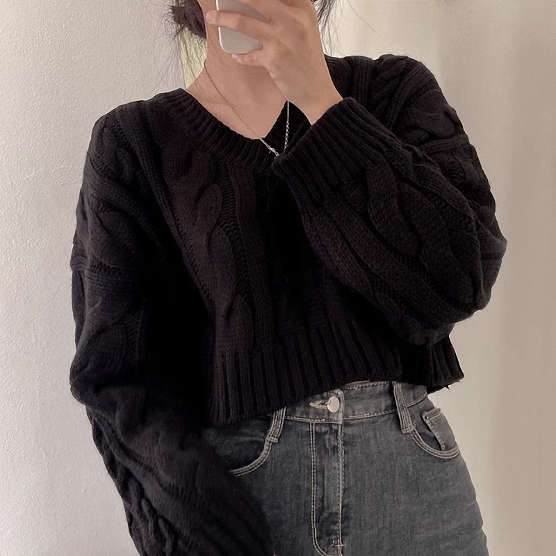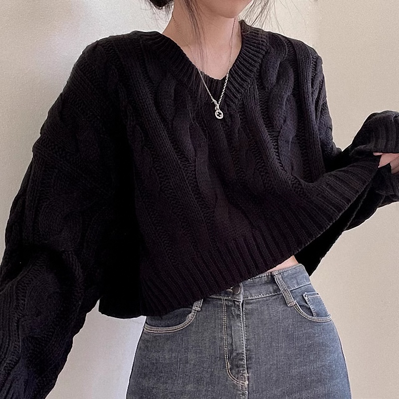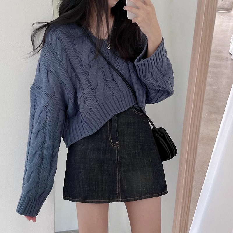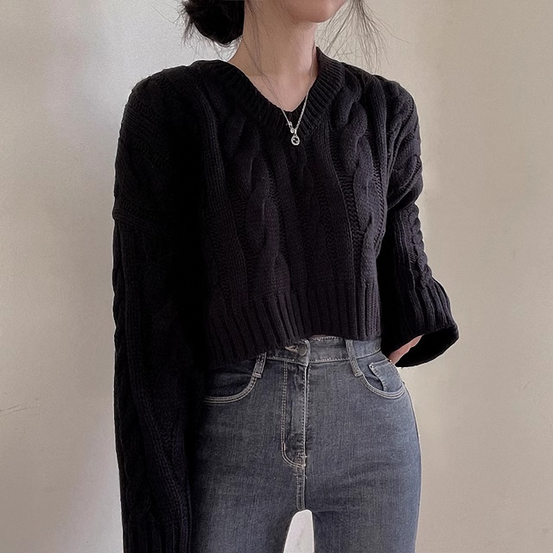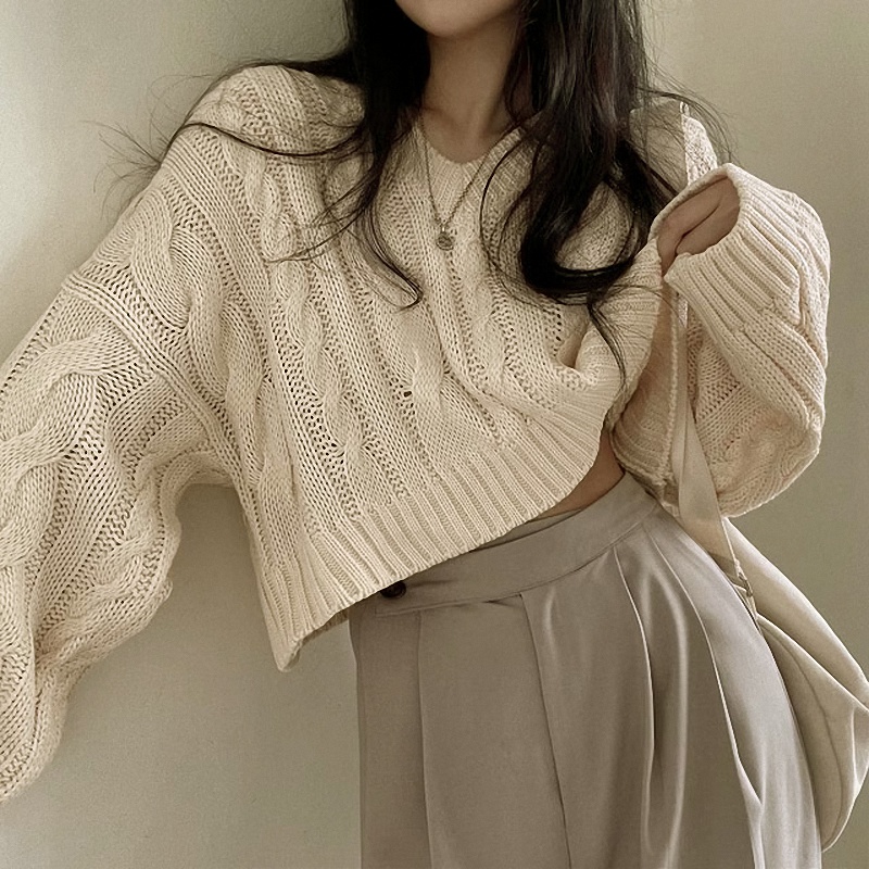 秋冬女裝批新款髮chic休閒復古長袖外穿寬松慵懶針織麻花短款毛衣