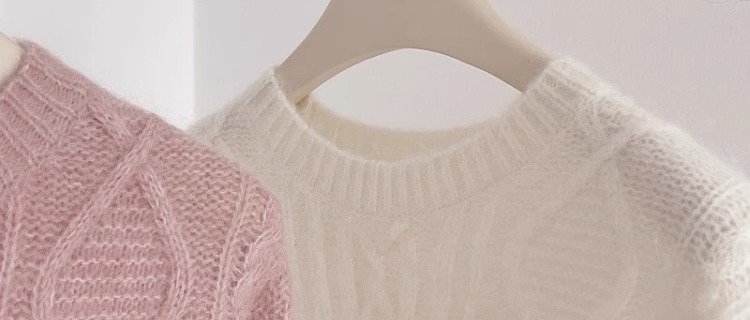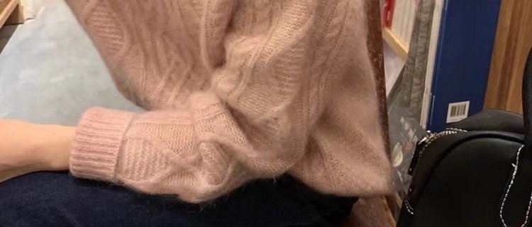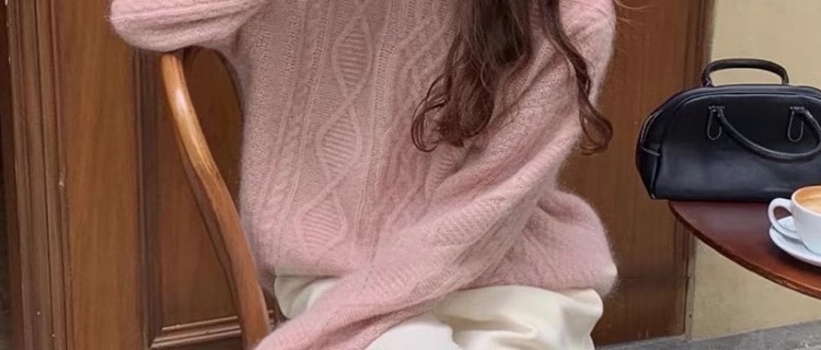 粉色浣熊絨麻花毛衣女秋冬軟糯慵懶風套頭羊絨打底針織衫加厚冬季
