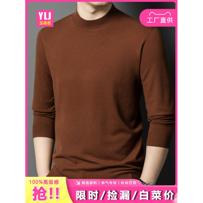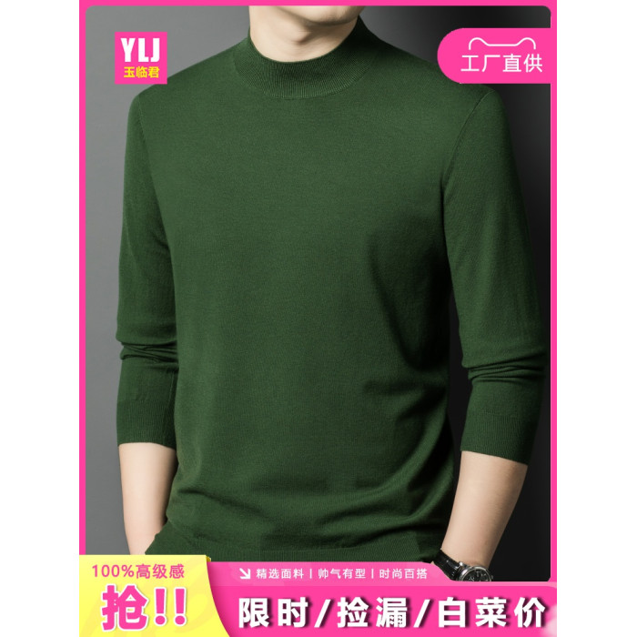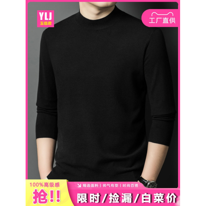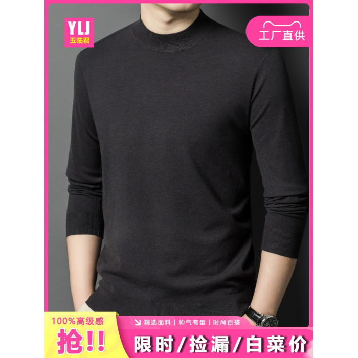 男士羊毛衫秋冬新款半高領保暖針織衫寬松休閒長袖毛衣黑色打底衫