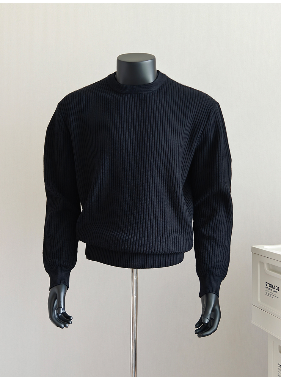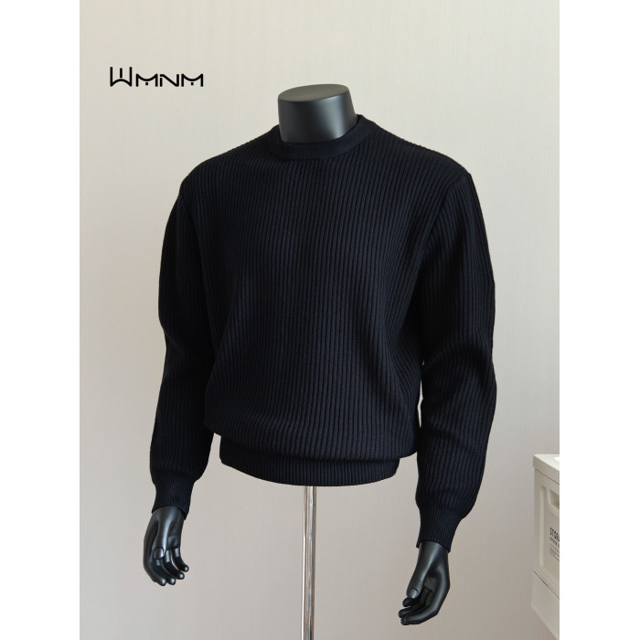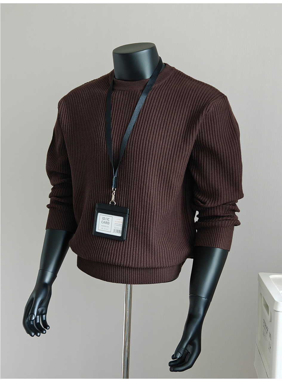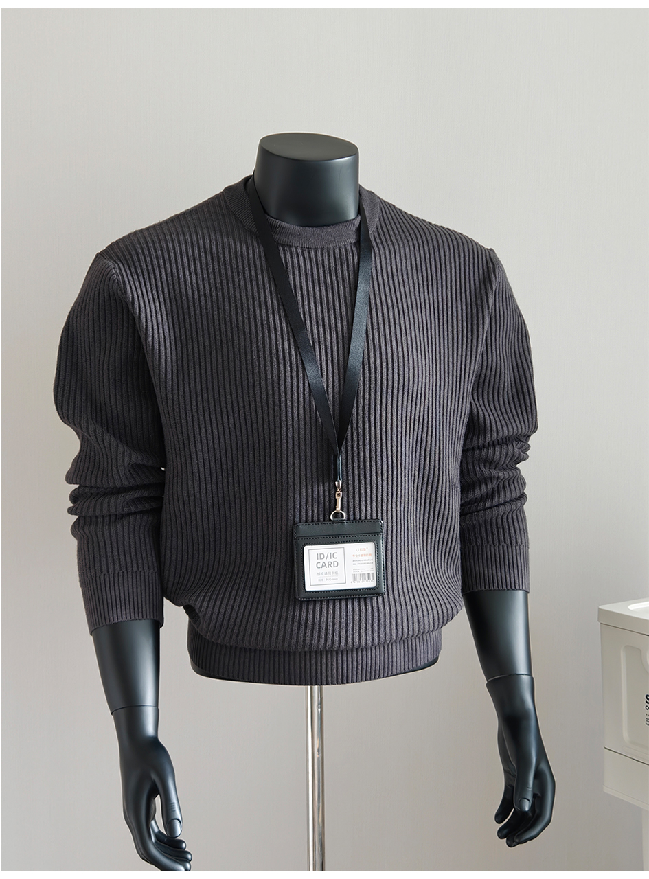 老錢風黑色毛衣男秋冬高級感cleanfit圓領寬松慵懶內搭打底針織衫