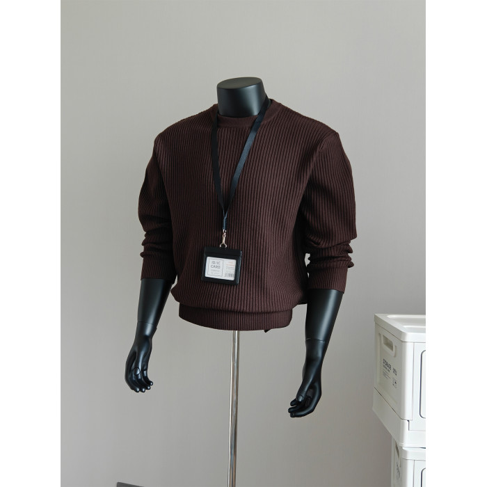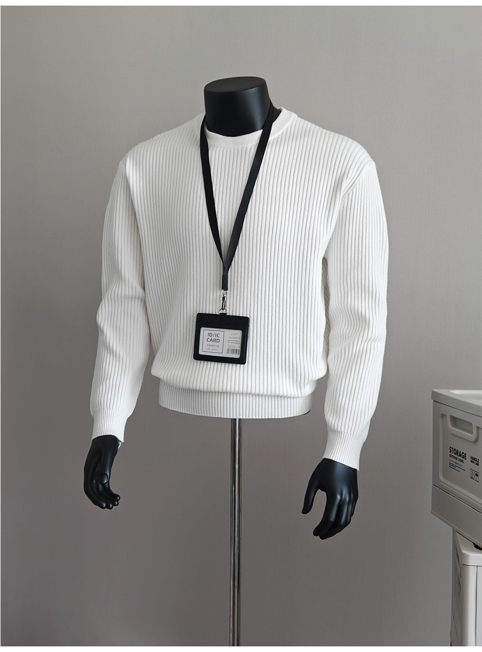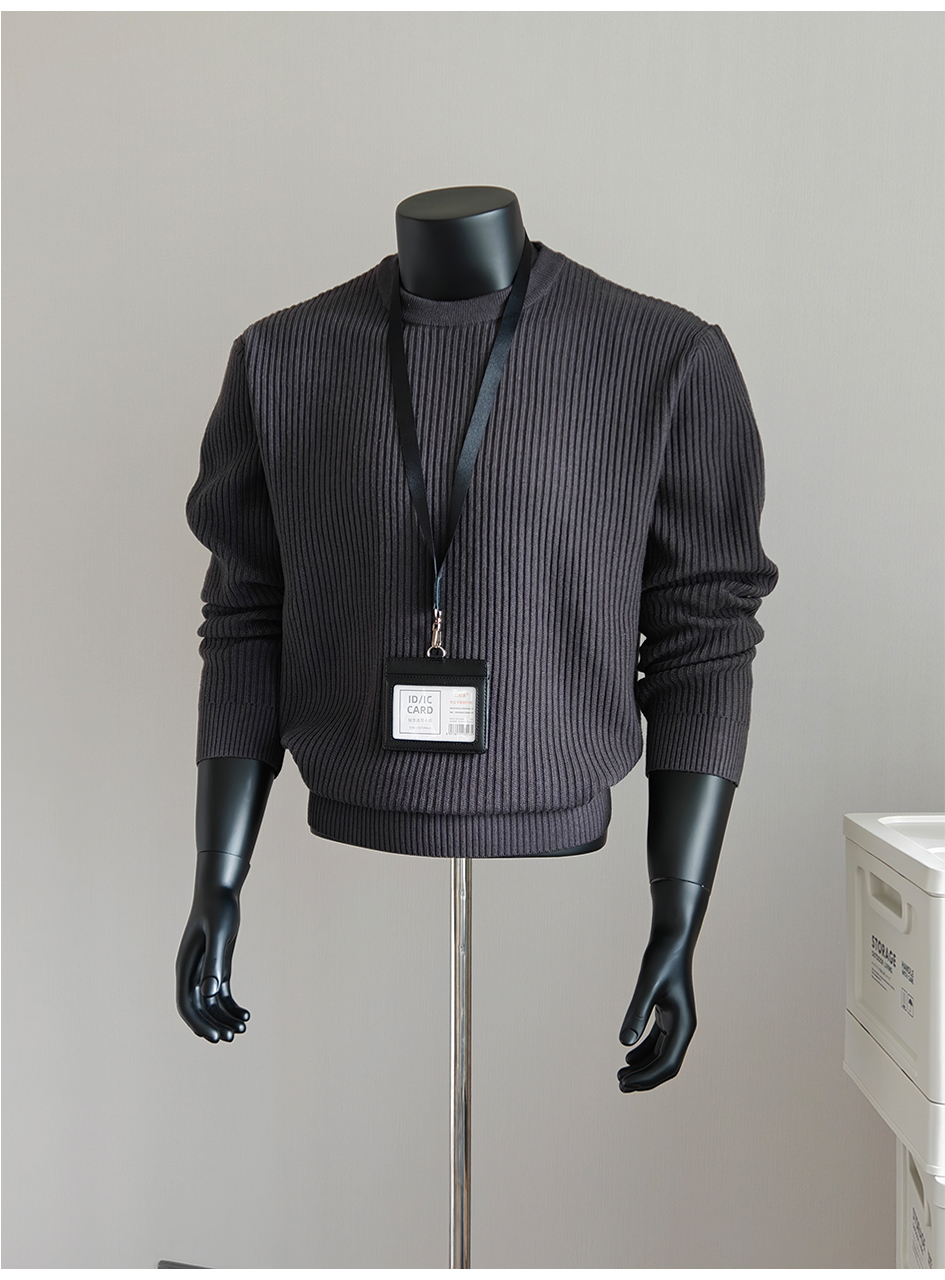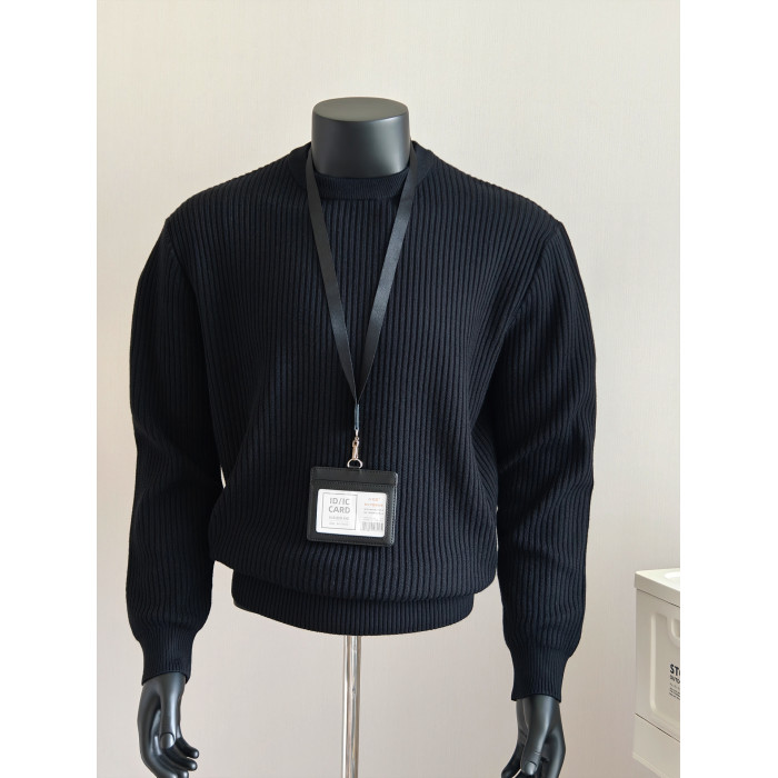 老錢風黑色毛衣男秋冬高級感cleanfit圓領寬松慵懶內搭打底針織衫