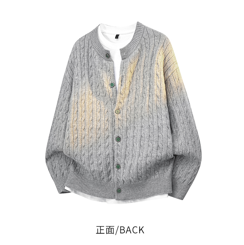 唐獅集團DESSO灰色麻花開衫毛衣男秋季針織外套寬松情侶圓領上衣