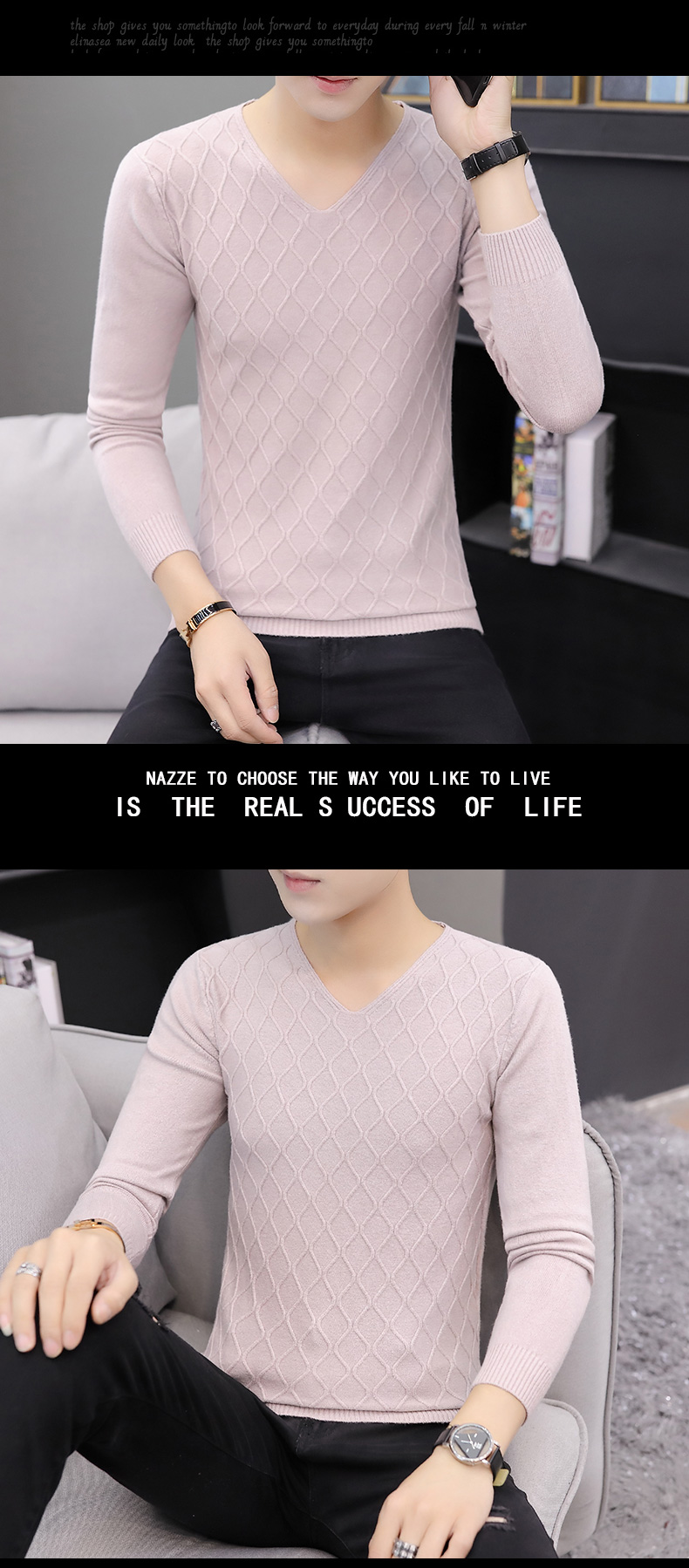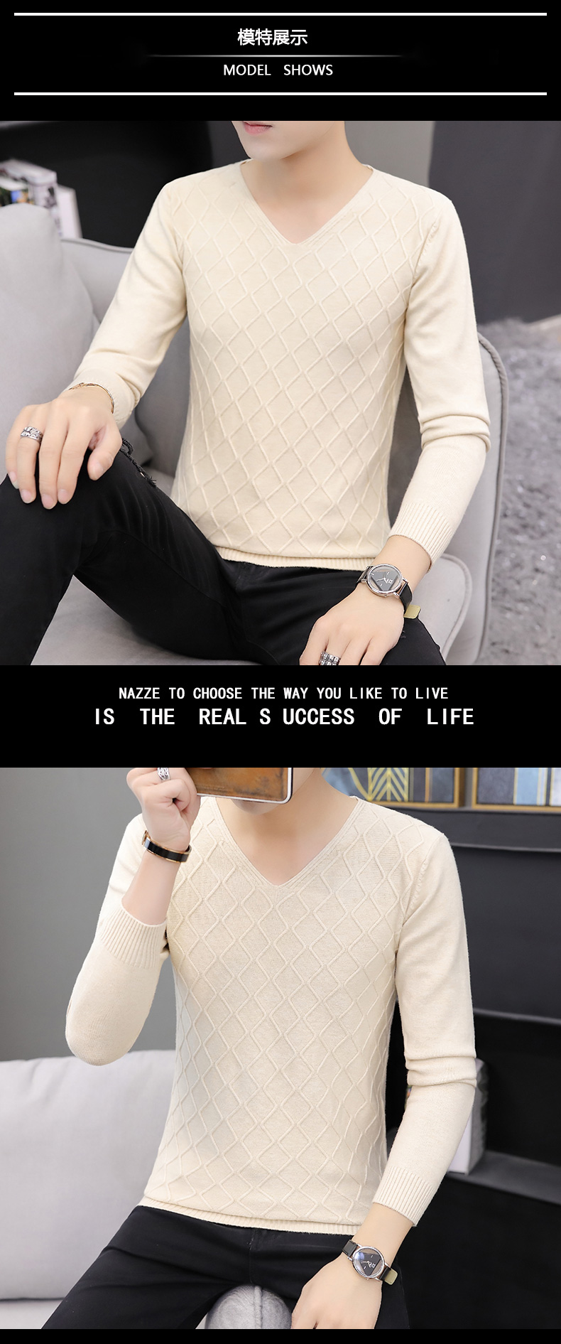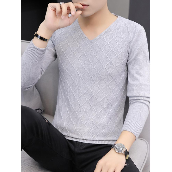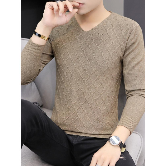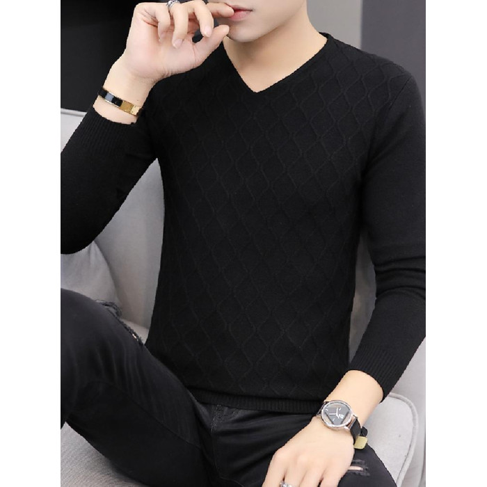 2025秋季新款韓版純色修身毛衣男潮牌V領休閒打底衫百搭秋冬上衣