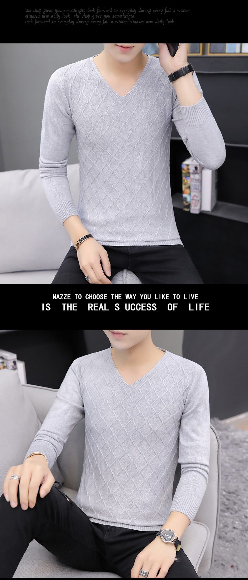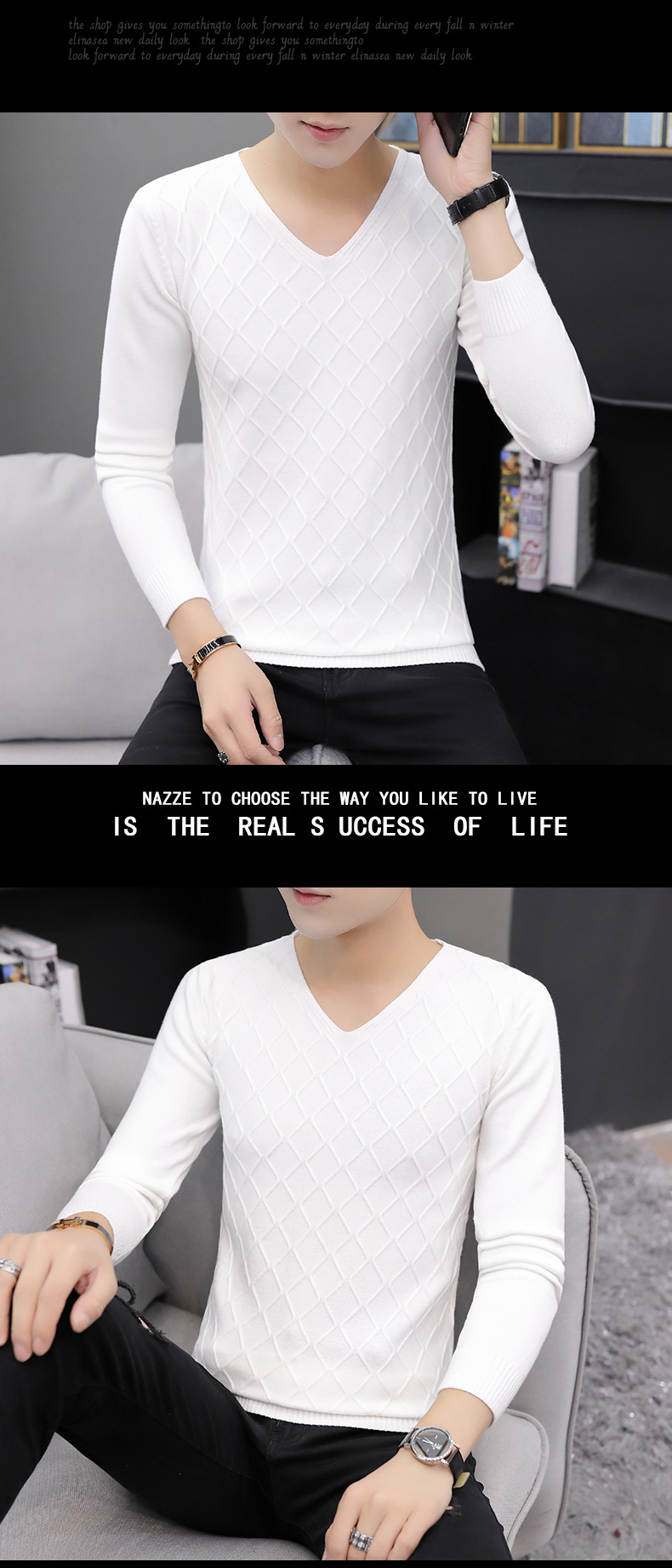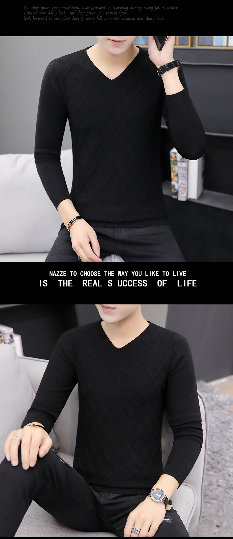 2025秋季新款韓版純色修身毛衣男潮牌V領休閒打底衫百搭秋冬上衣