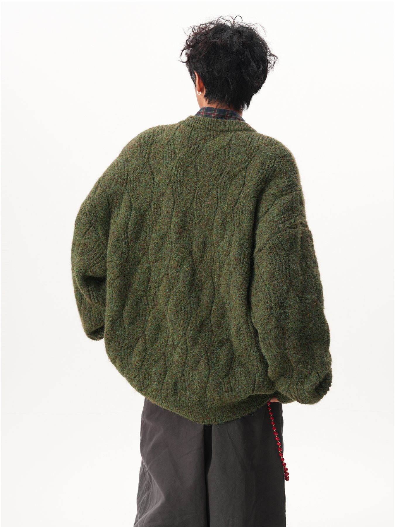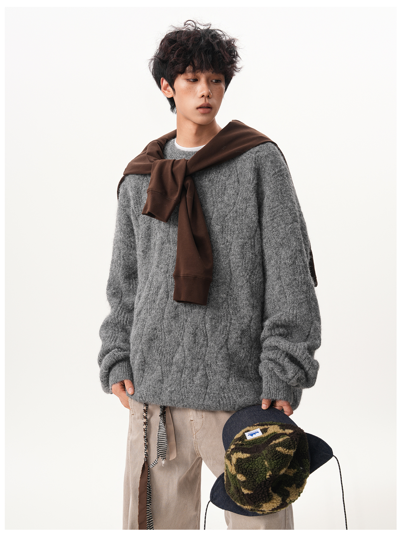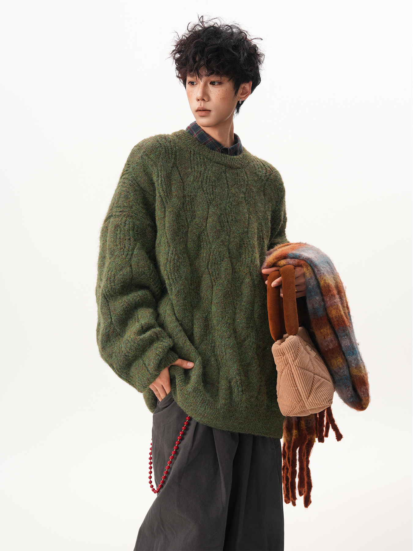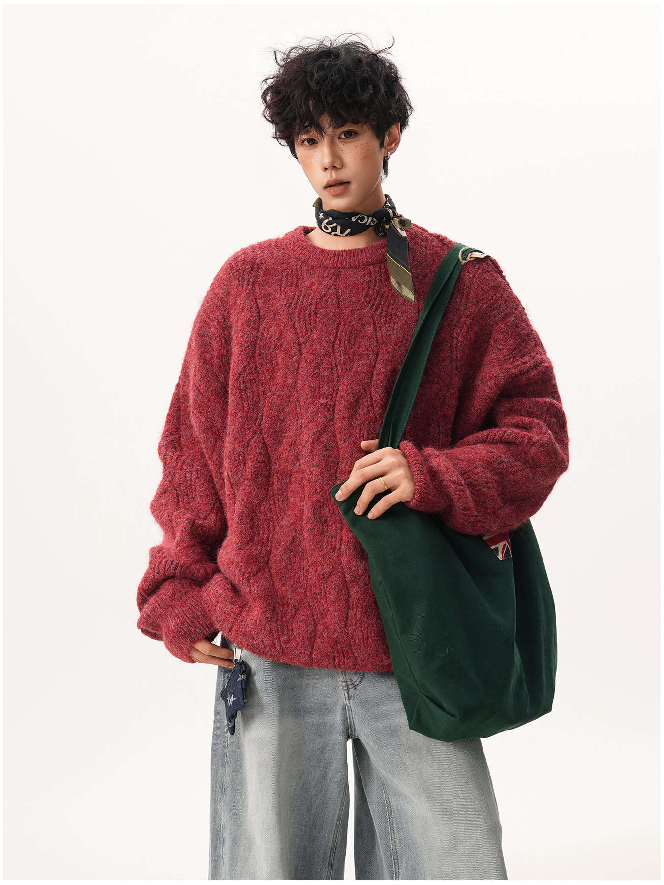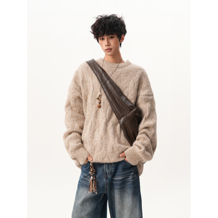 復古氛圍感圓領毛衣男女秋冬寬松慵懶感麻花厚實情侶針織外套上衣