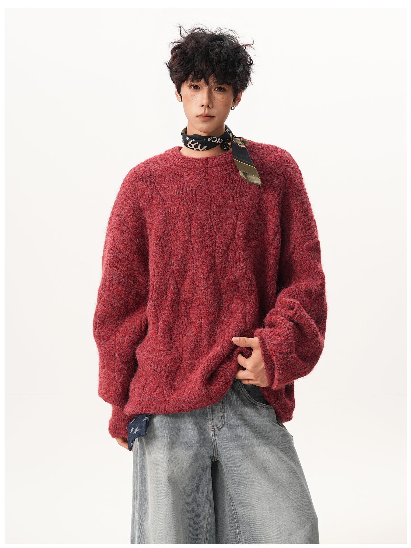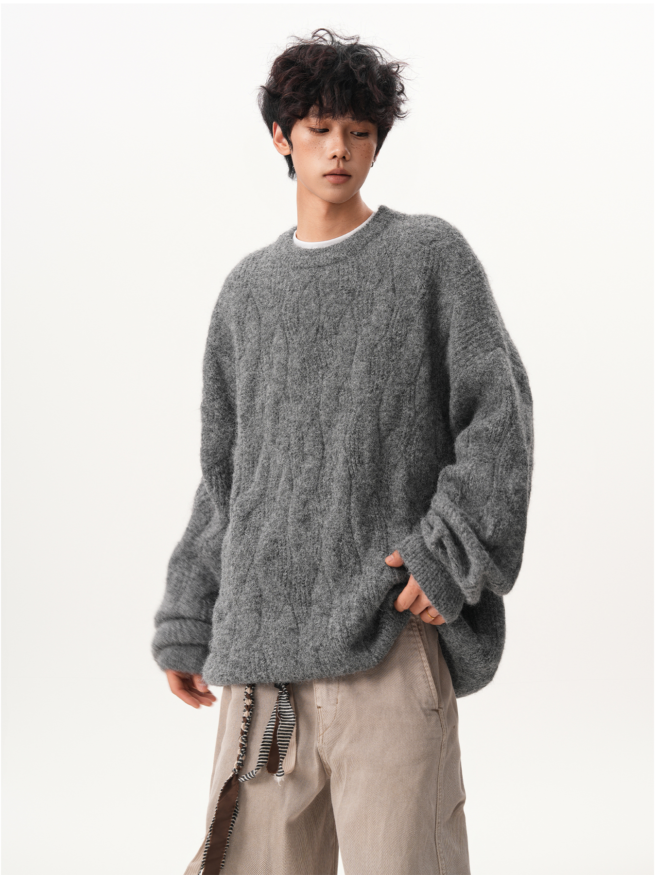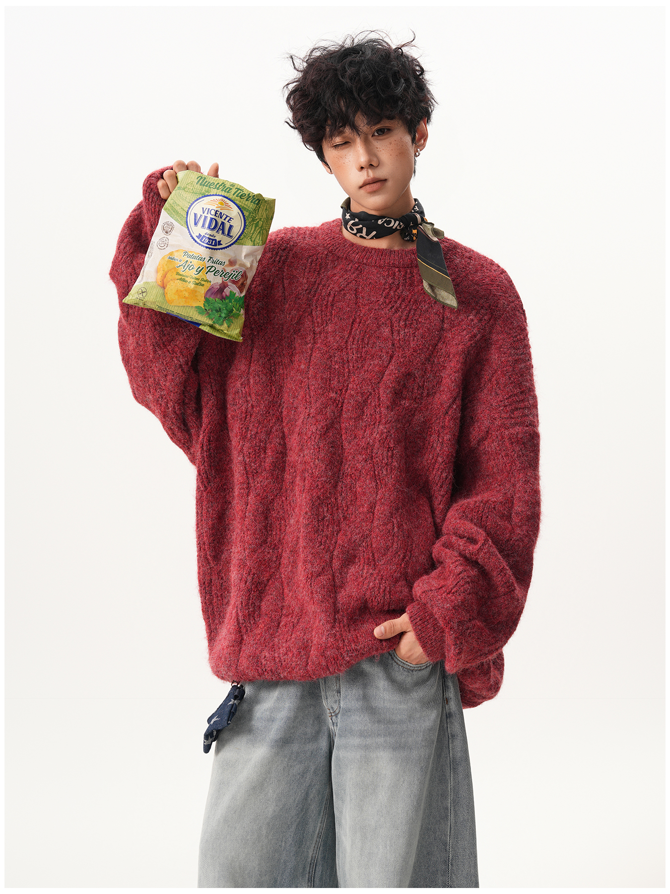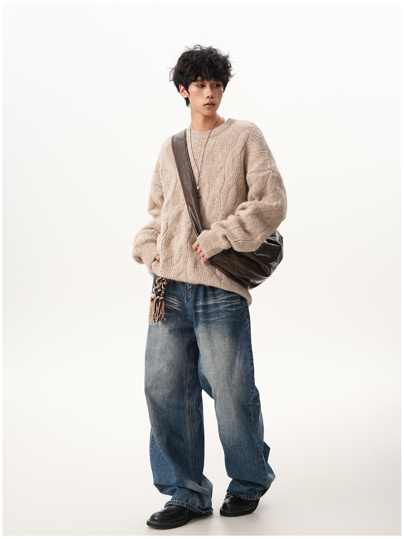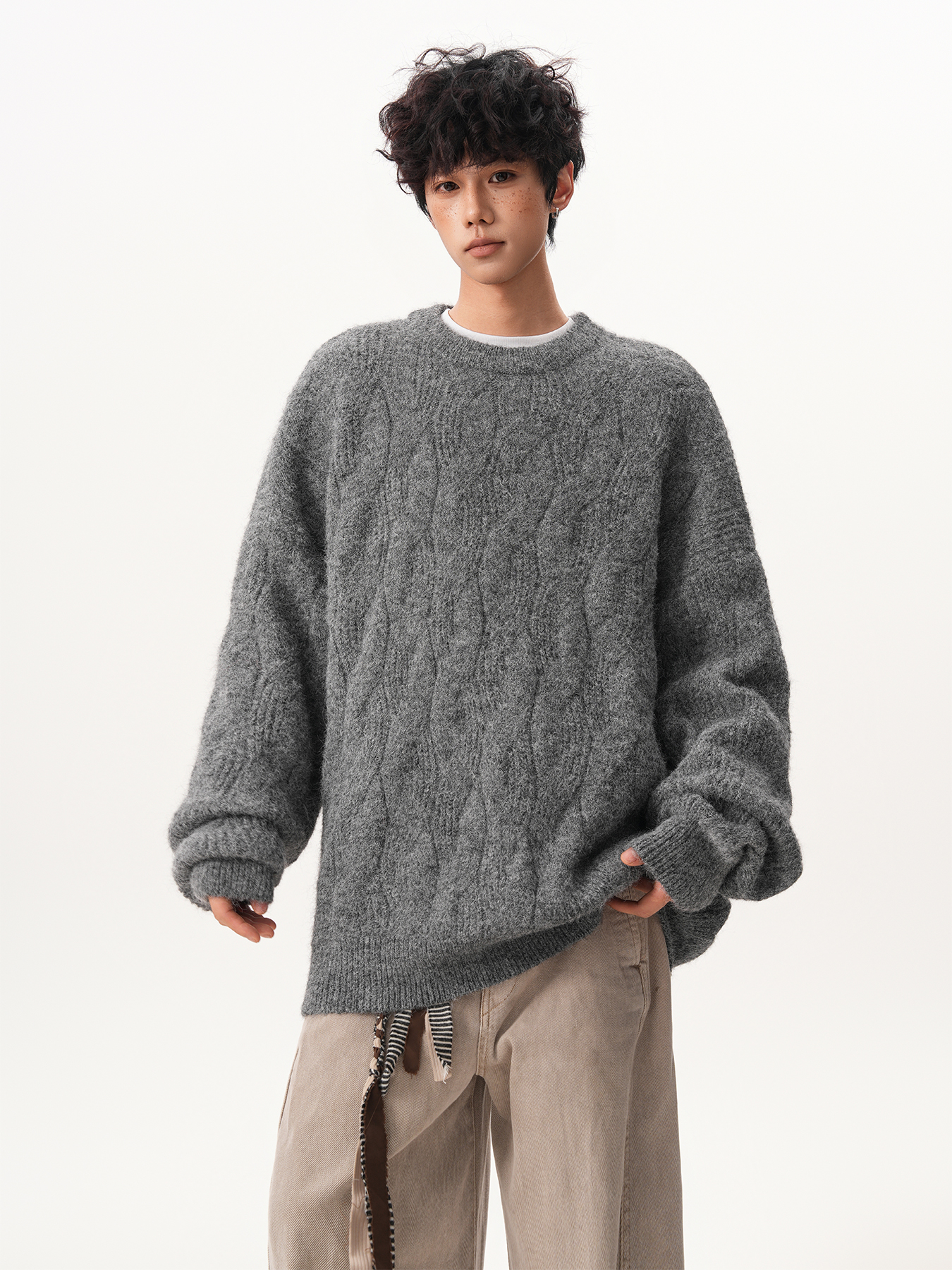 復古氛圍感圓領毛衣男女秋冬寬松慵懶感麻花厚實情侶針織外套上衣