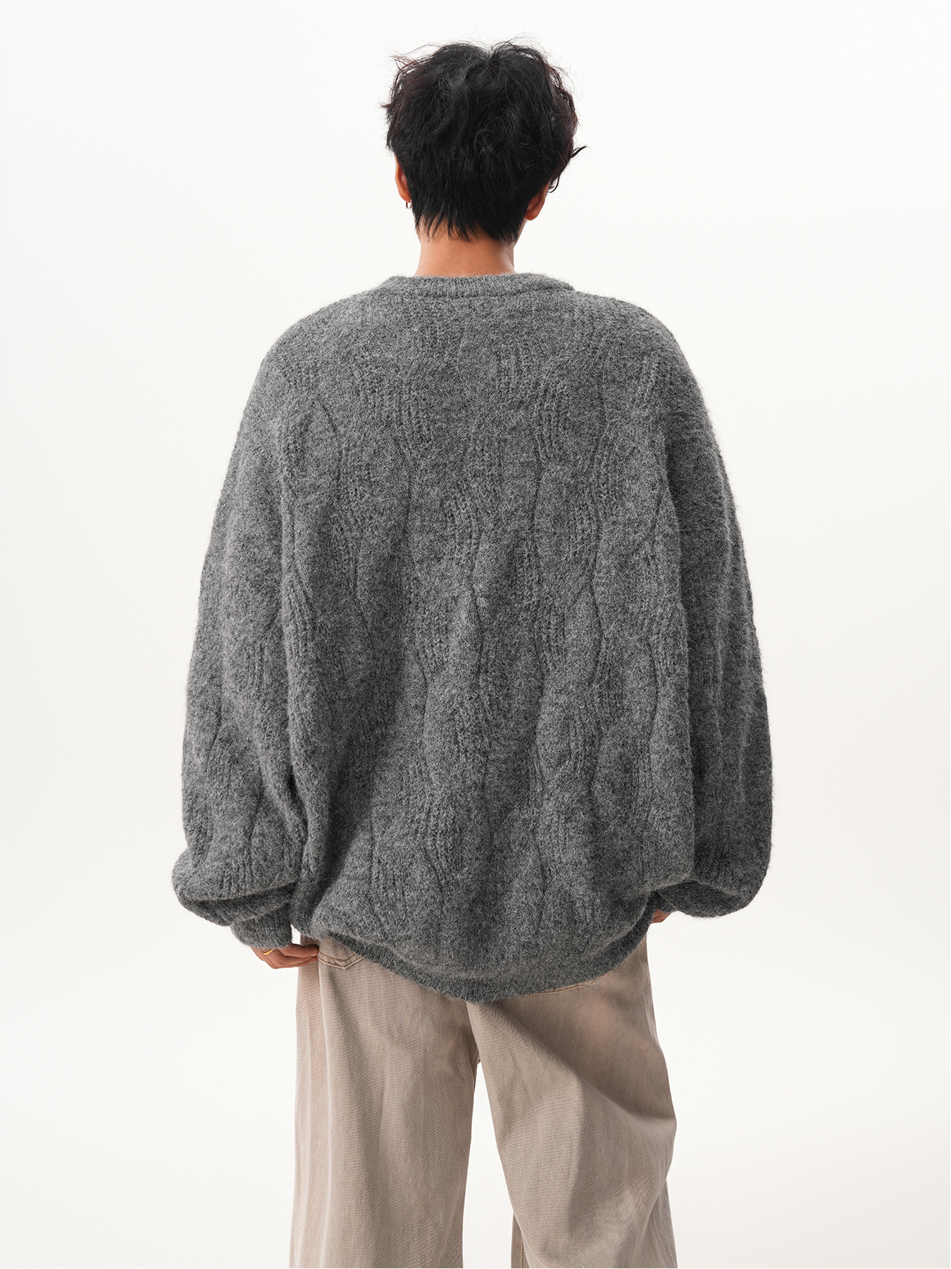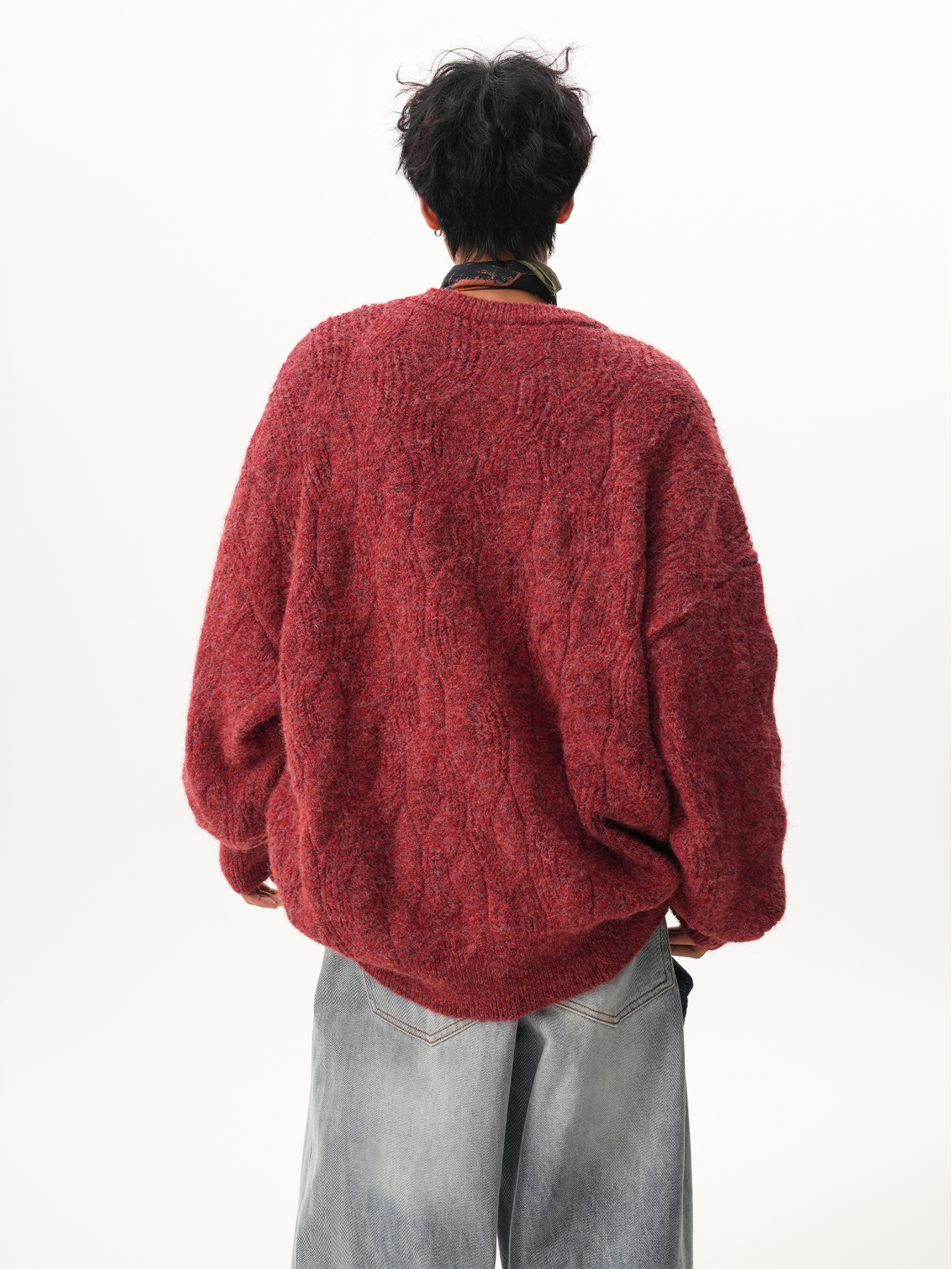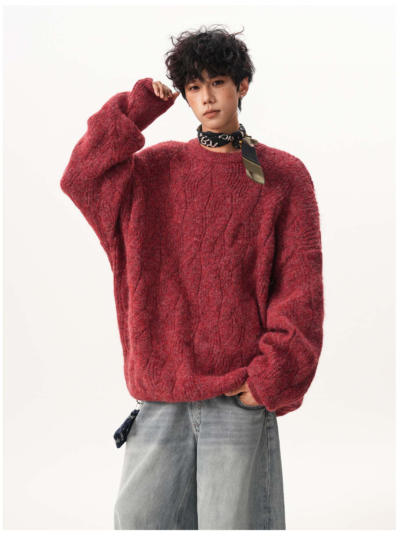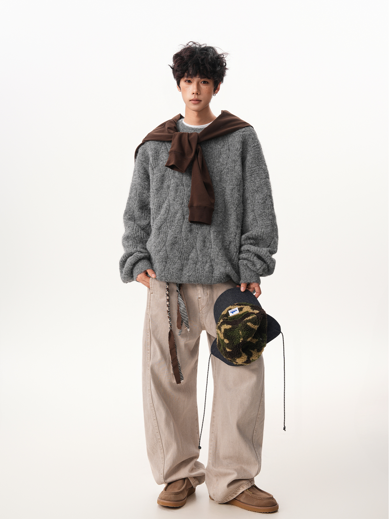 復古氛圍感圓領毛衣男女秋冬寬松慵懶感麻花厚實情侶針織外套上衣