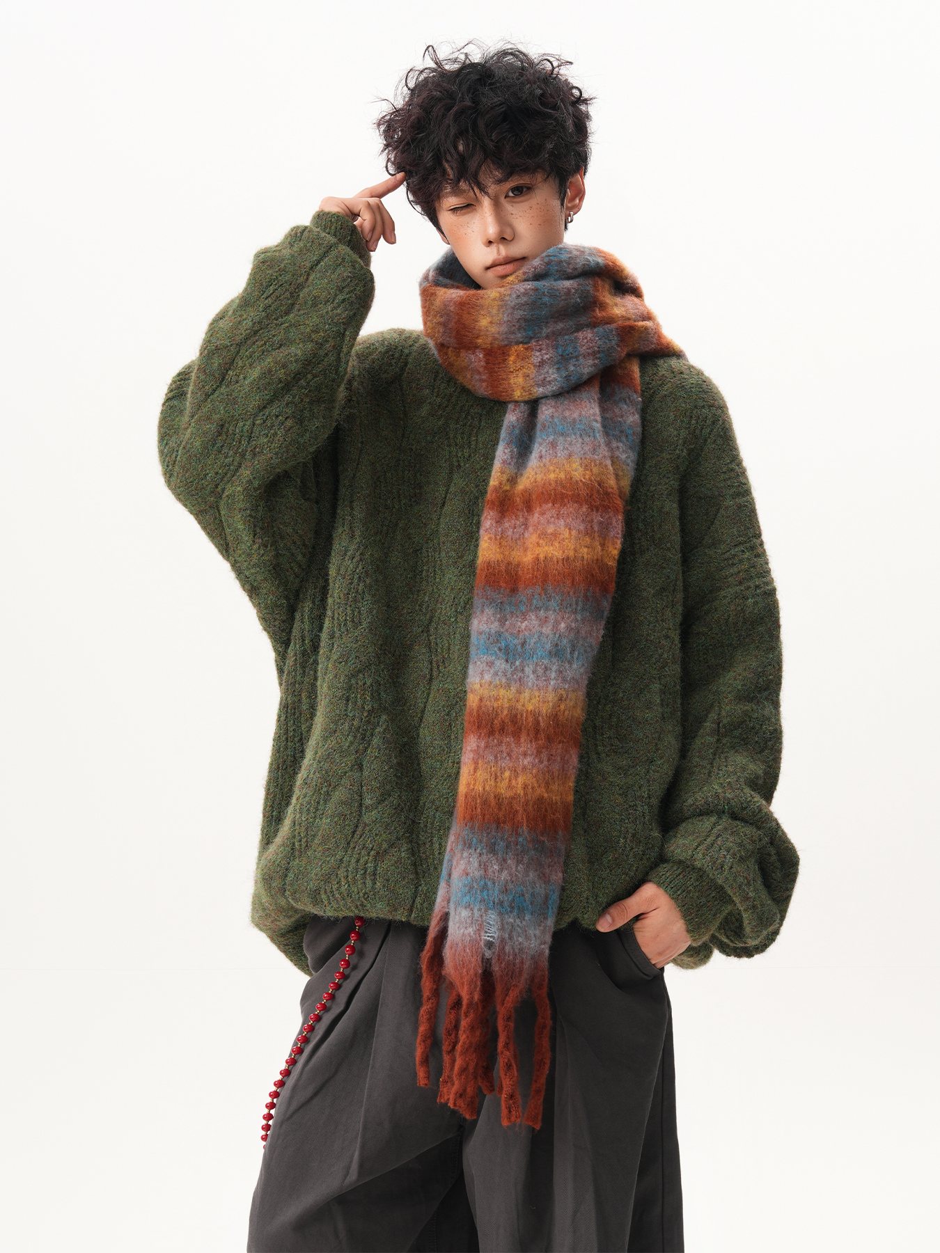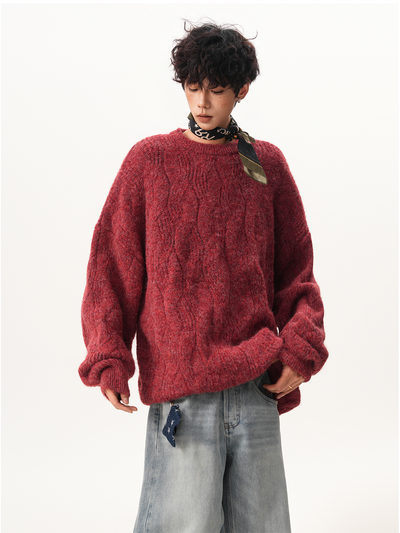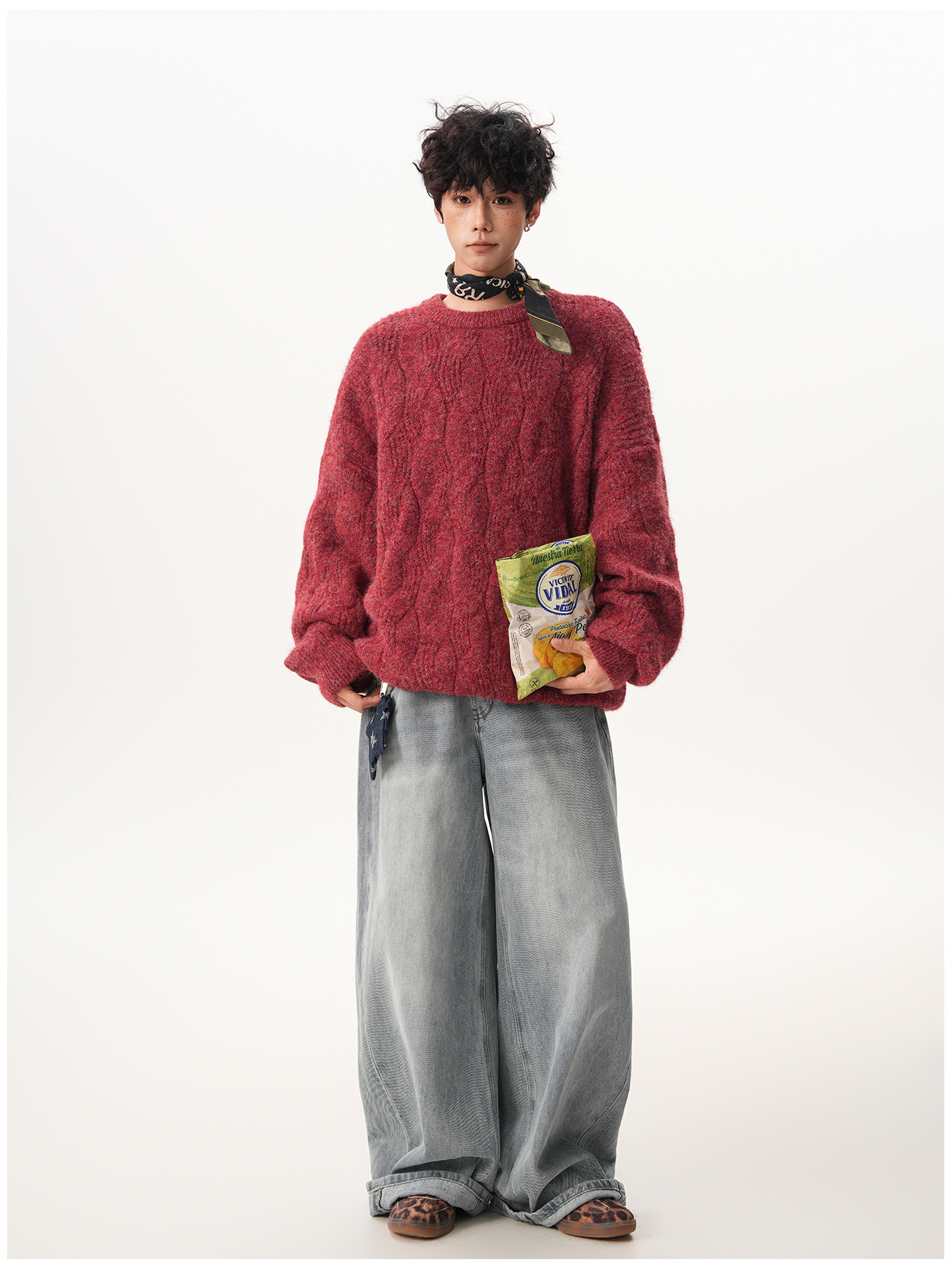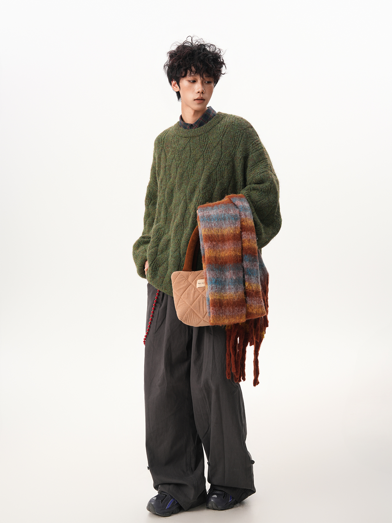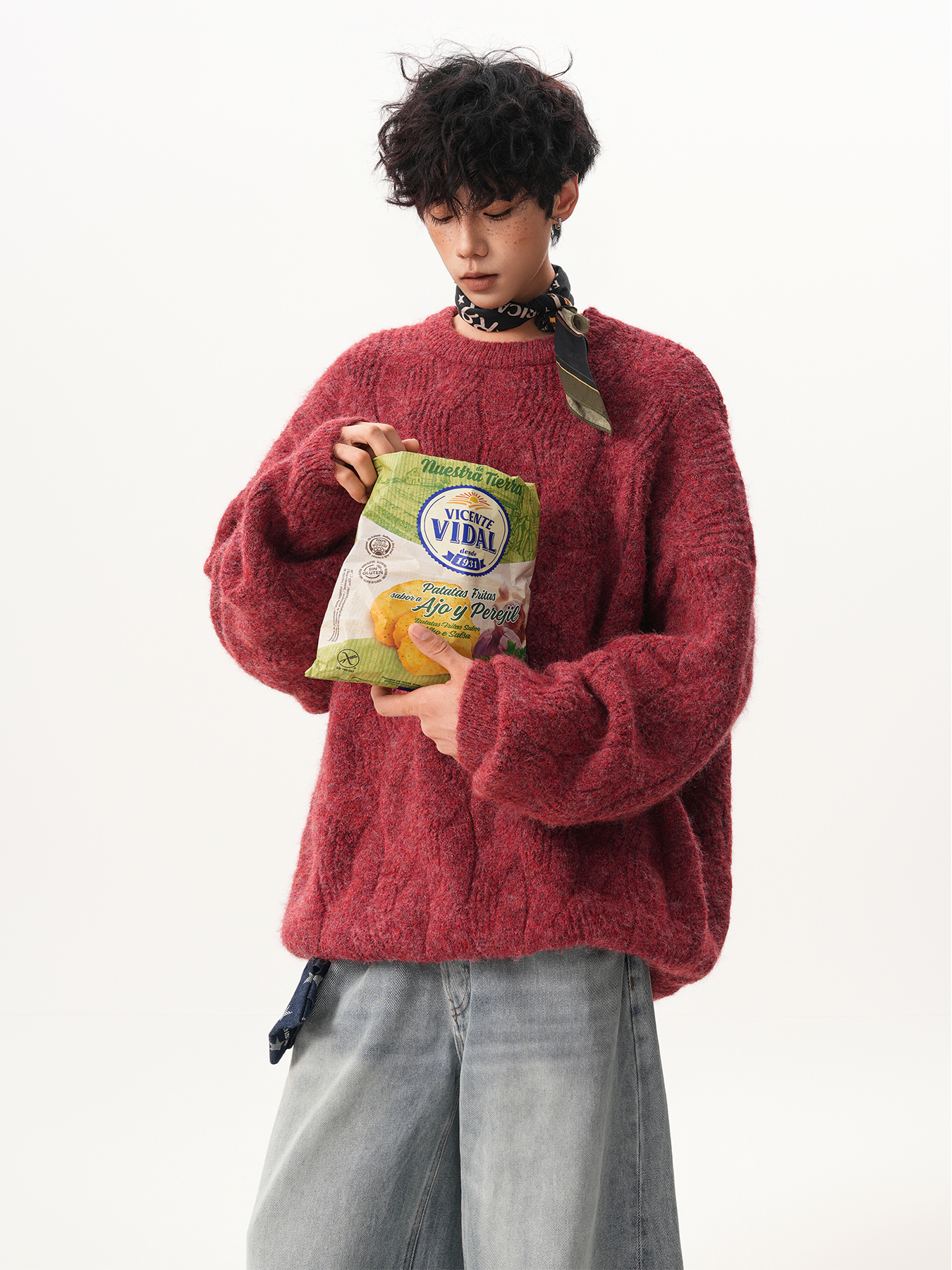 復古氛圍感圓領毛衣男女秋冬寬松慵懶感麻花厚實情侶針織外套上衣