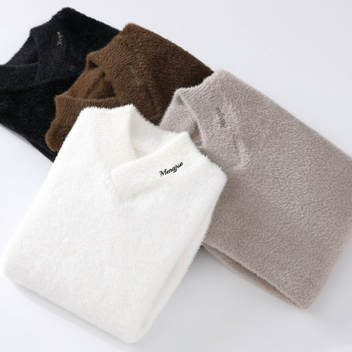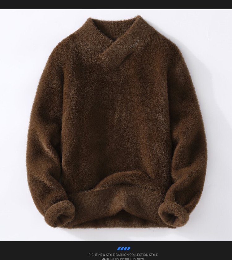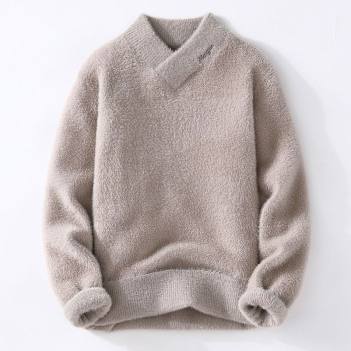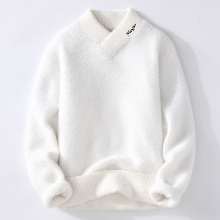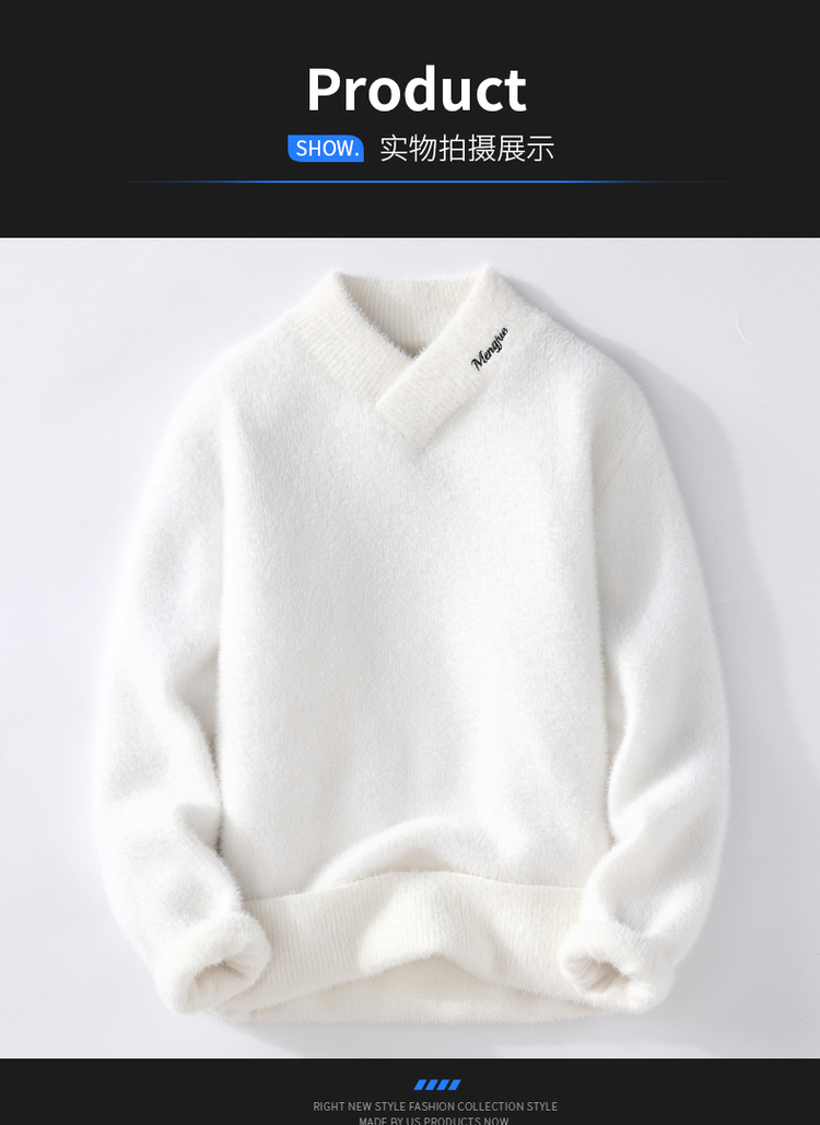 秋冬季青少年男裝水貂絨毛衣學生V領針織打底衫加厚保暖羊絨衫潮