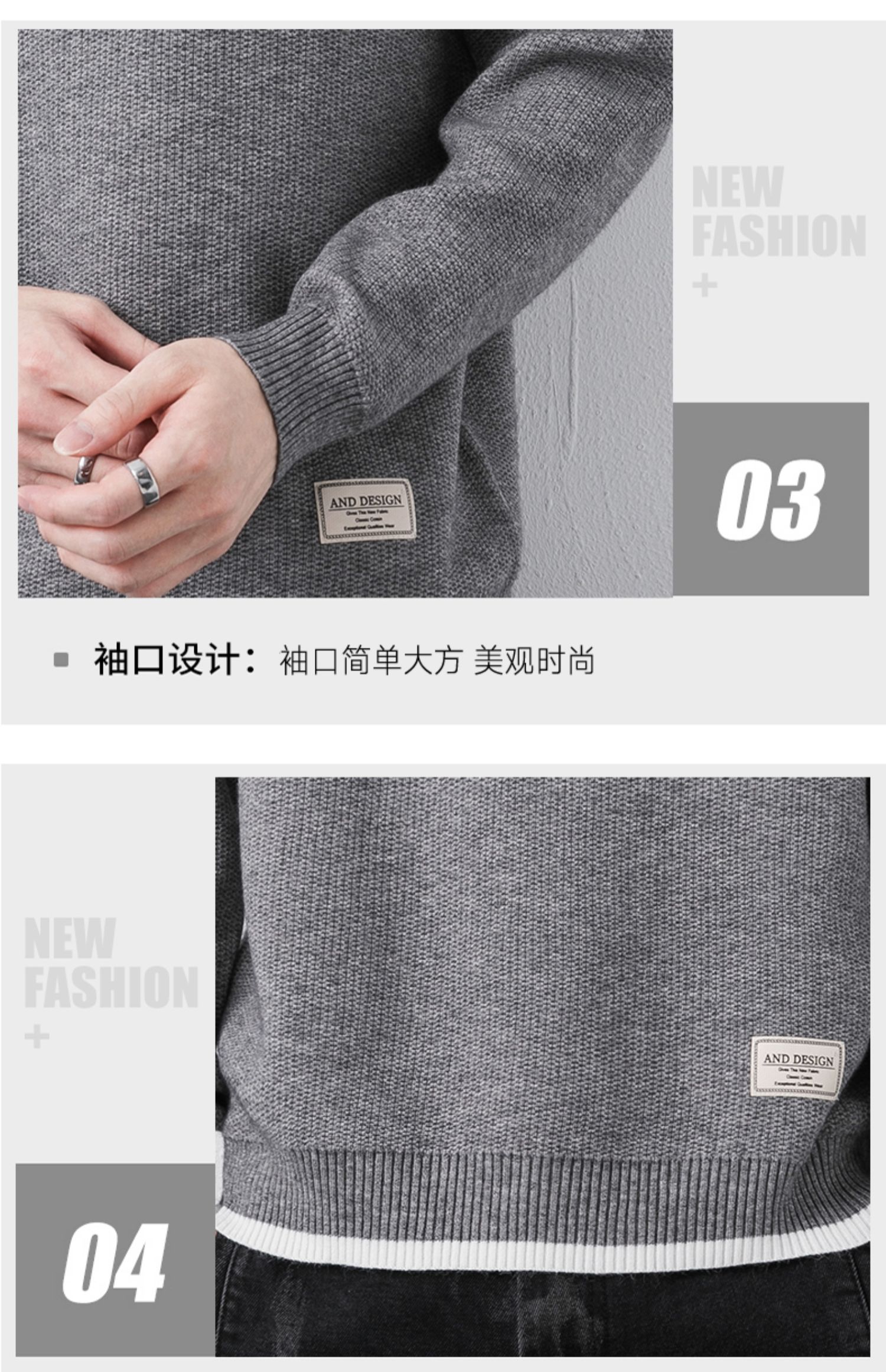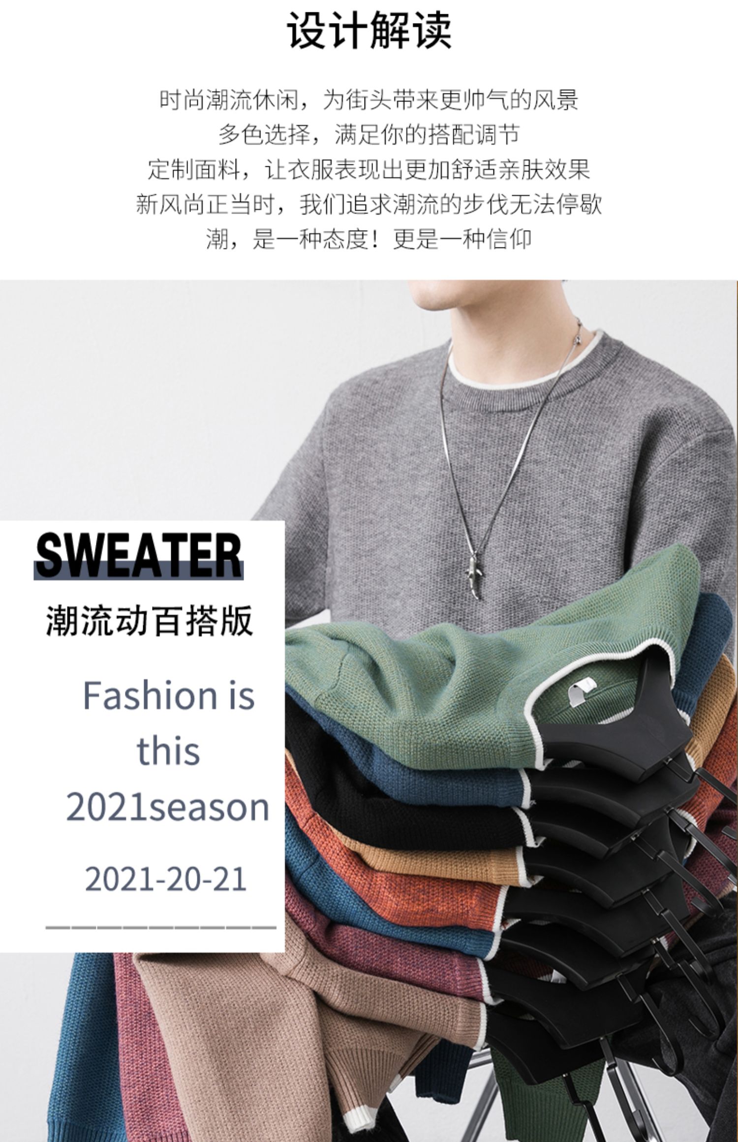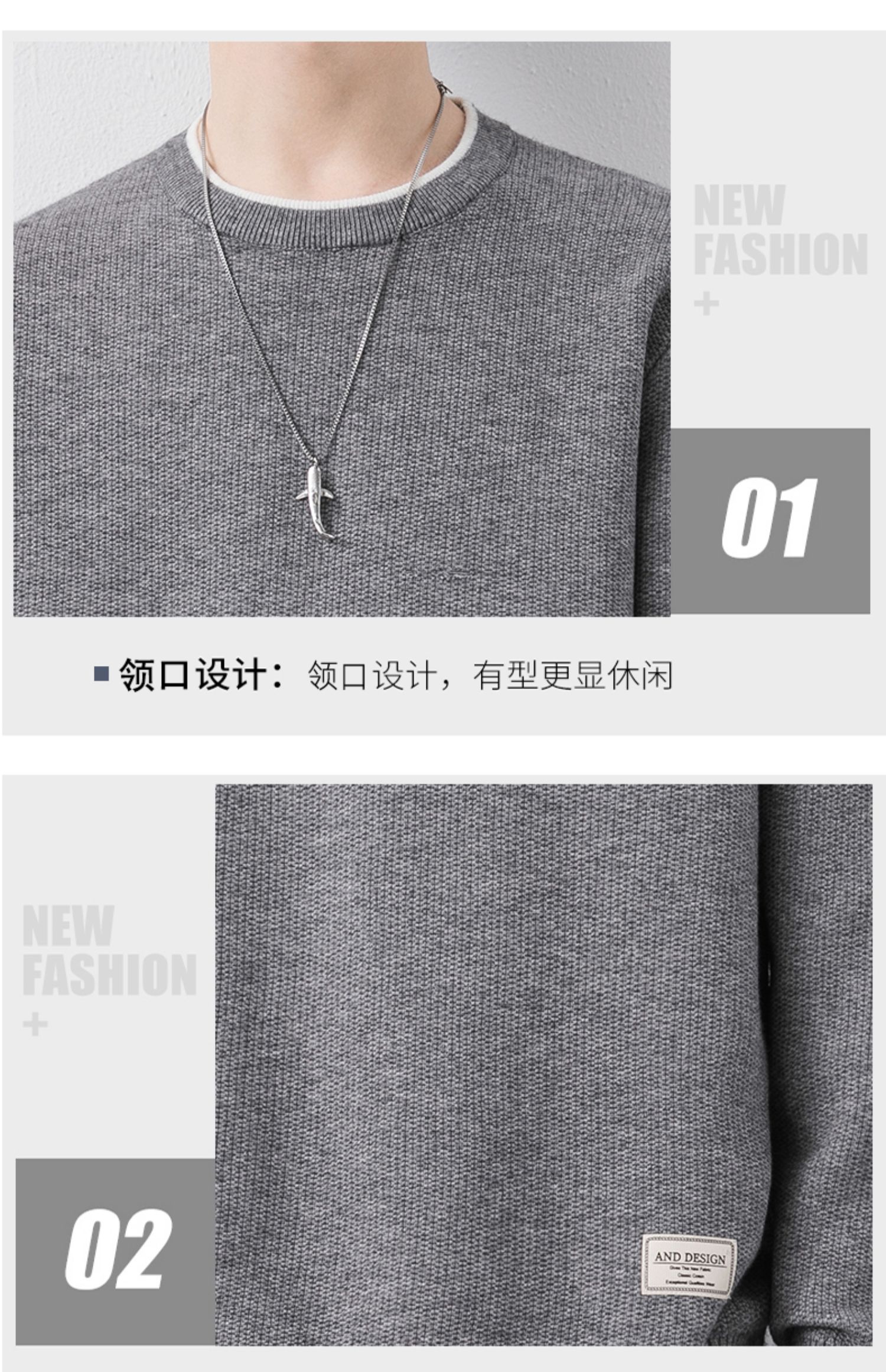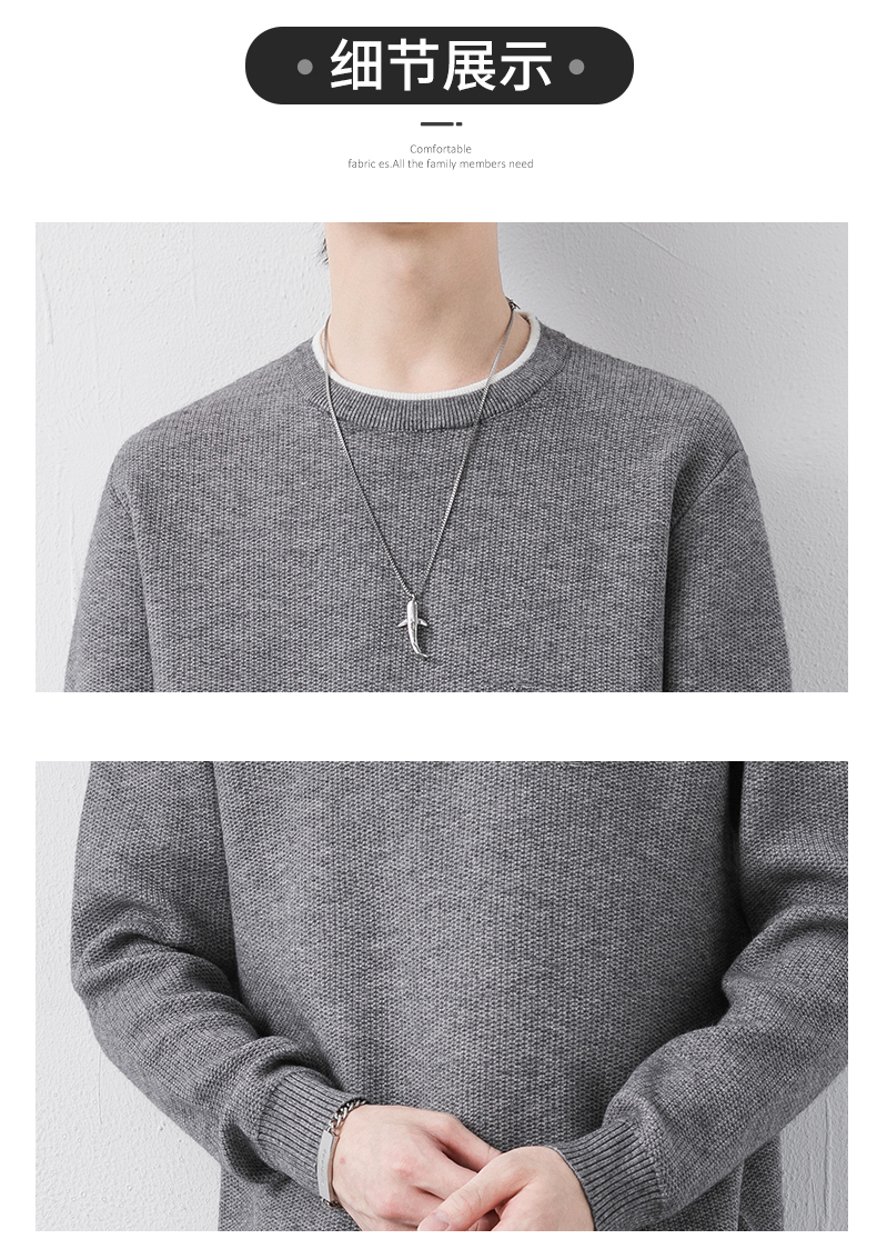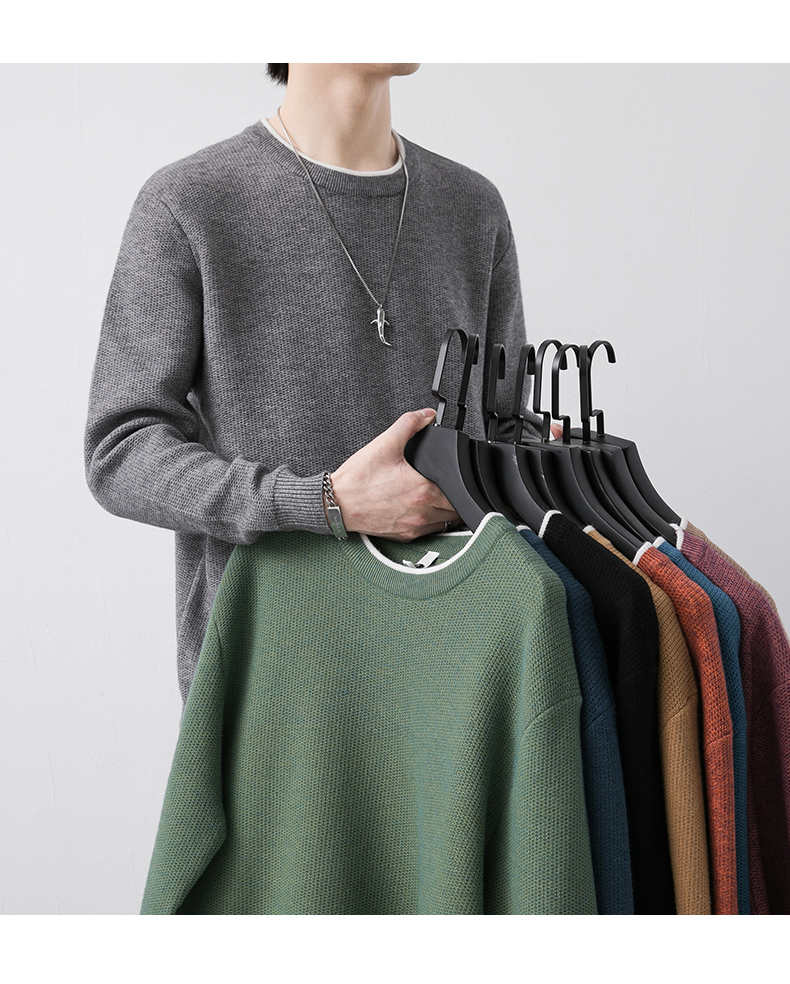 純色冬季圓領毛衣男日系加絨寬松針織線衣加厚內搭休閒百搭打底衫