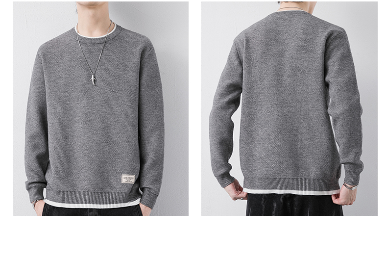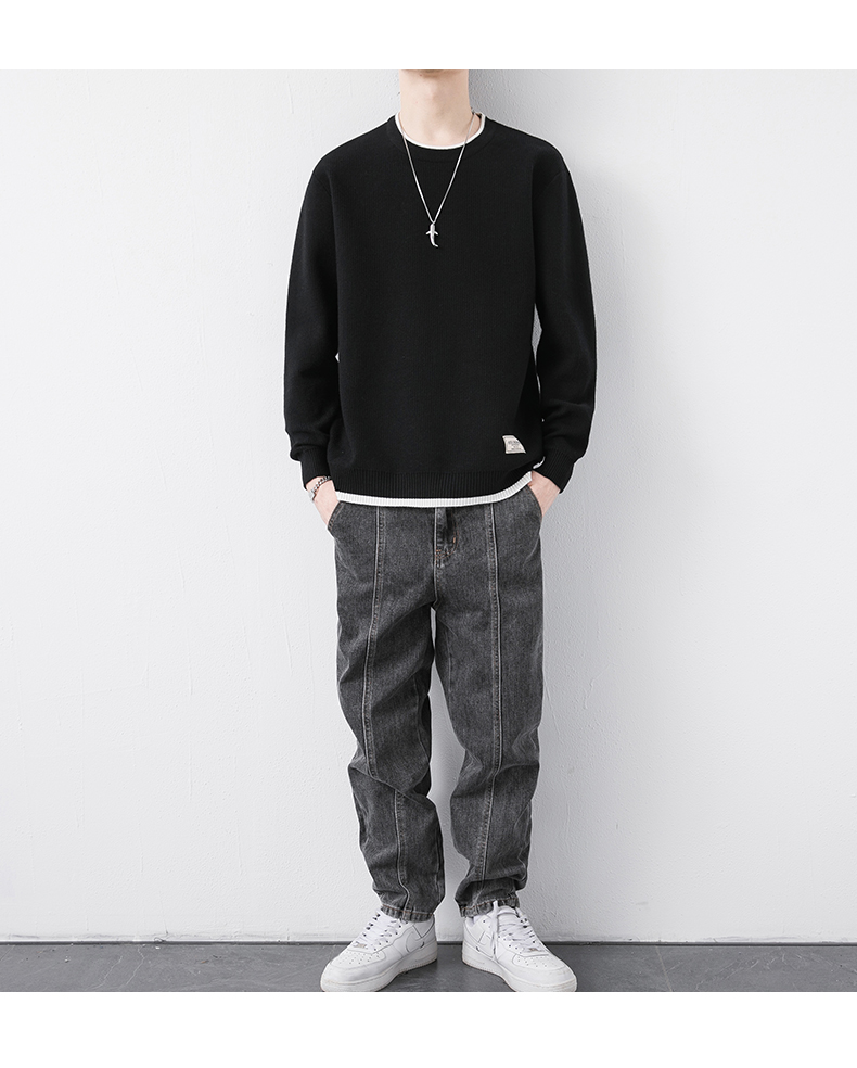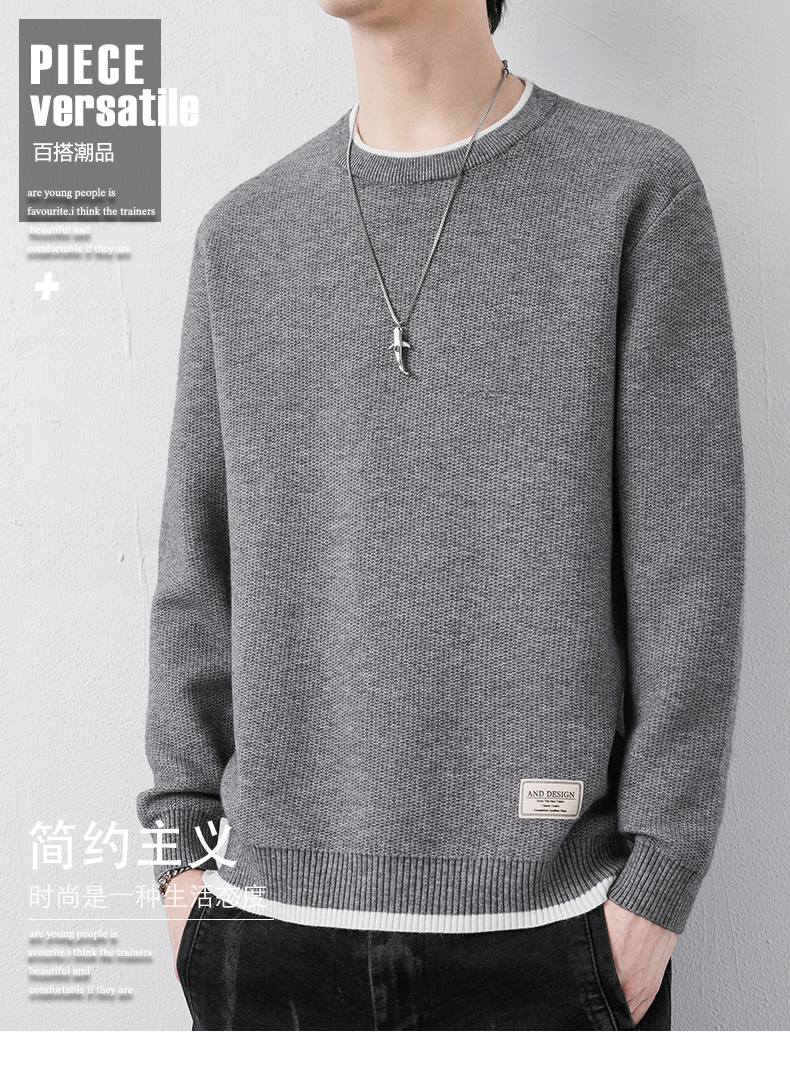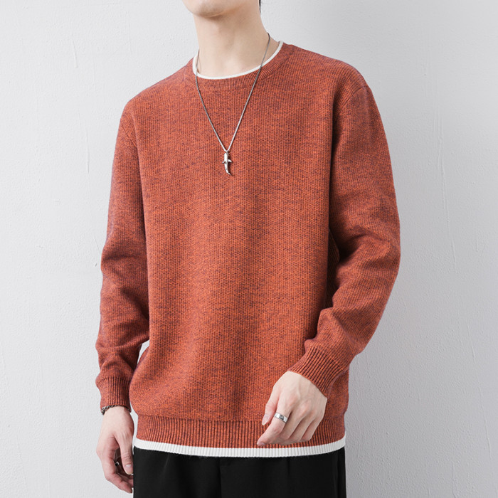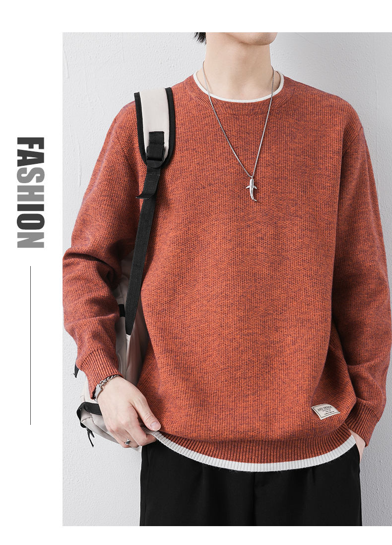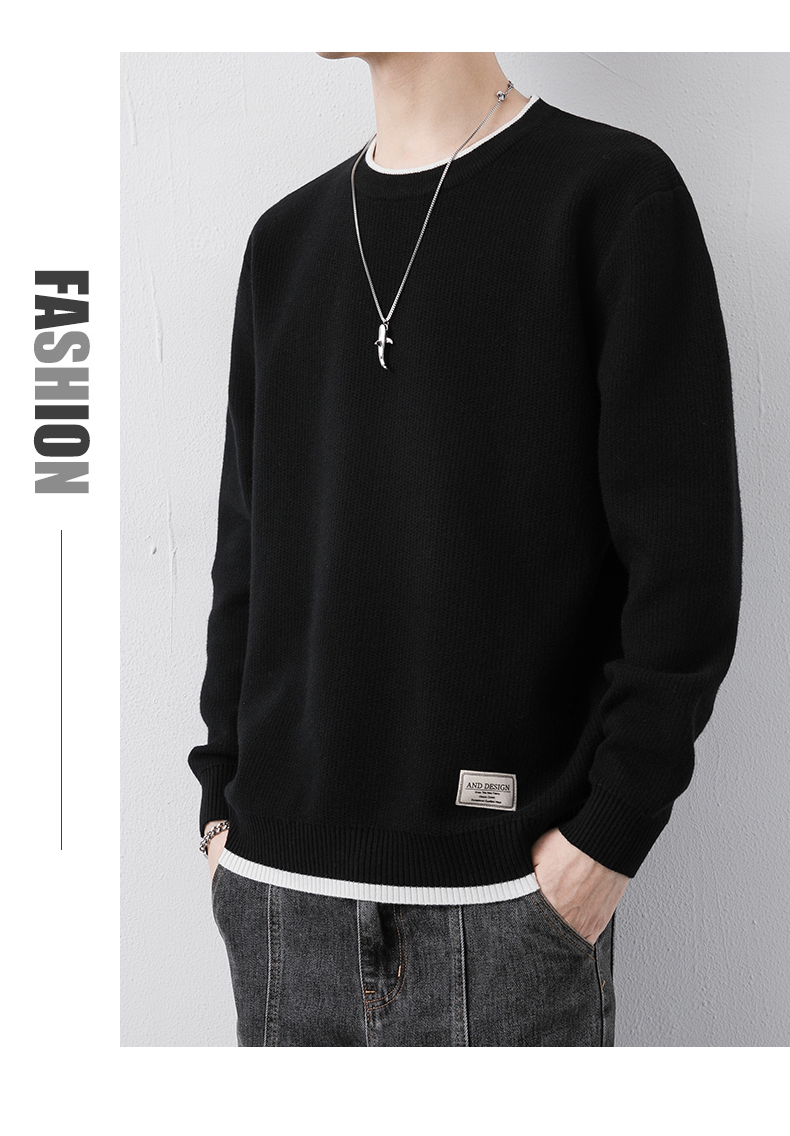 純色冬季圓領毛衣男日系加絨寬松針織線衣加厚內搭休閒百搭打底衫