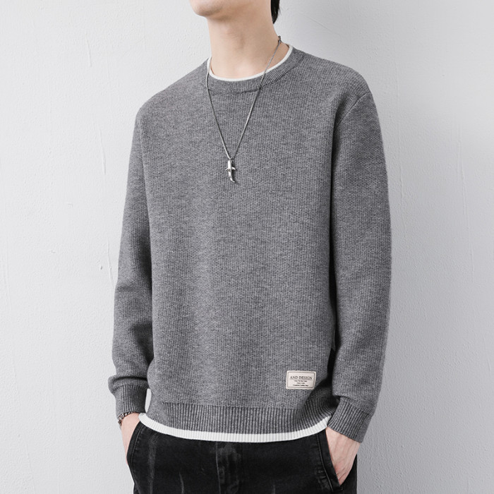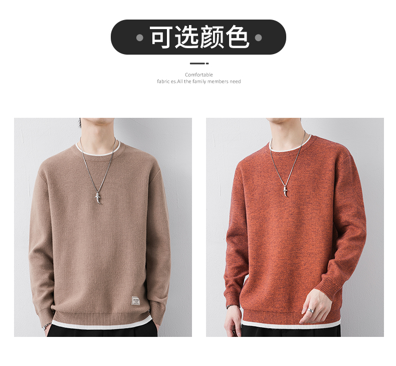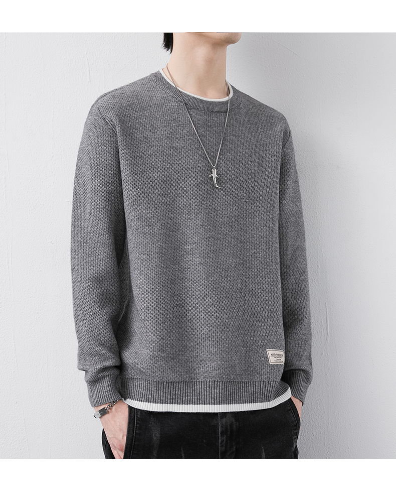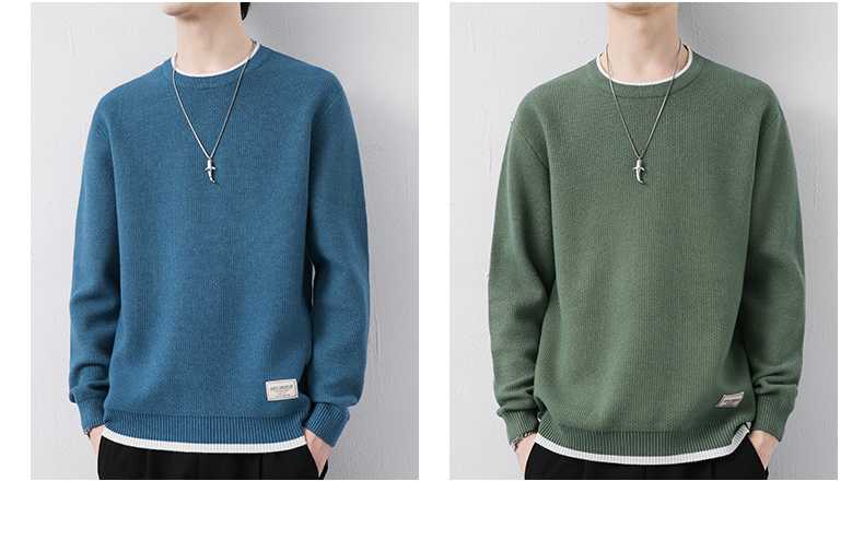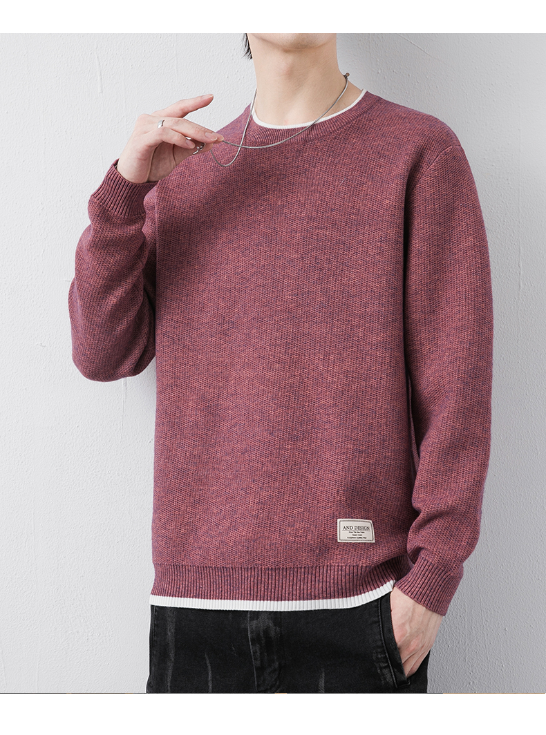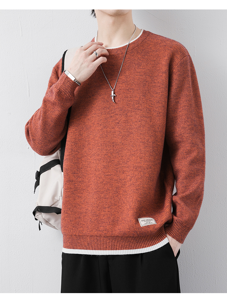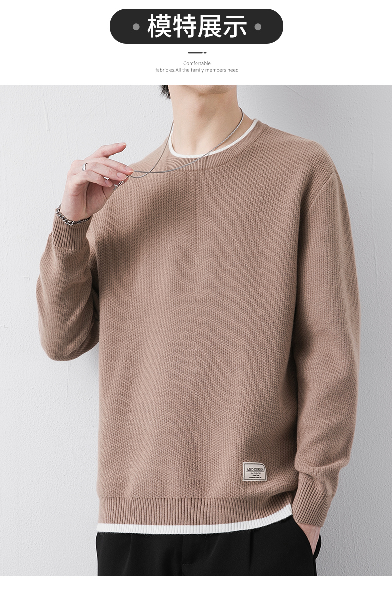 純色冬季圓領毛衣男日系加絨寬松針織線衣加厚內搭休閒百搭打底衫