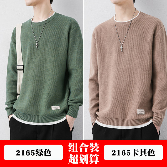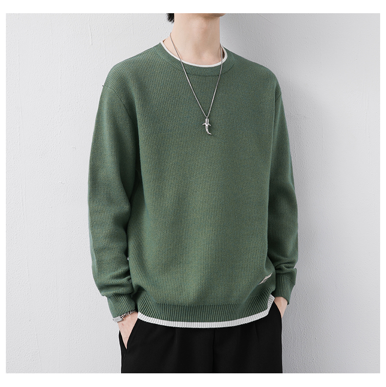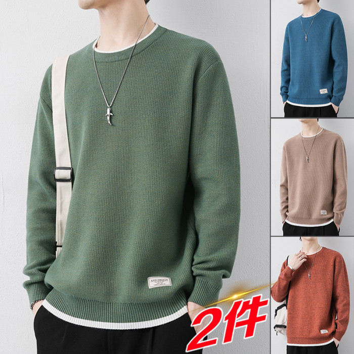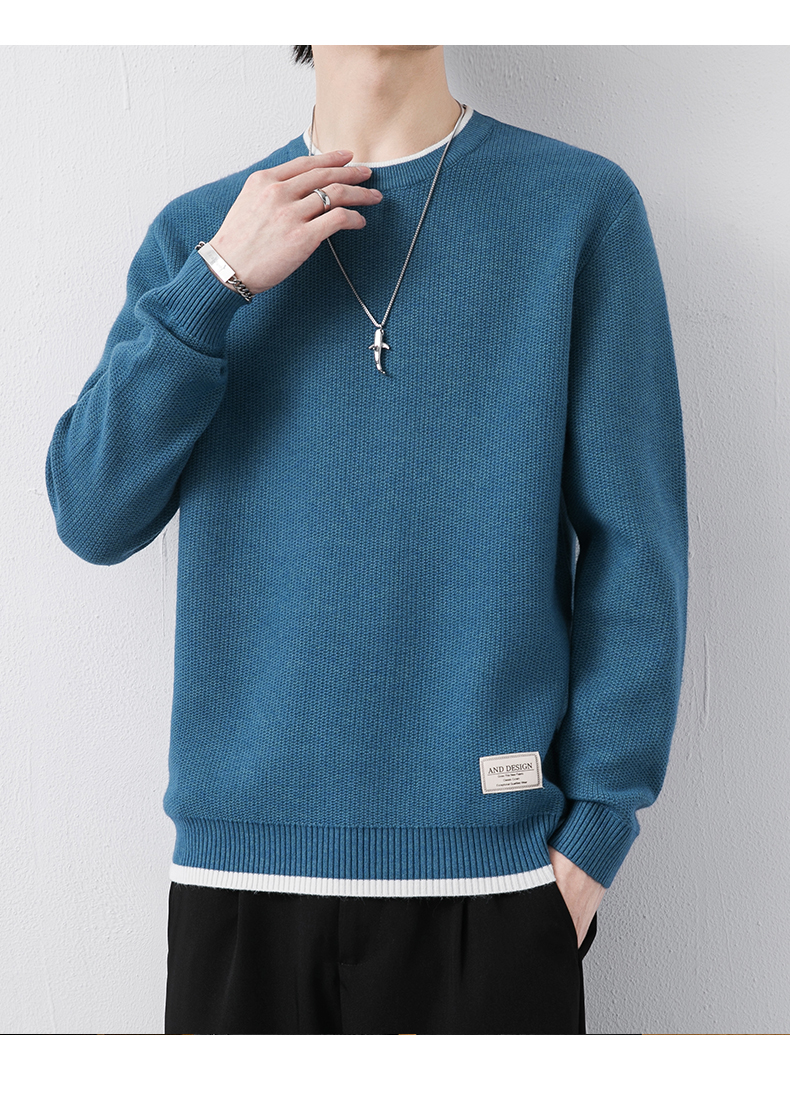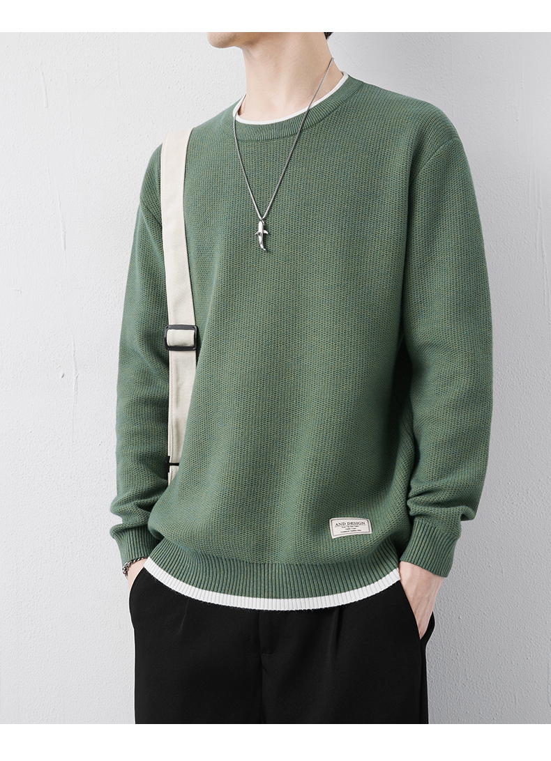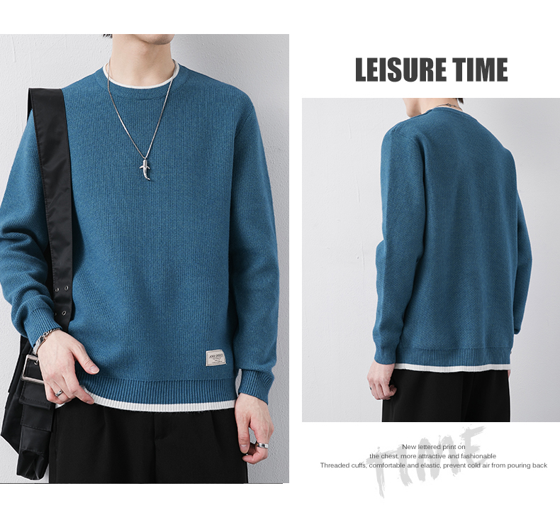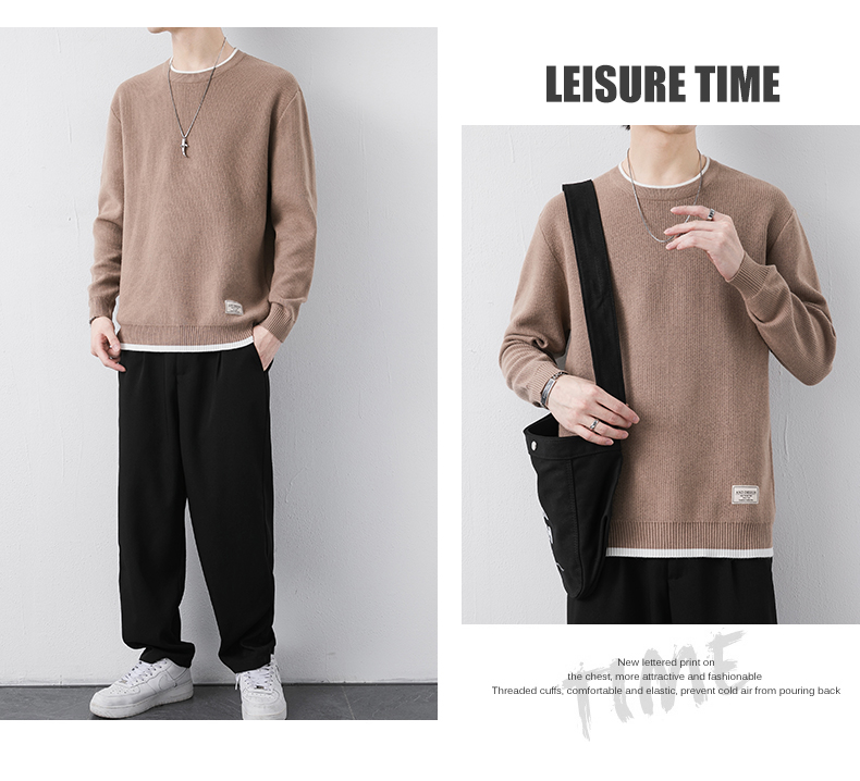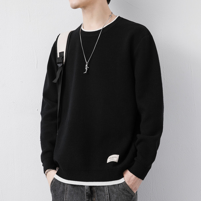 純色冬季圓領毛衣男日系加絨寬松針織線衣加厚內搭休閒百搭打底衫