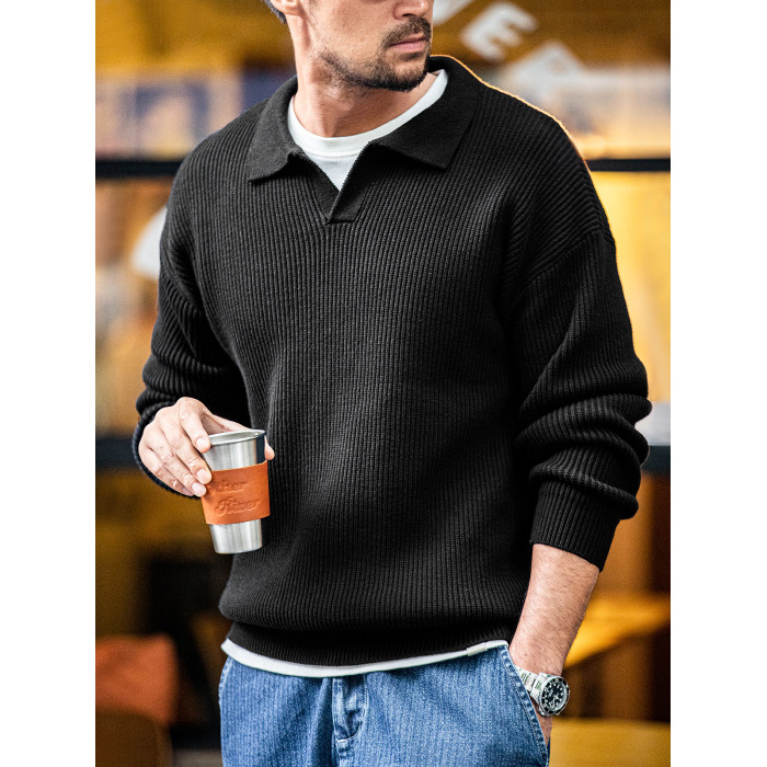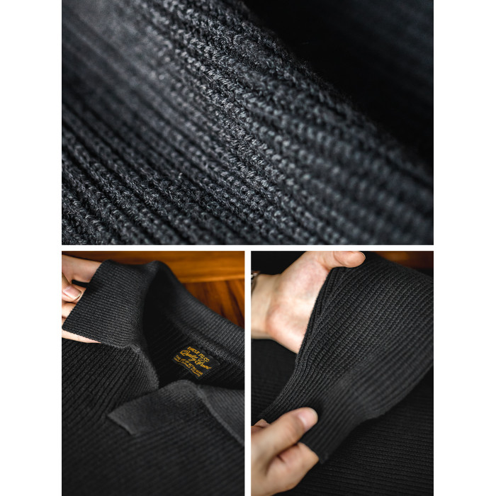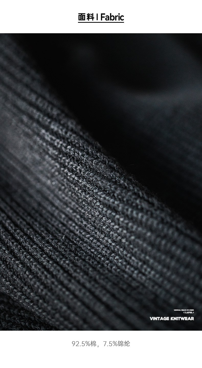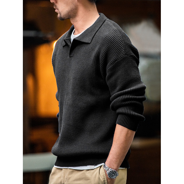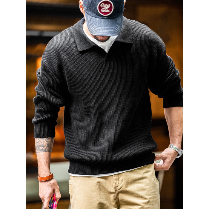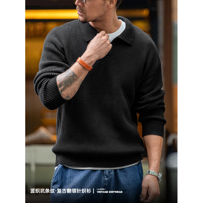 馬登工裝 美式復古海鷗領polo衫寬鬆慵懶套頭坑條針織衫毛衣男秋