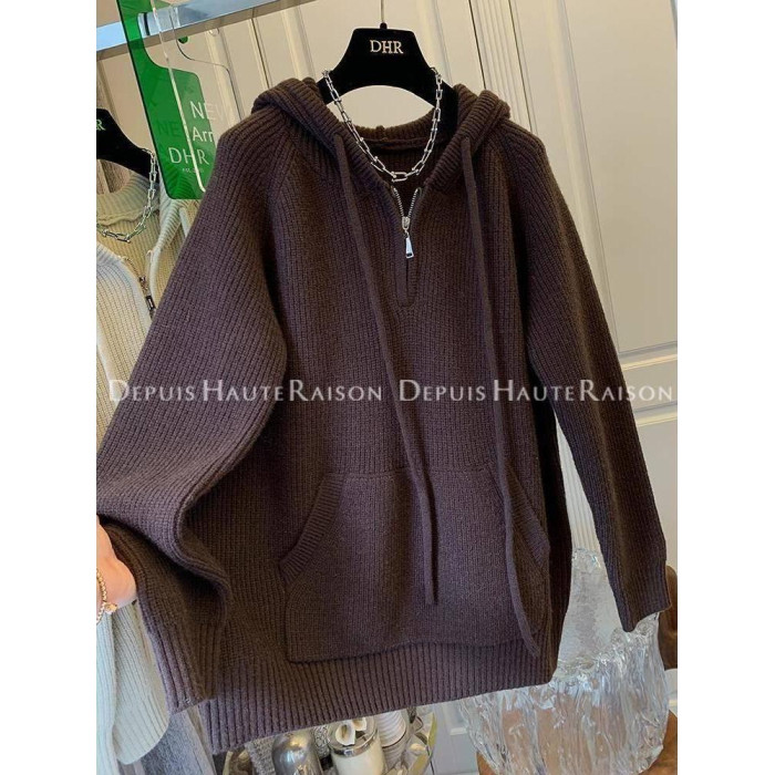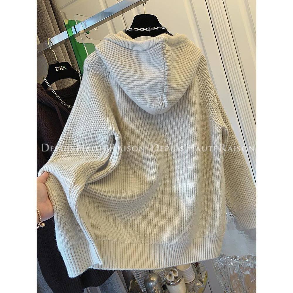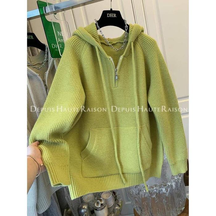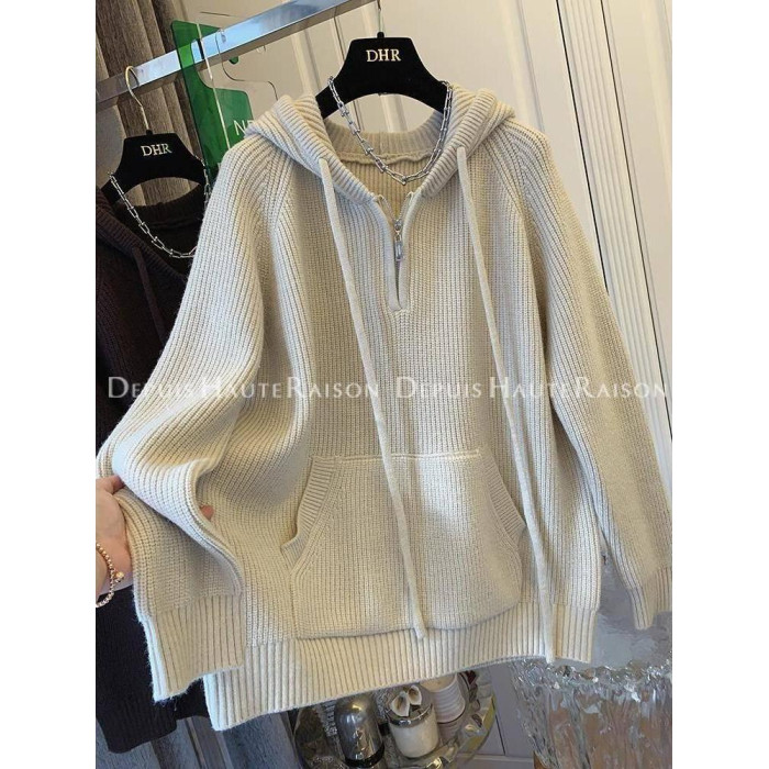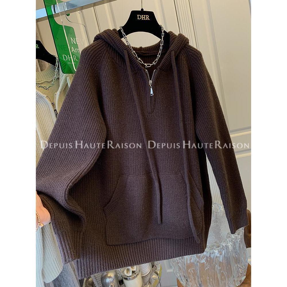 2-300斤大碼設計感半拉鍊連帽毛衣女秋冬胖mm寬松慵懶風針織外套