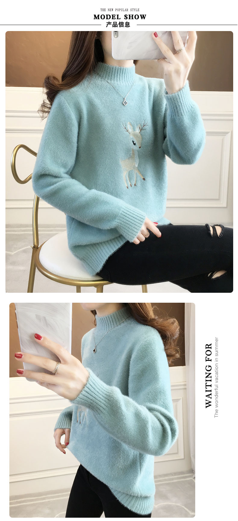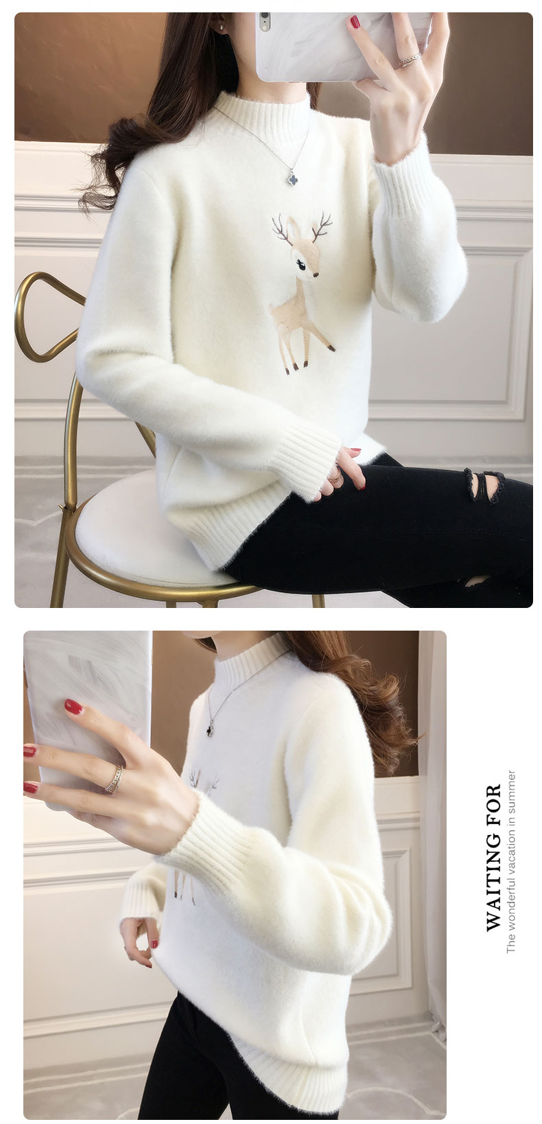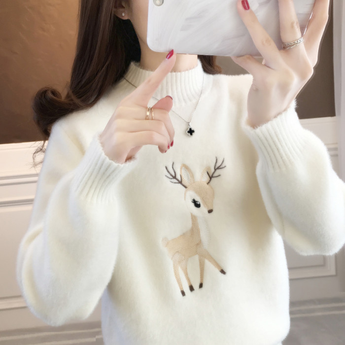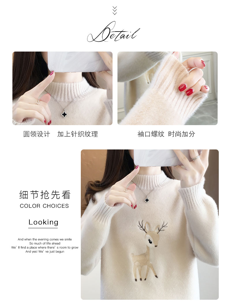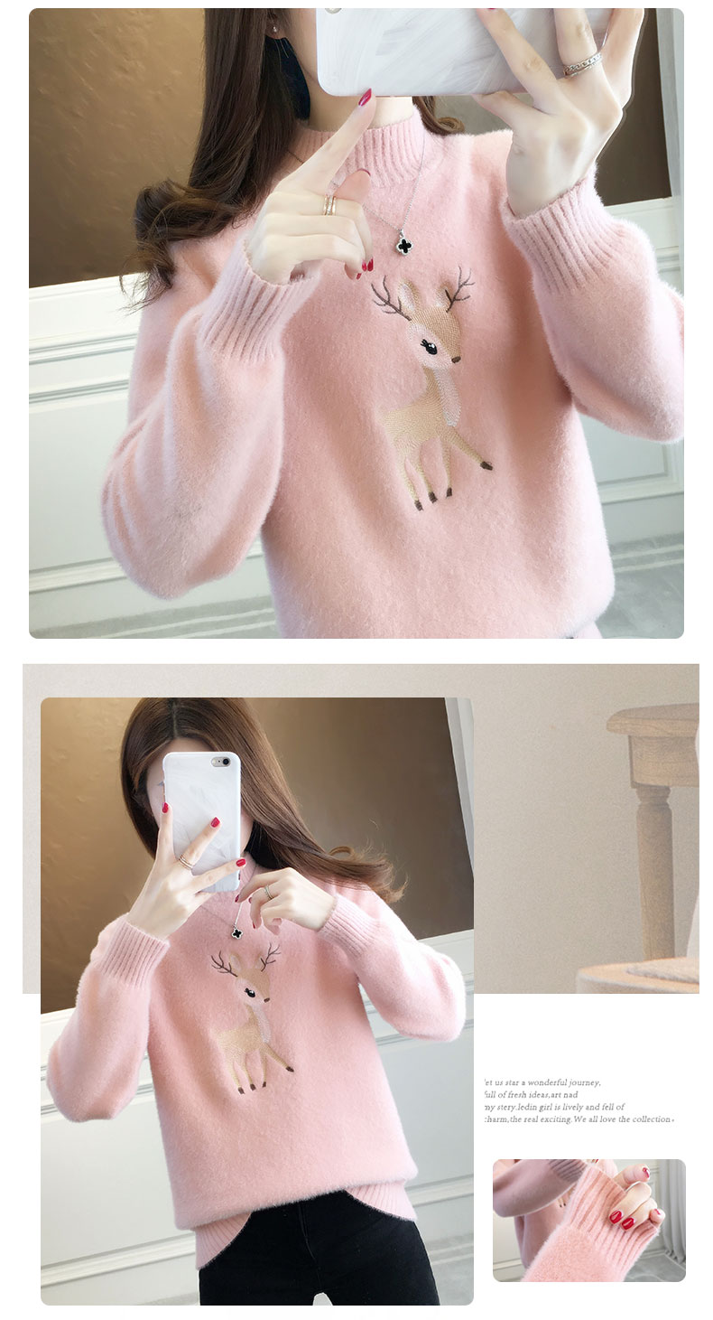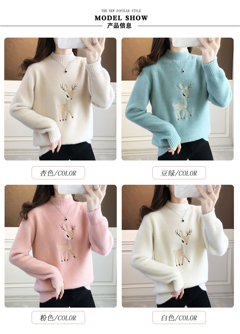 2025刺綉毛衣女大童初中高中半高領學院風百搭卡通甜美針織少女裝