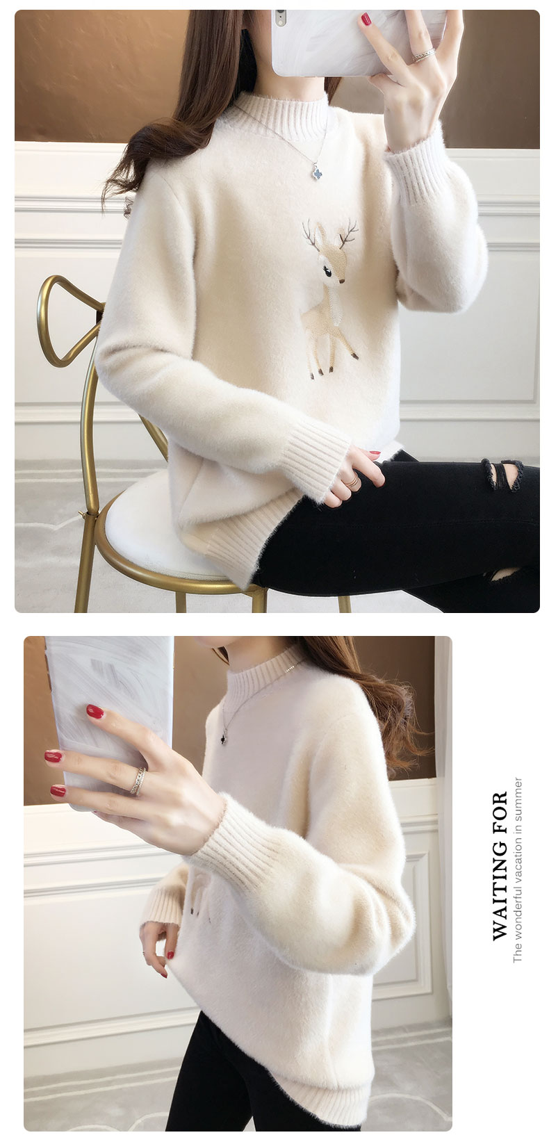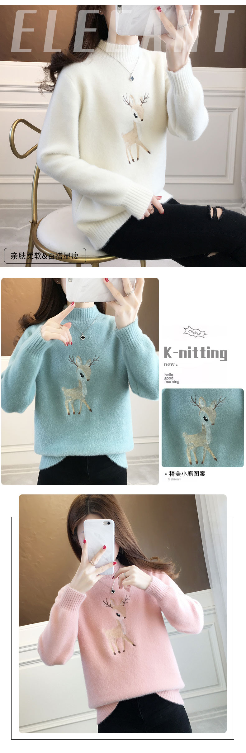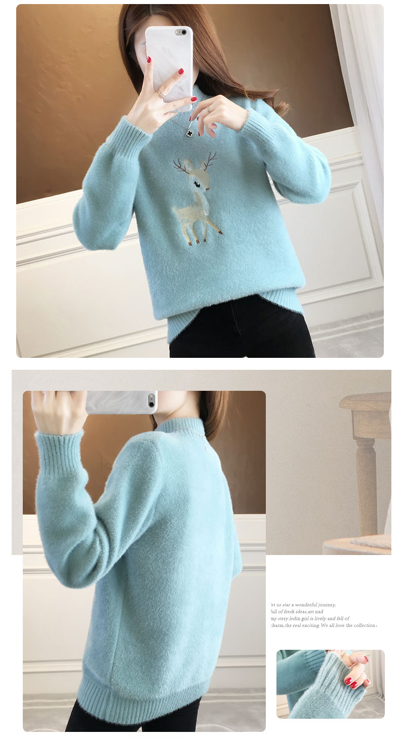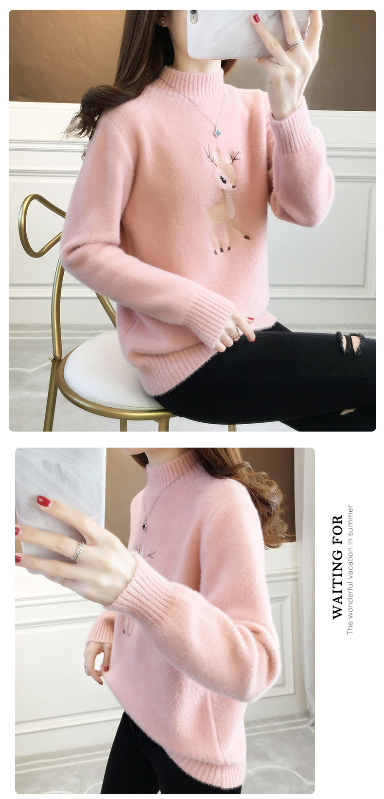 2025刺綉毛衣女大童初中高中半高領學院風百搭卡通甜美針織少女裝