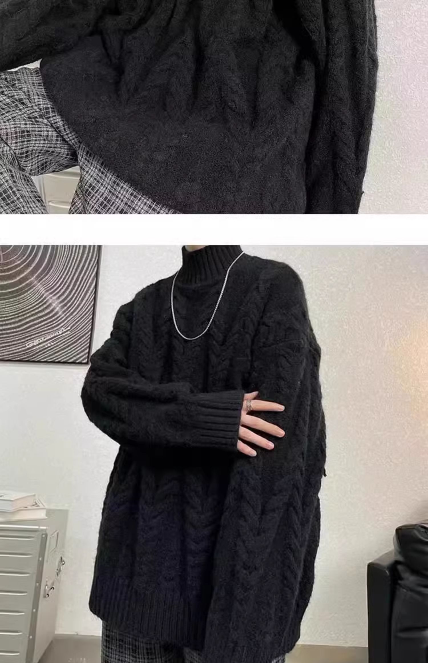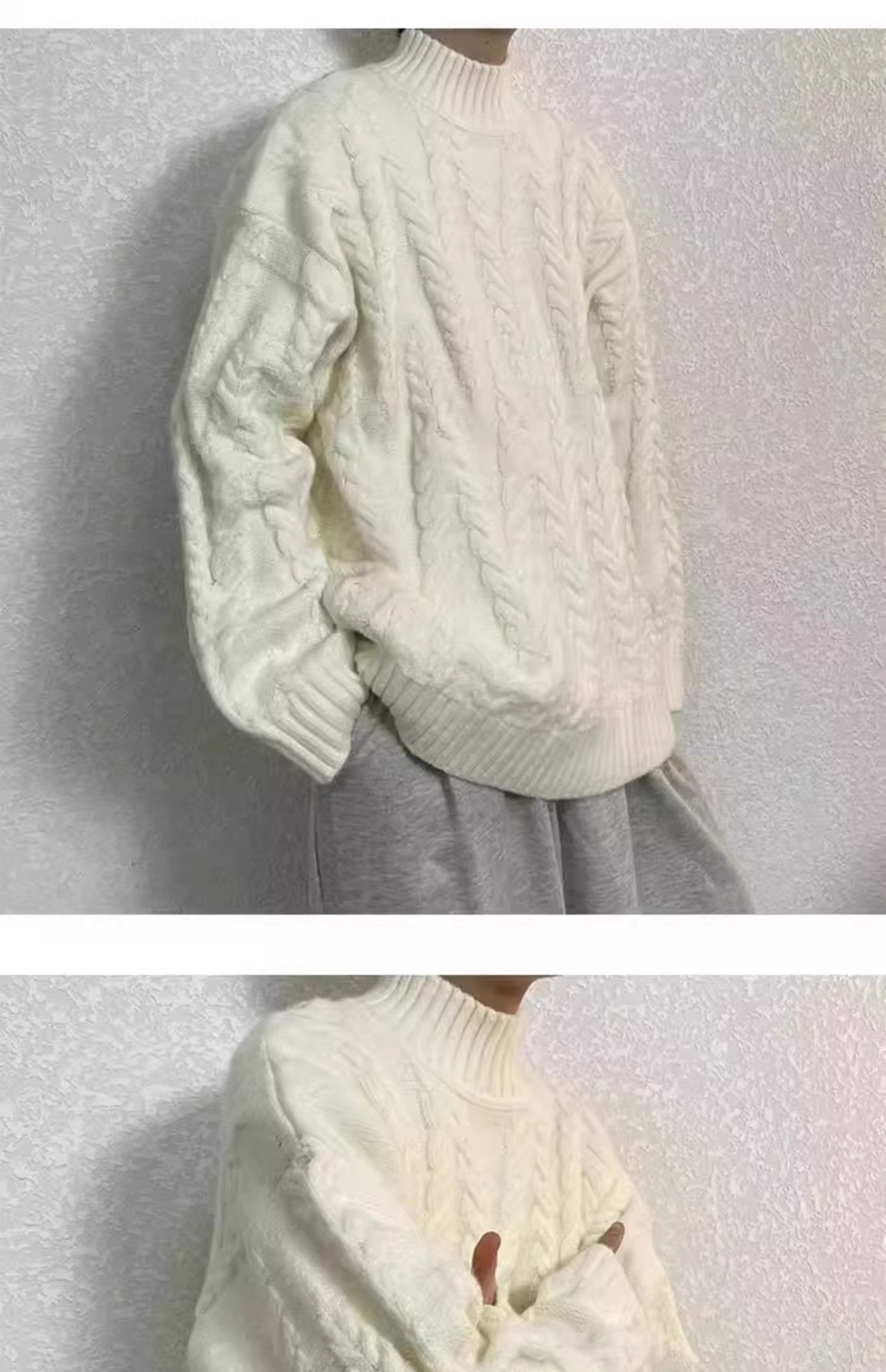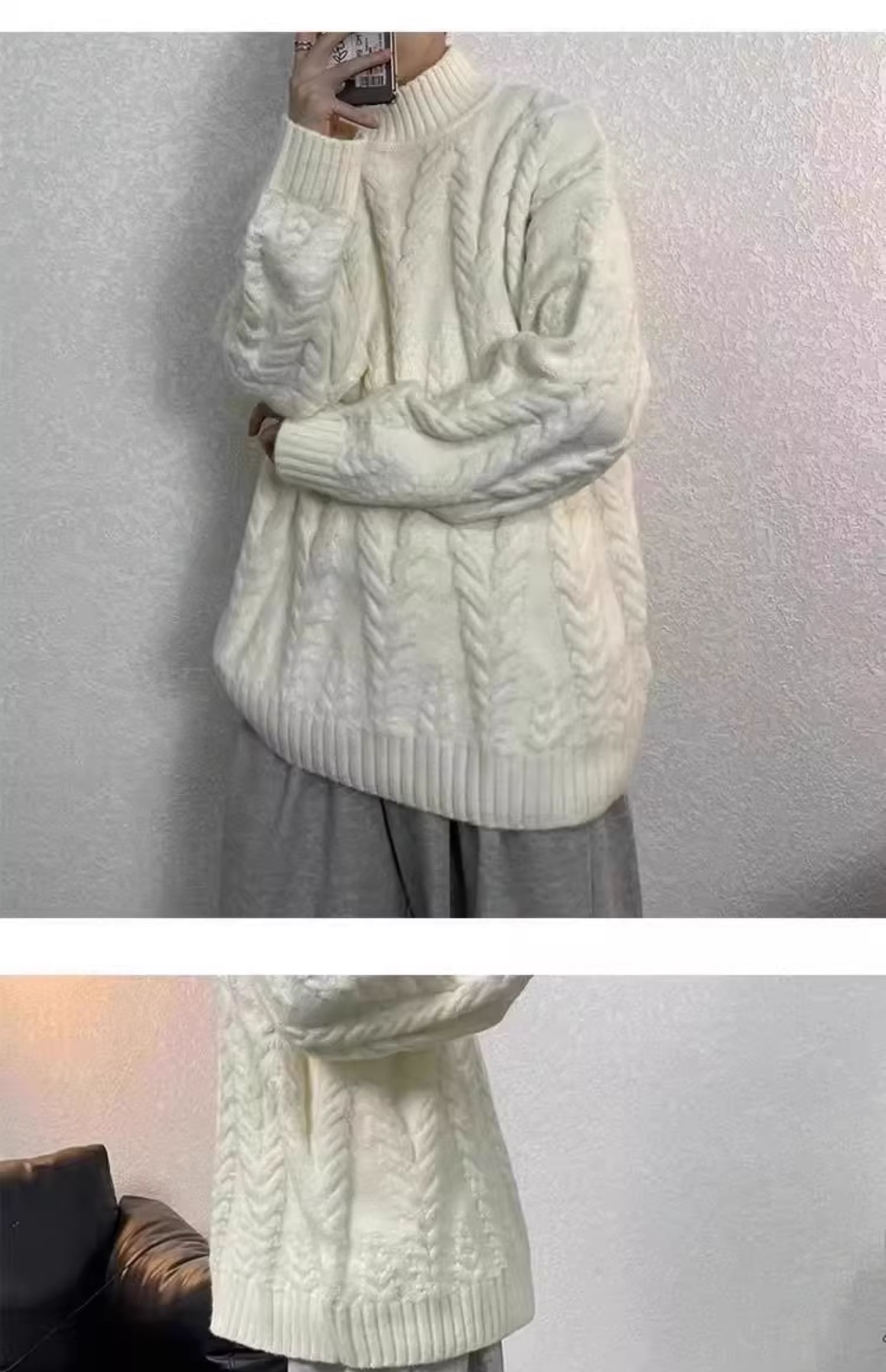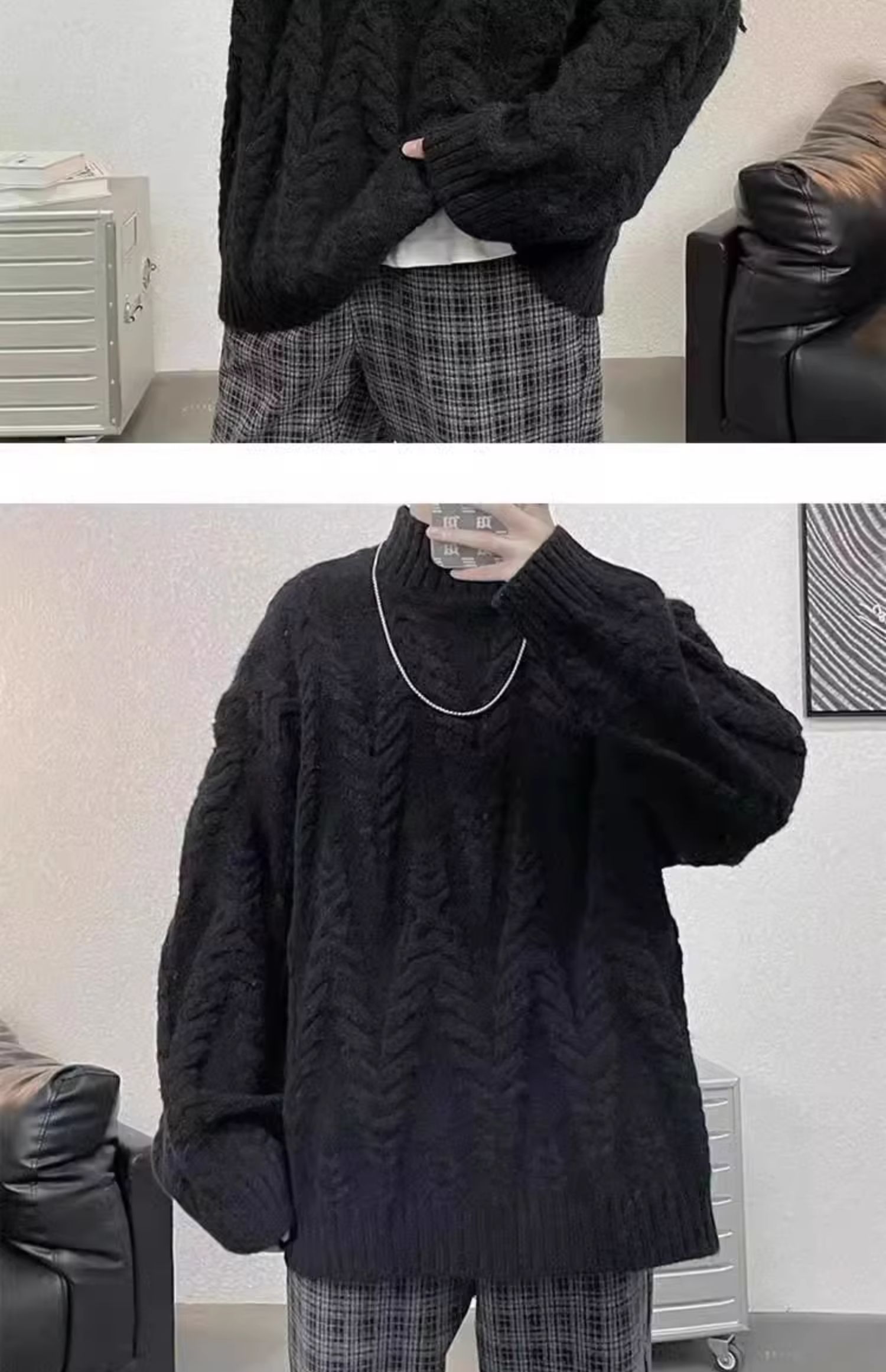 特大碼300斤日系麻花扭花圓領毛衣男裝秋冬季寬松休閒保暖上衣潮
