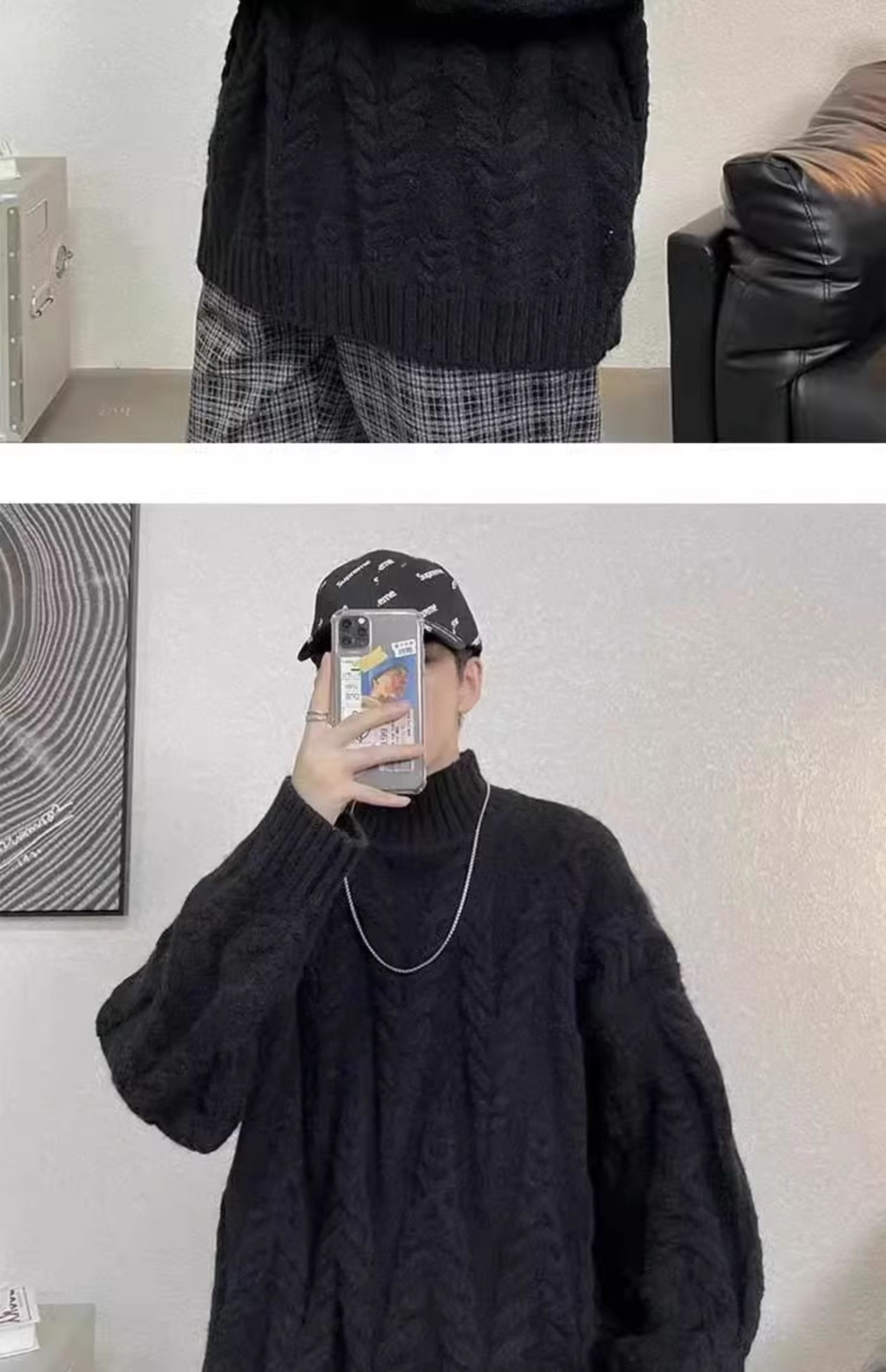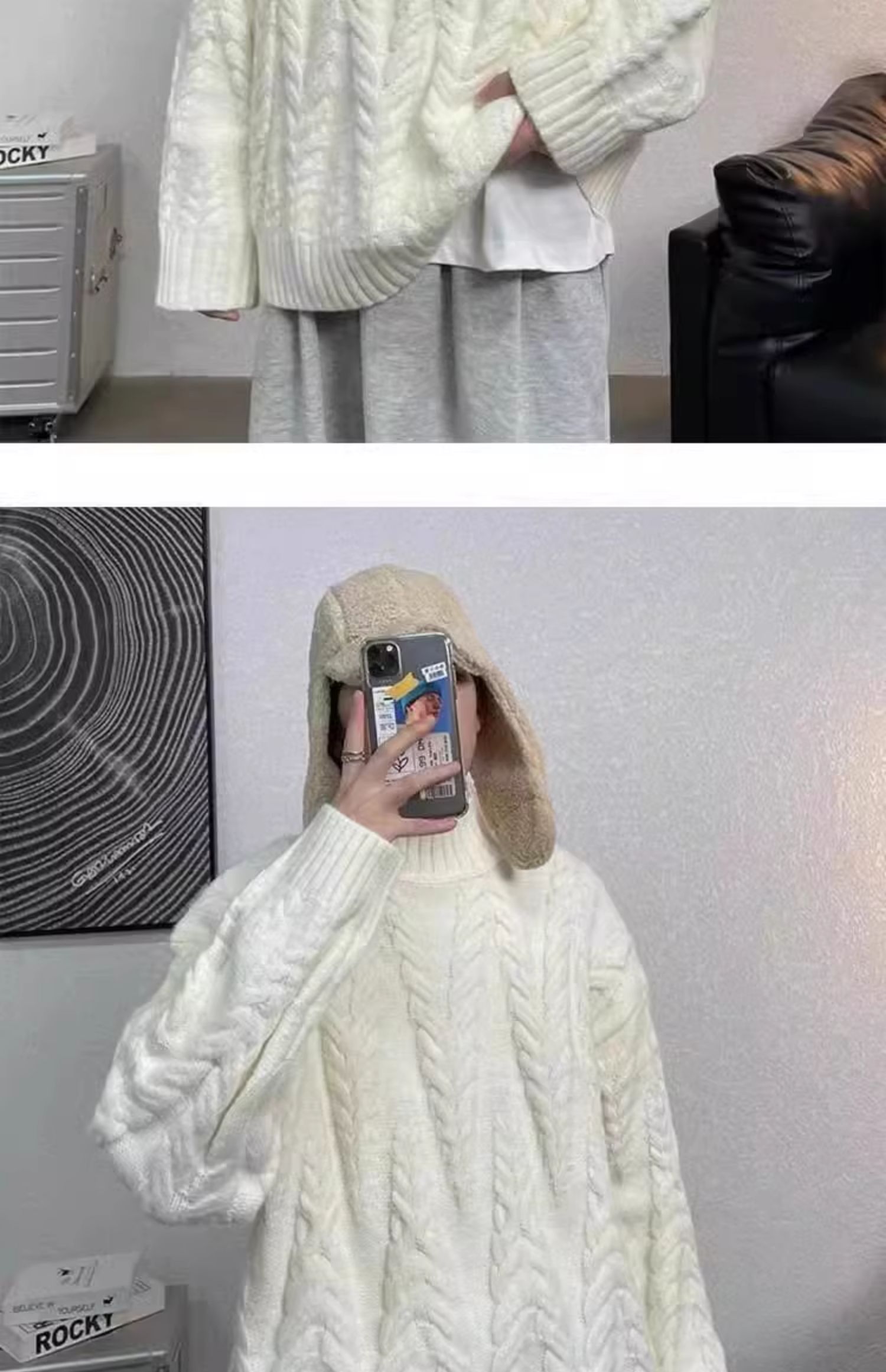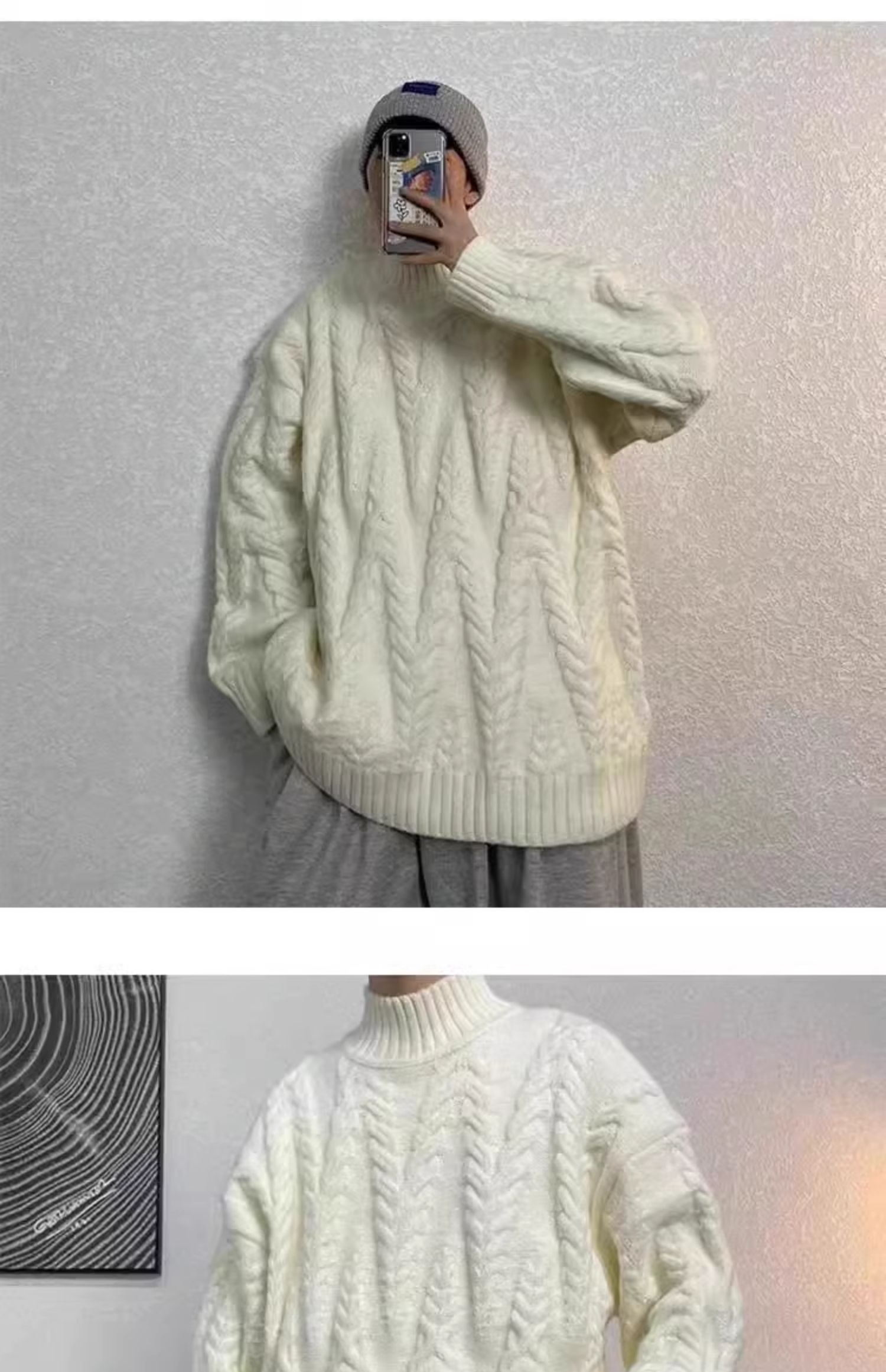 特大碼300斤日系麻花扭花圓領毛衣男裝秋冬季寬松休閒保暖上衣潮