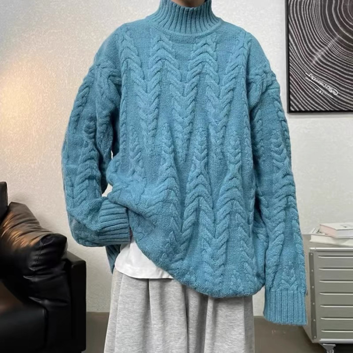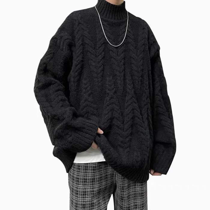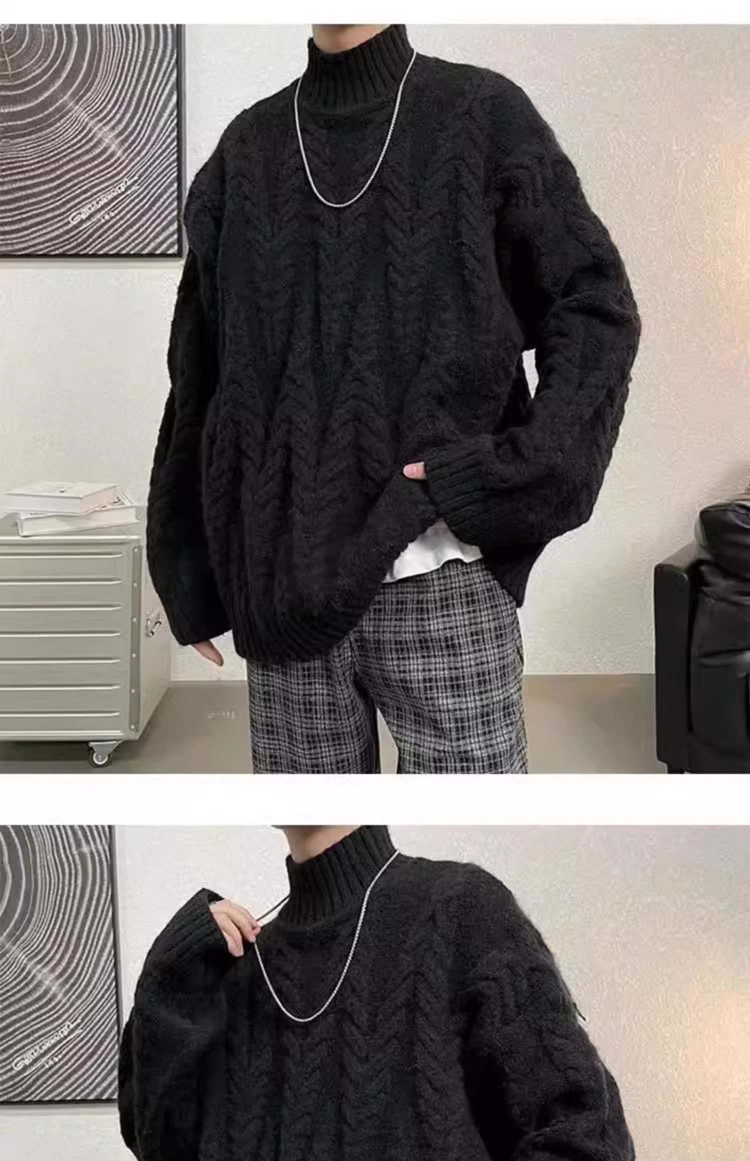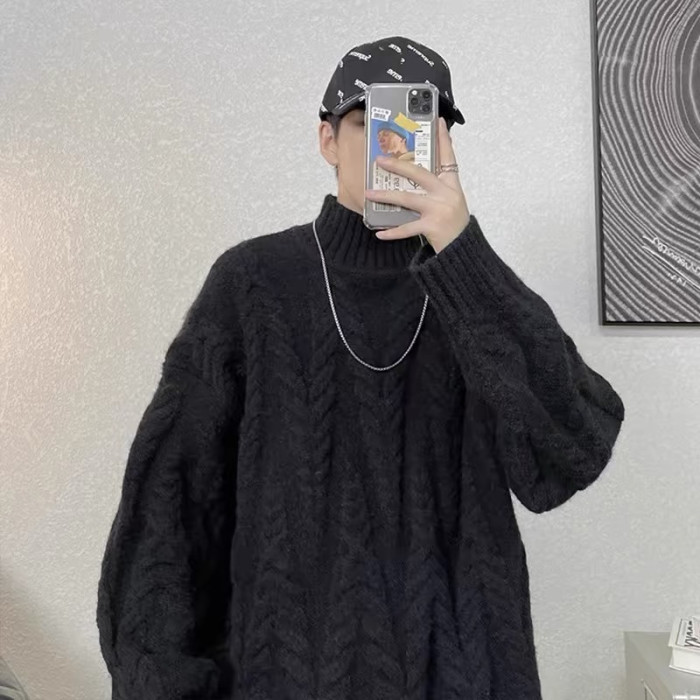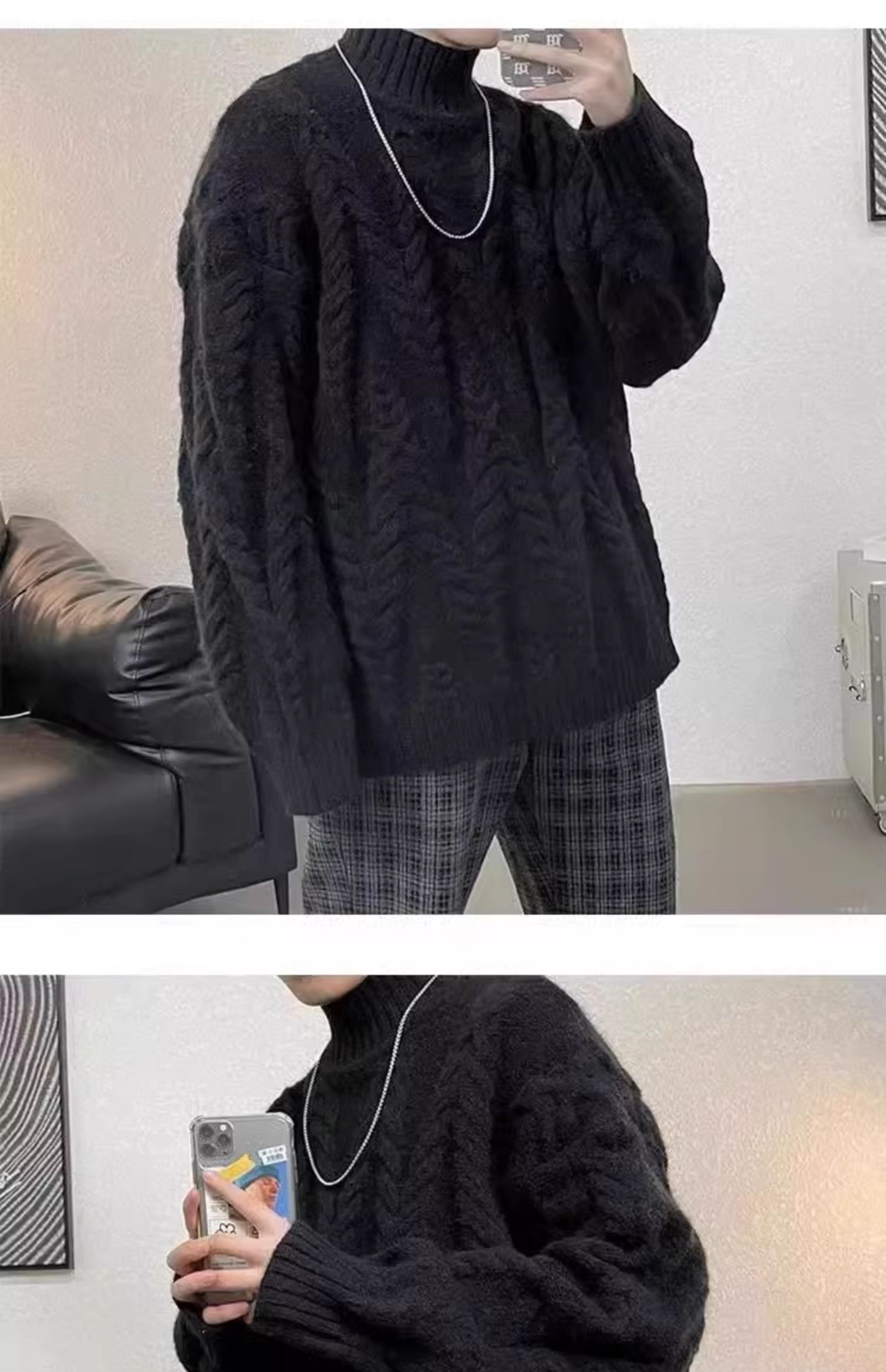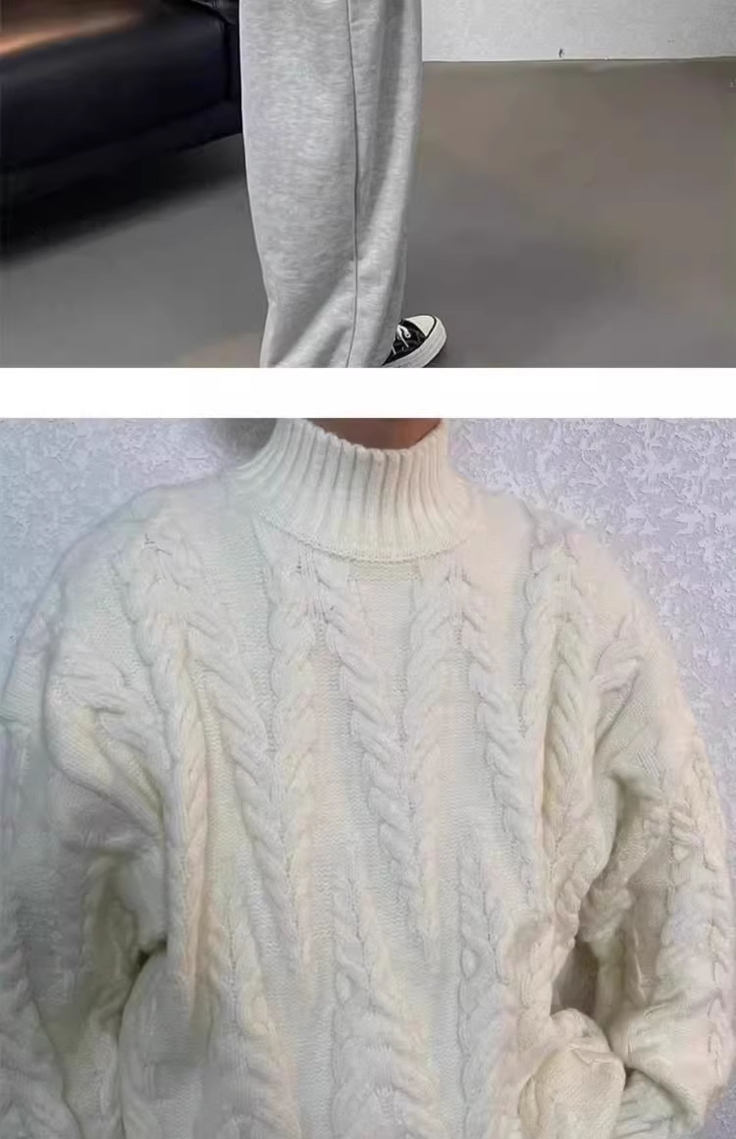 特大碼300斤日系麻花扭花圓領毛衣男裝秋冬季寬松休閒保暖上衣潮