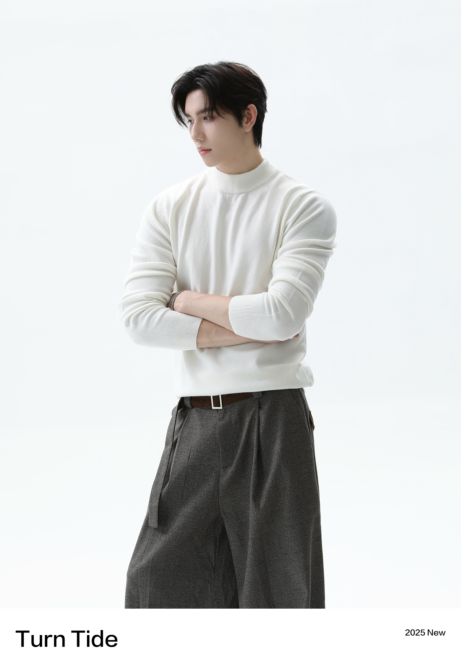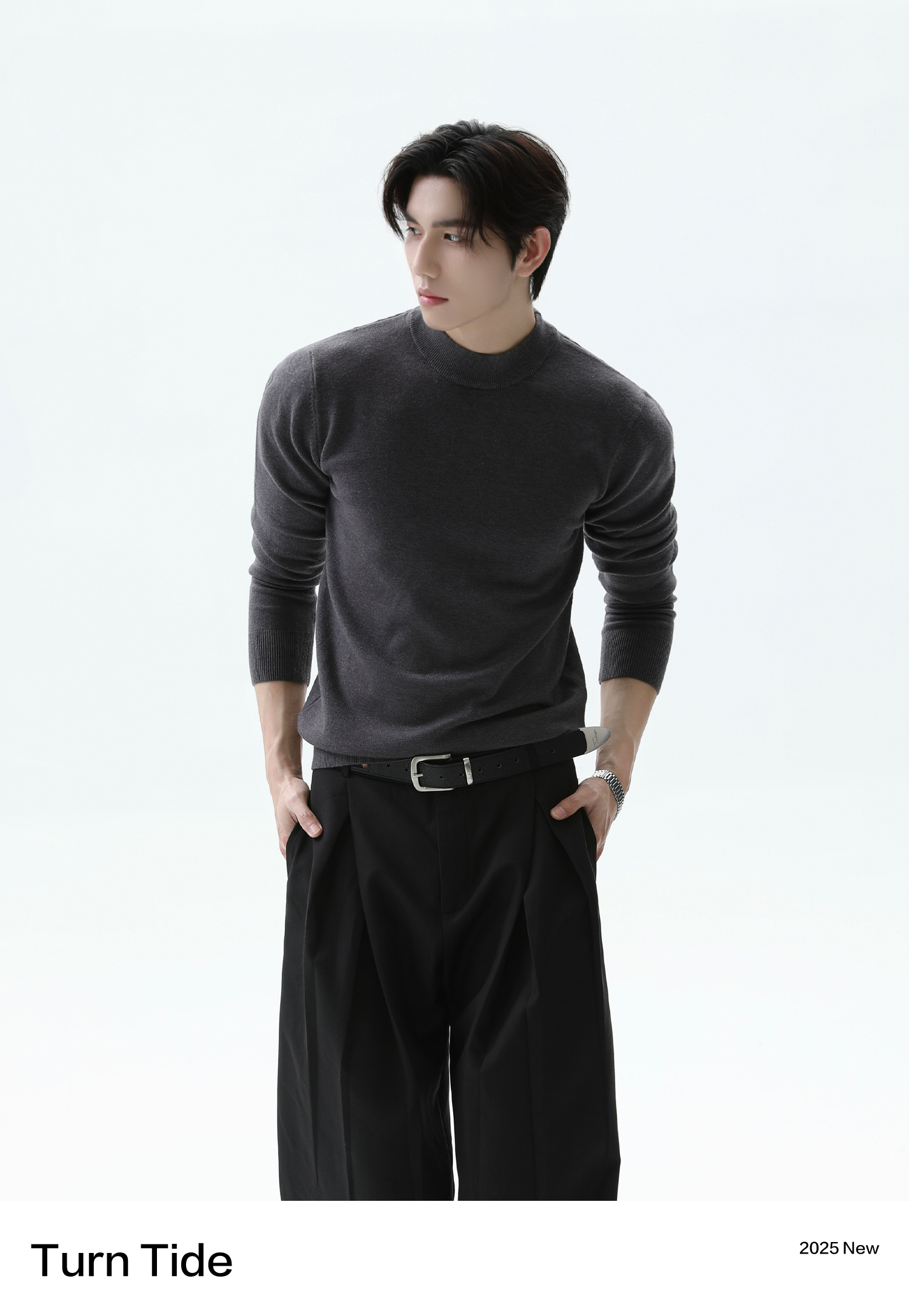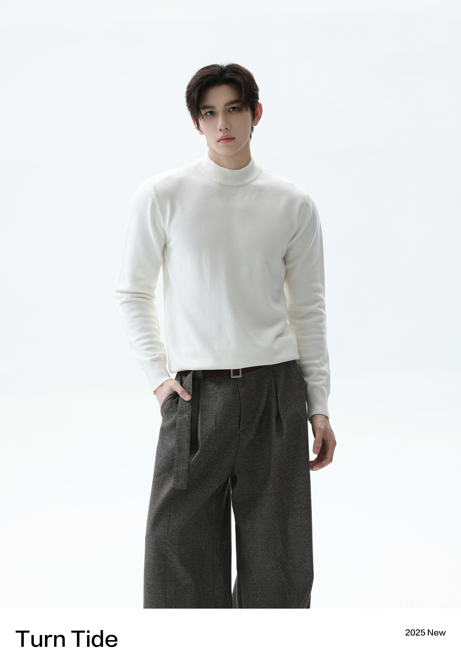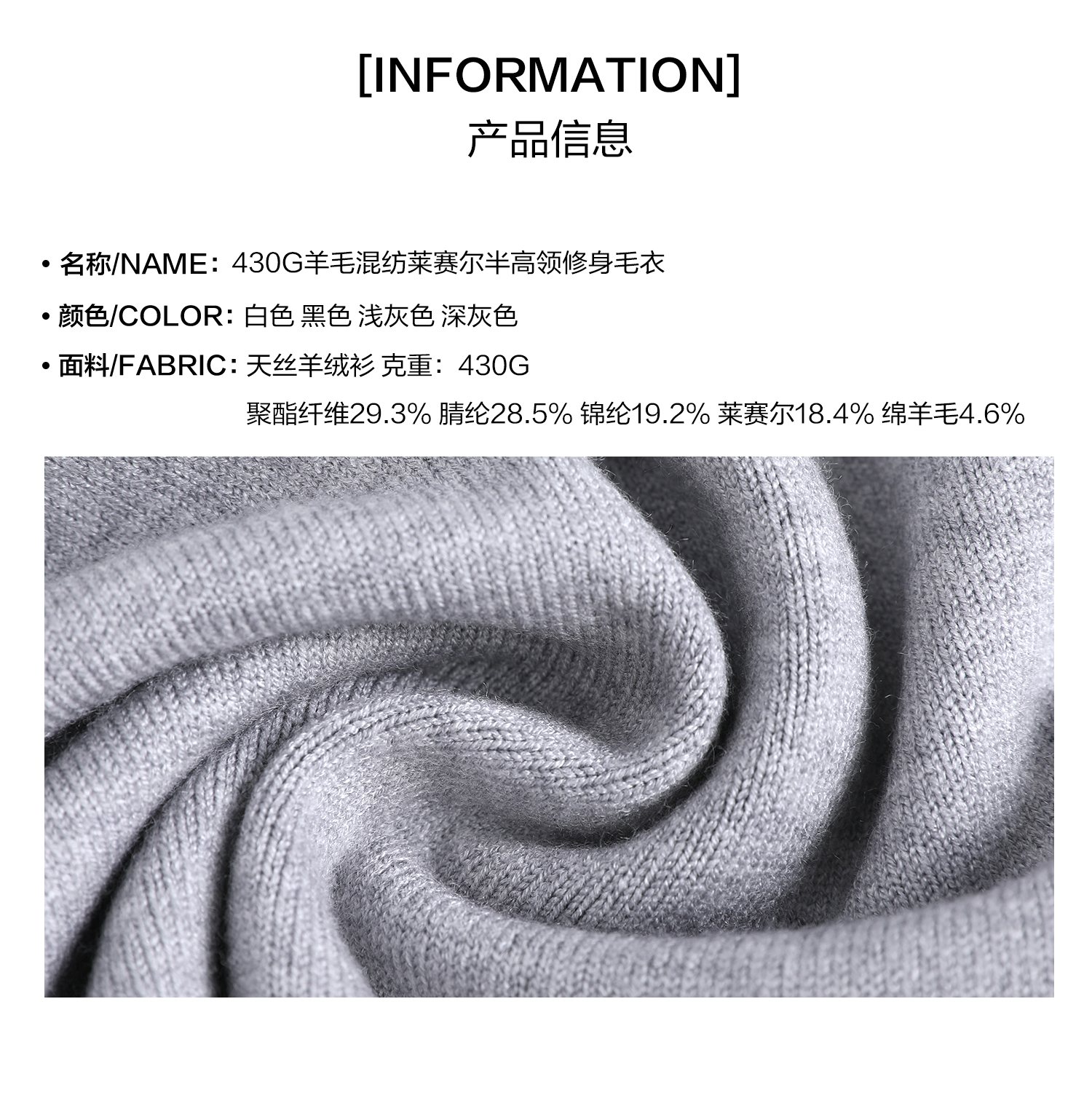 TURNTIDE 430g羊毛混紡萊賽爾半高領修身毛衣保暖打底內搭針織衫