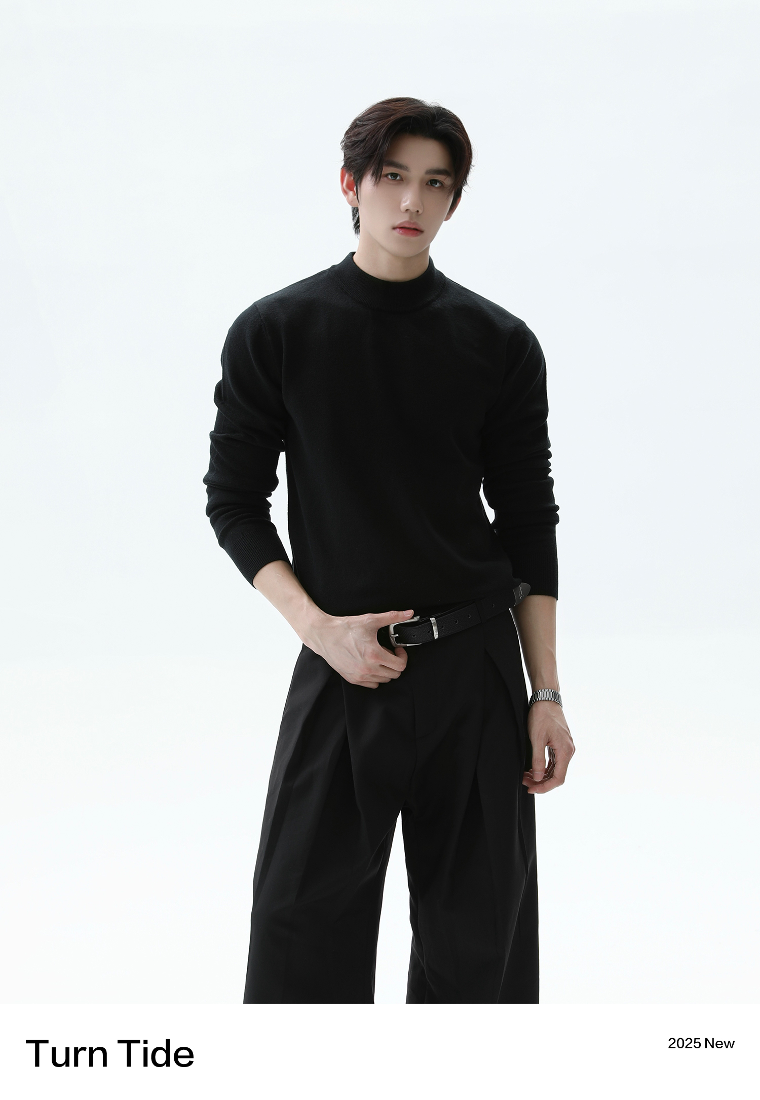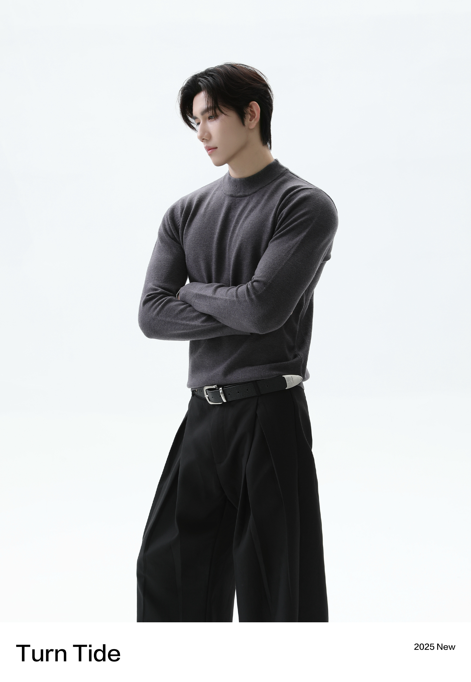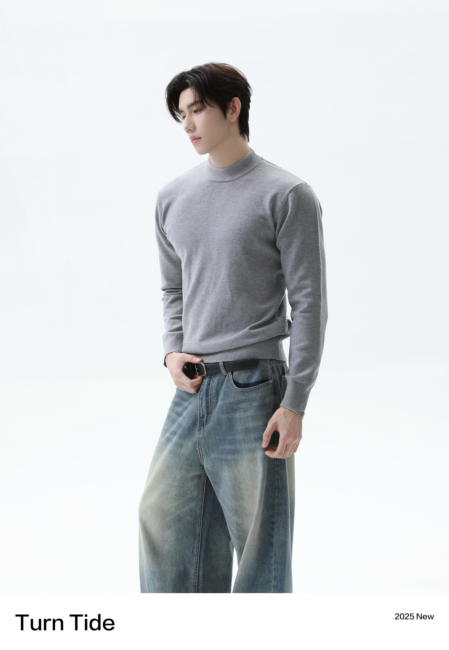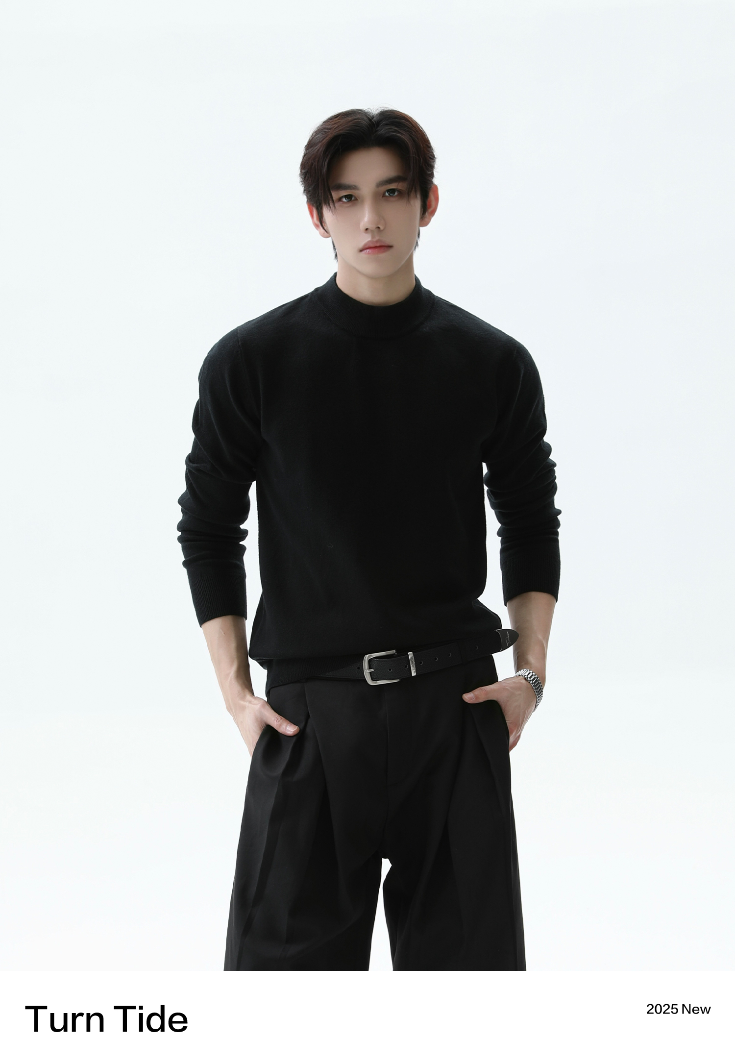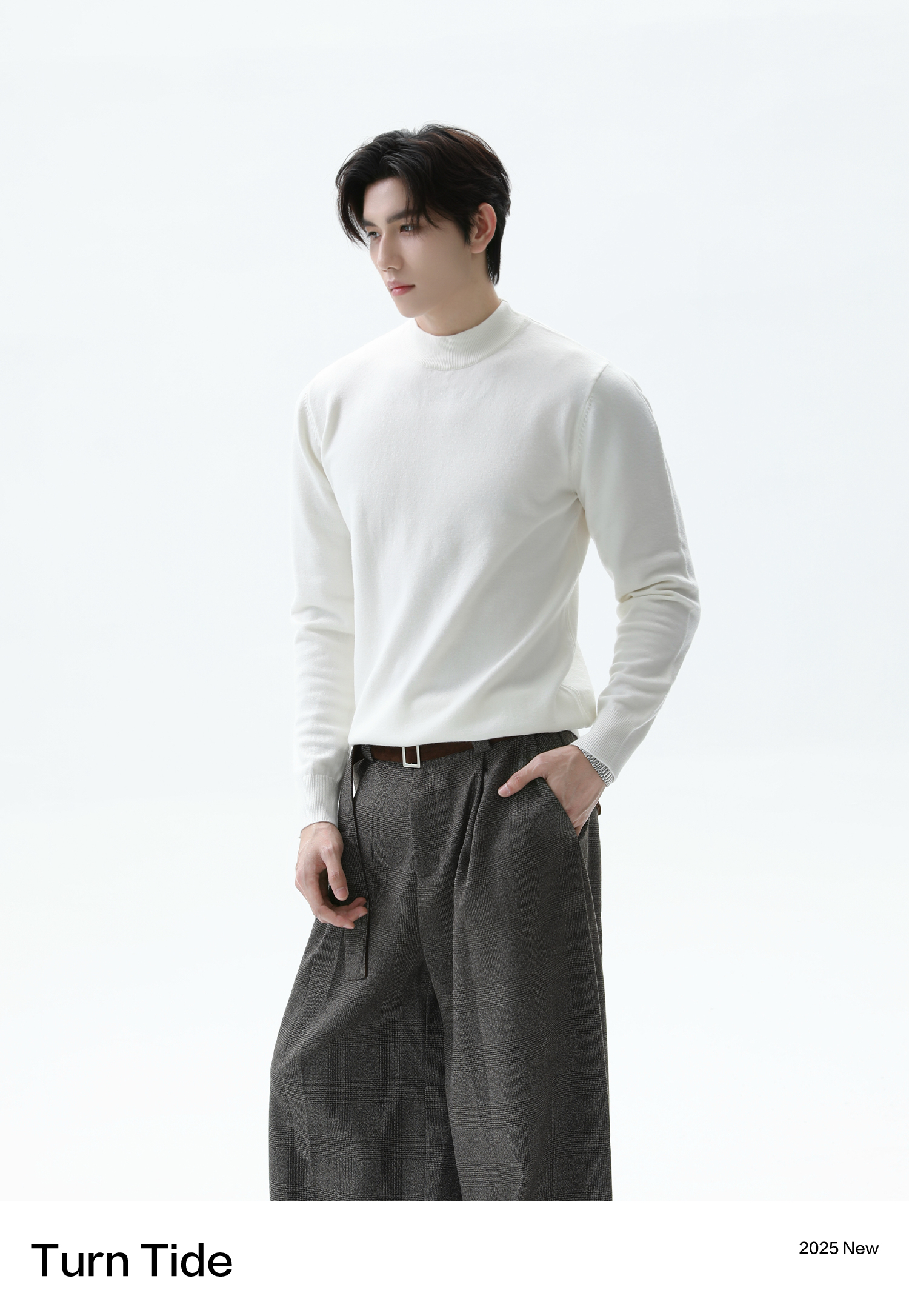 TURNTIDE 430g羊毛混紡萊賽爾半高領修身毛衣保暖打底內搭針織衫