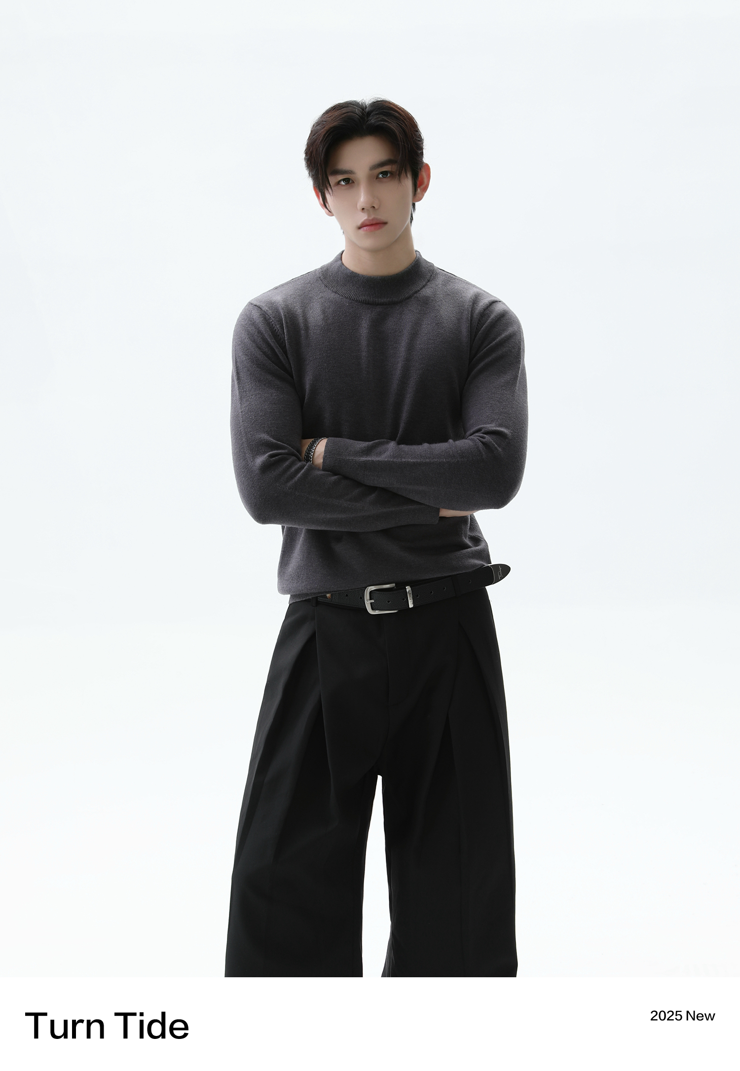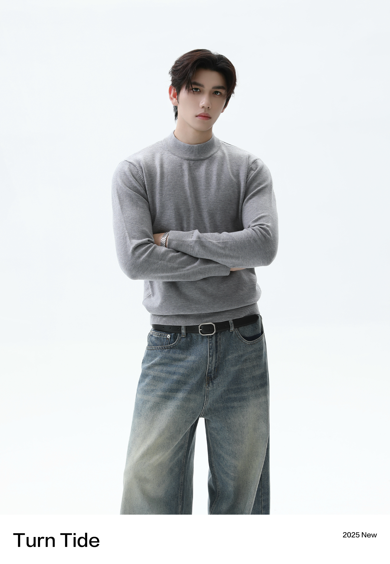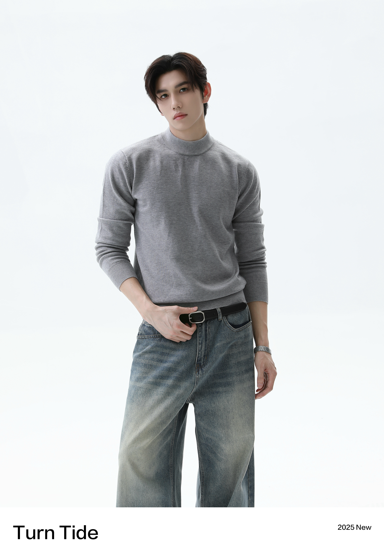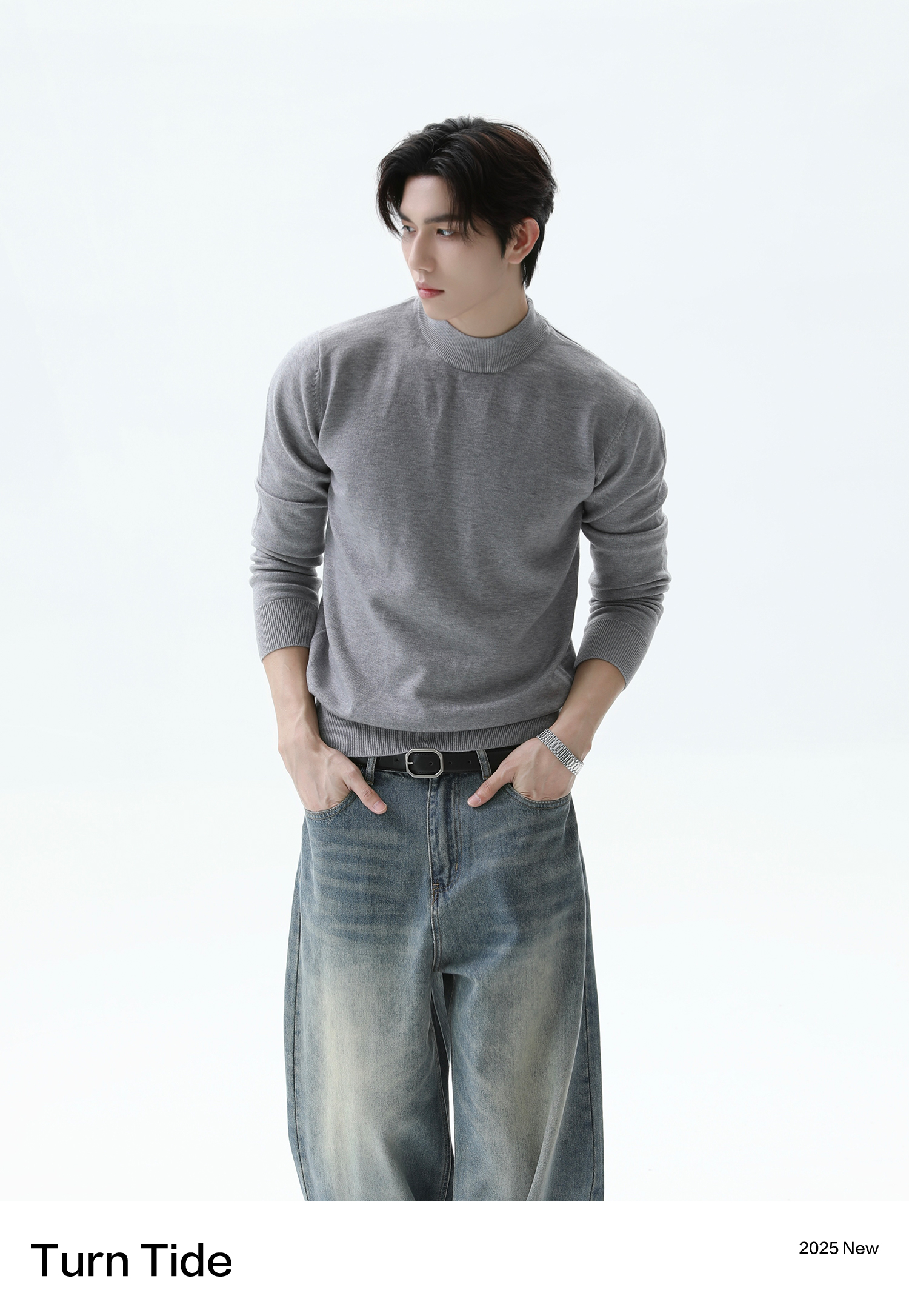TURNTIDE 430g羊毛混紡萊賽爾半高領修身毛衣保暖打底內搭針織衫