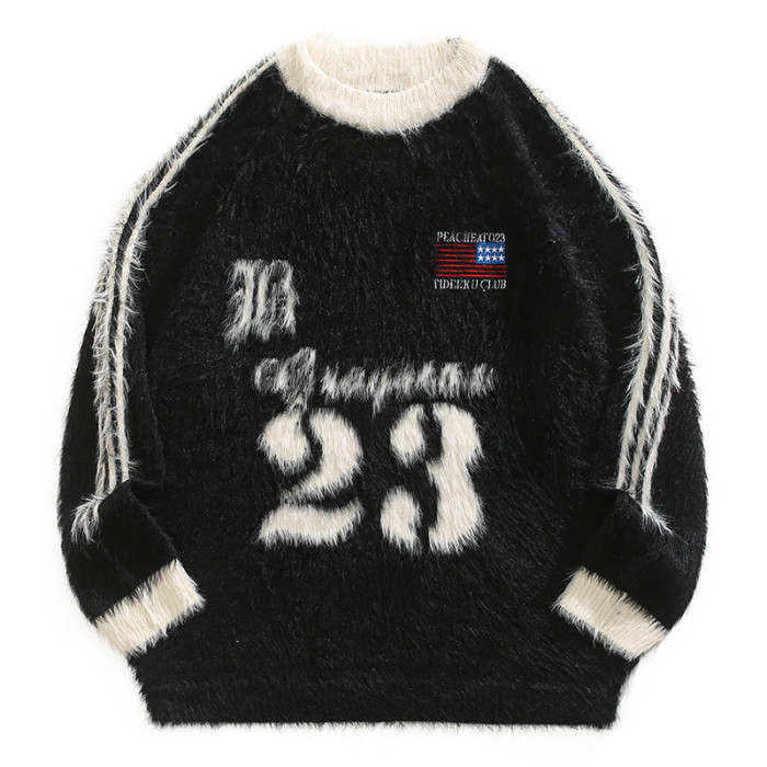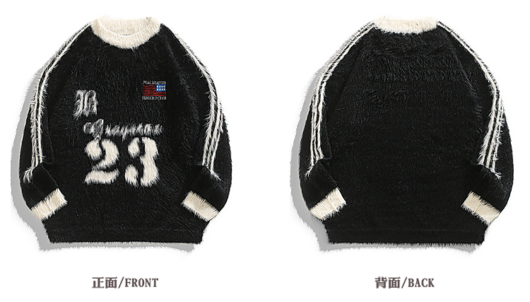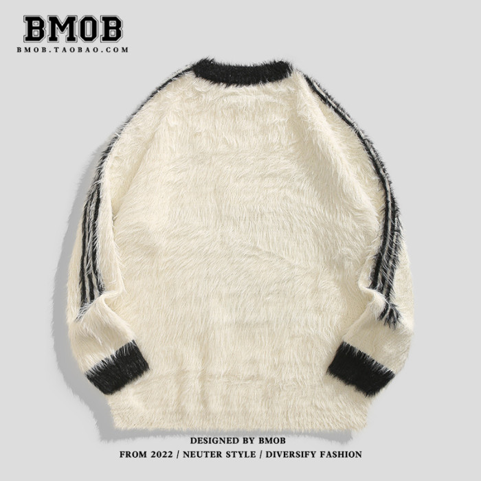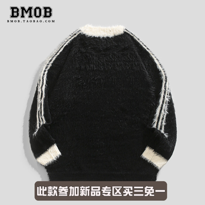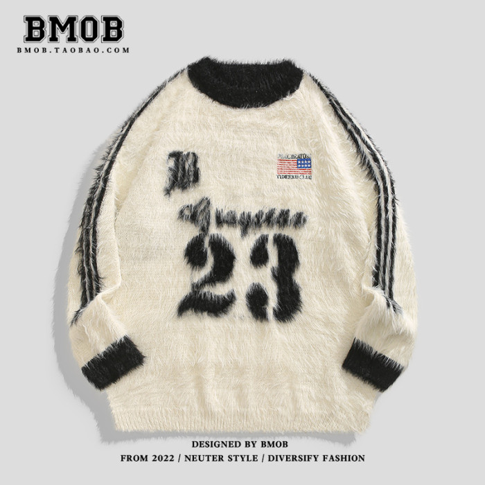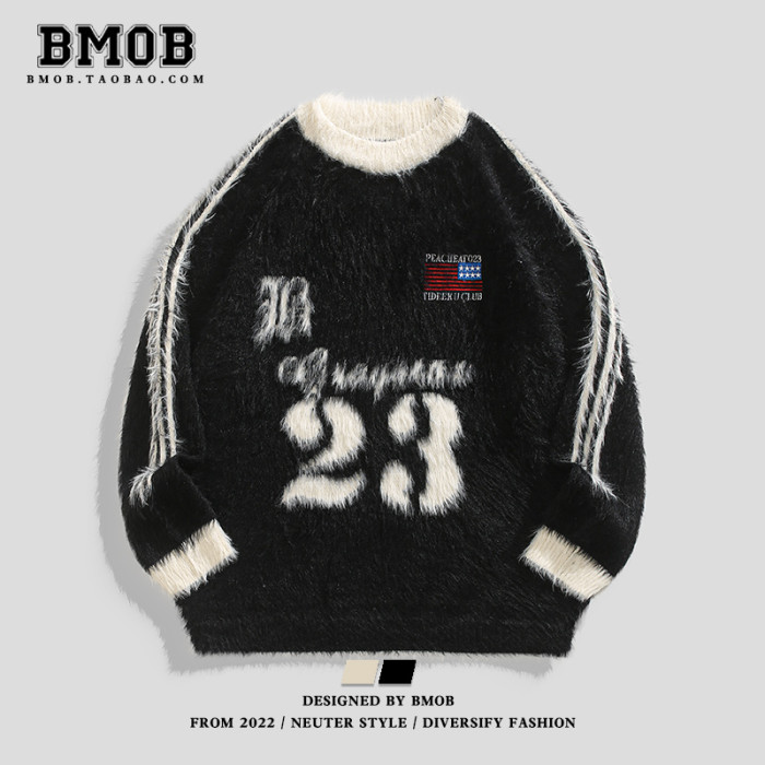 BMOB美式復古提花情侶毛衣男女秋季保暖高街慵懶設計感套頭針織衫