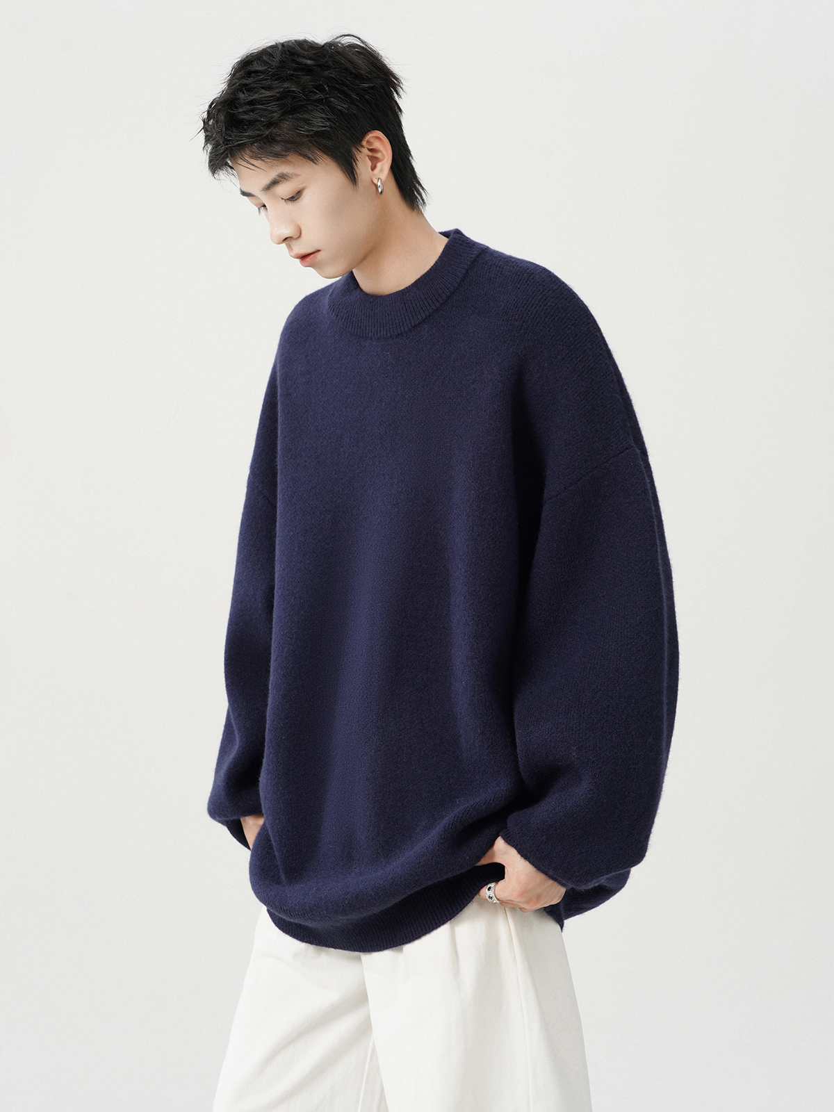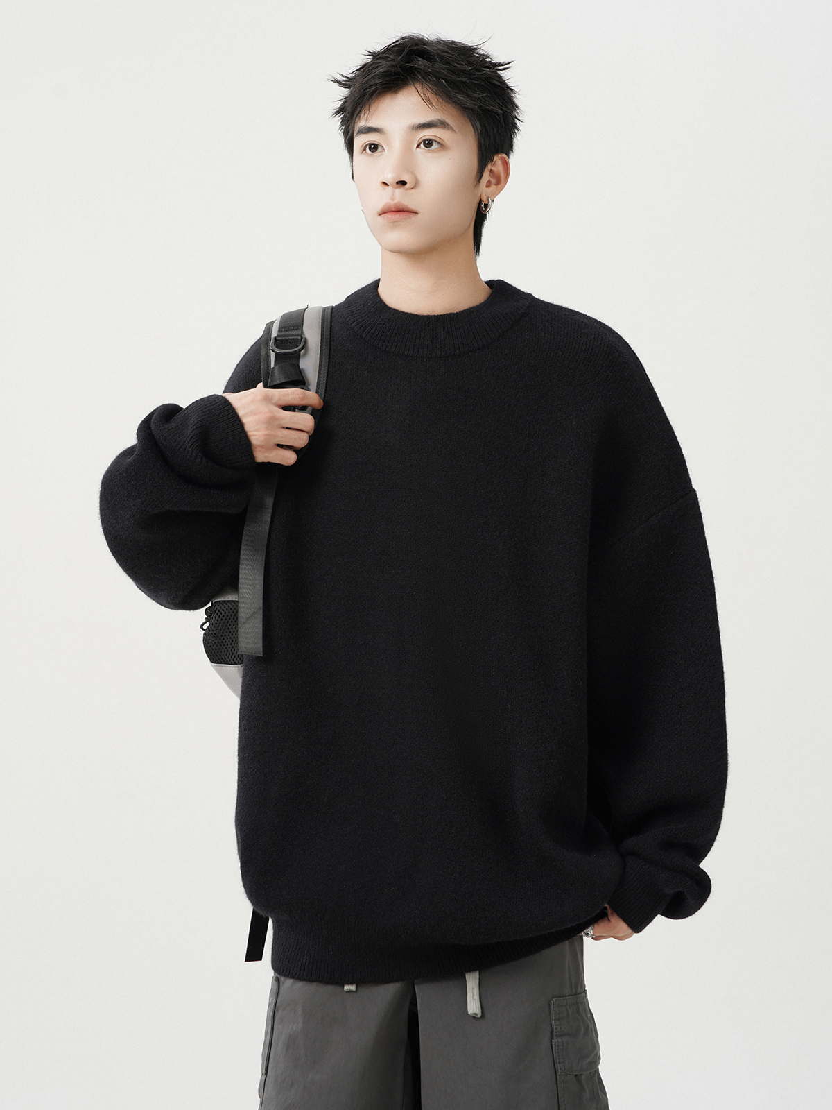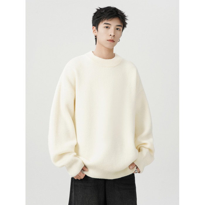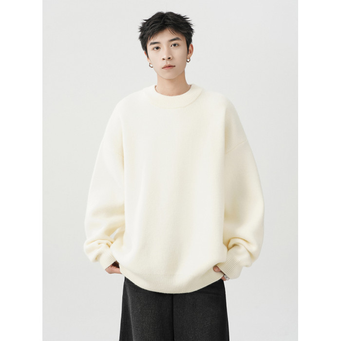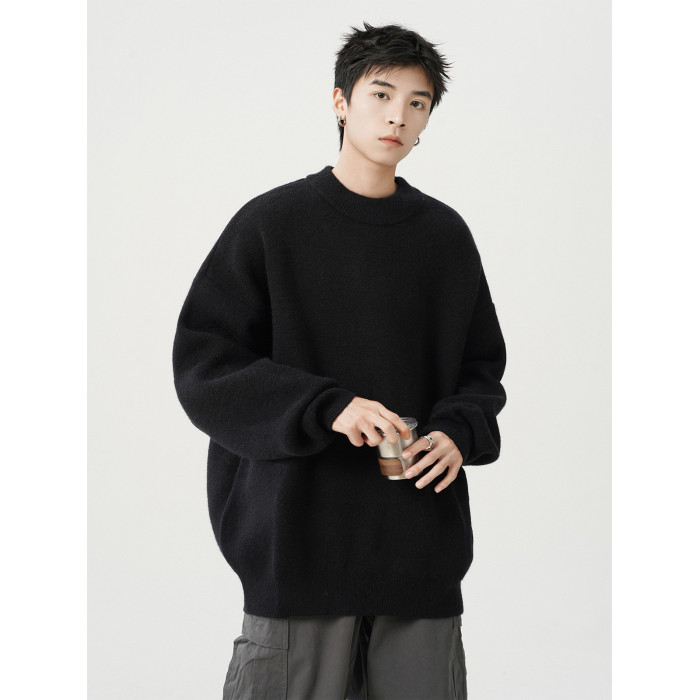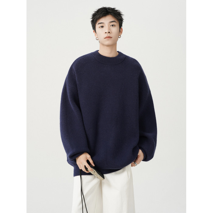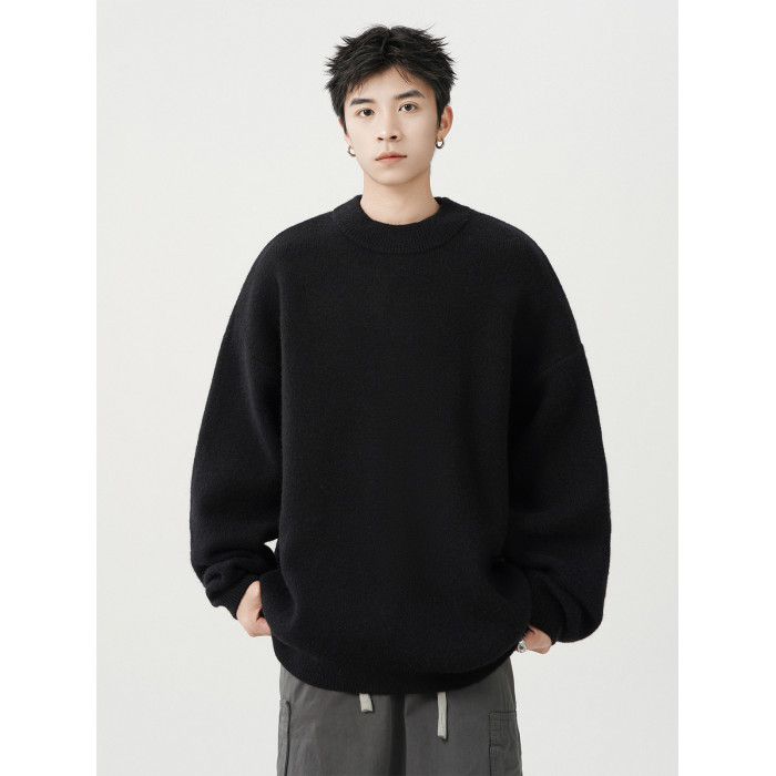 日系純色重磅圓領毛衣男秋冬季新款寬松慵懶風百搭套頭針織衫線衣