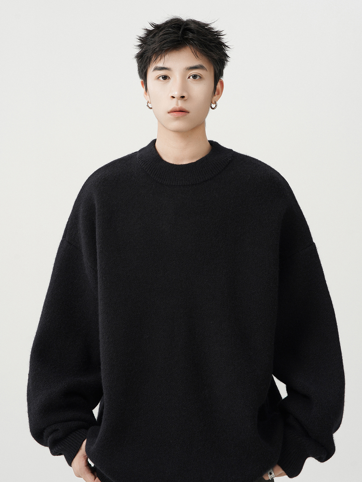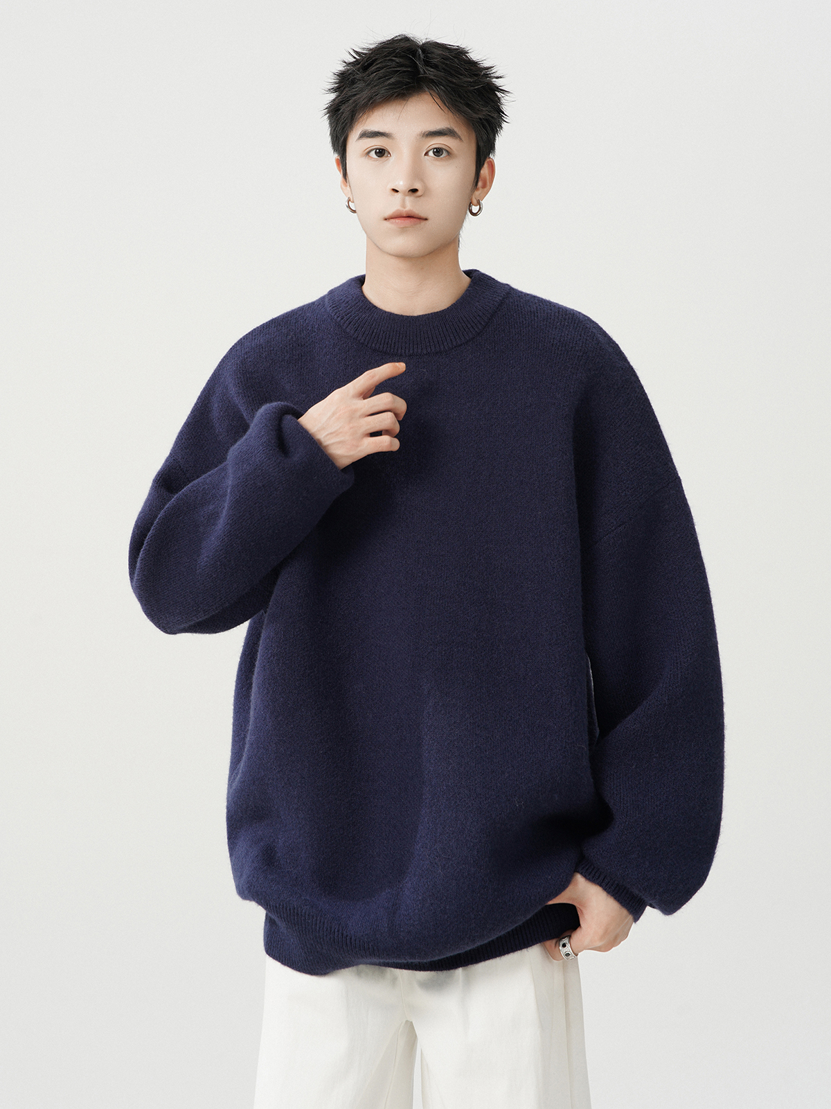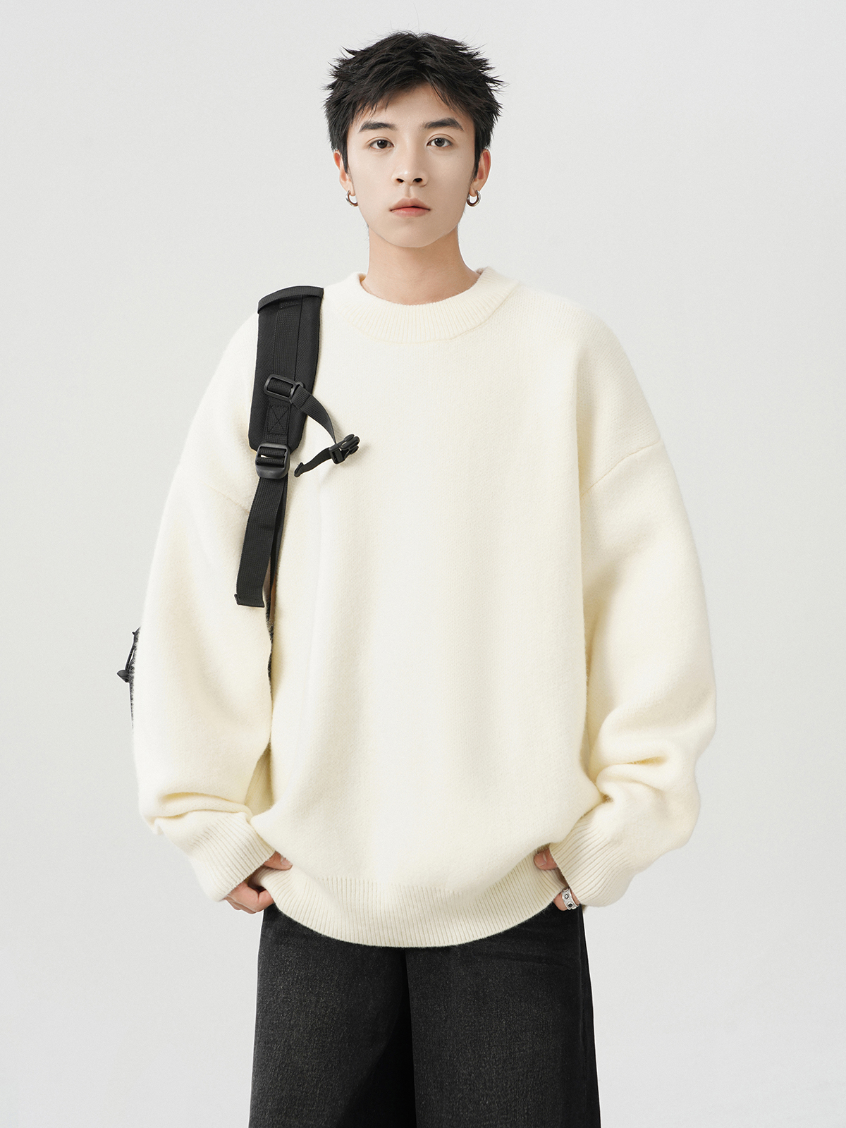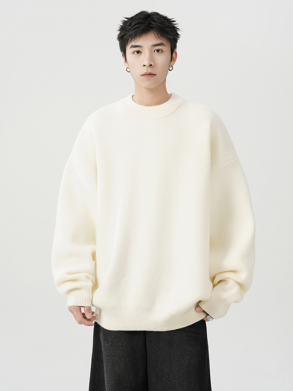 日系純色重磅圓領毛衣男秋冬季新款寬松慵懶風百搭套頭針織衫線衣