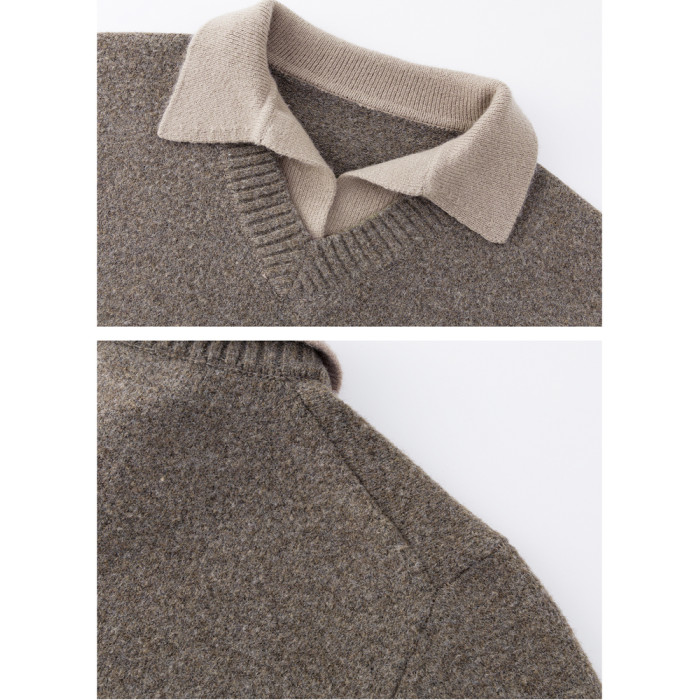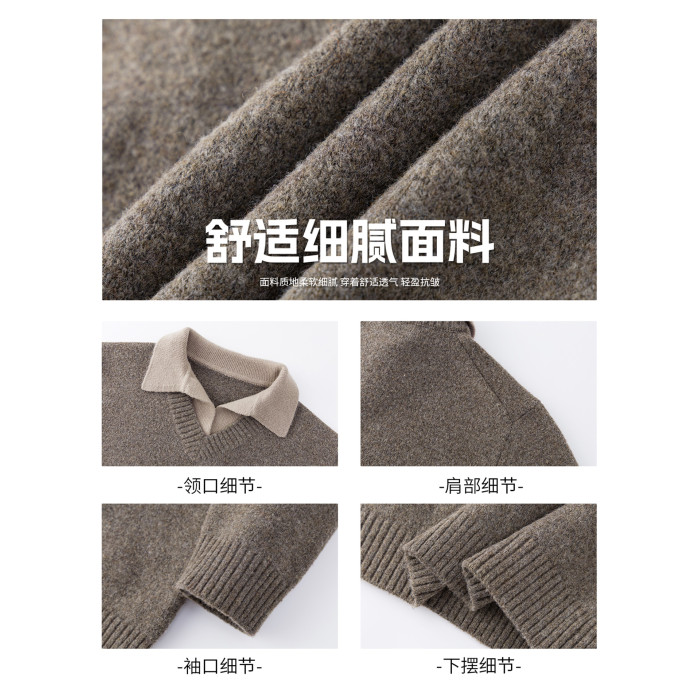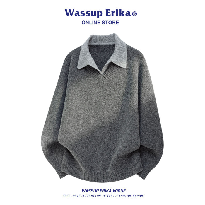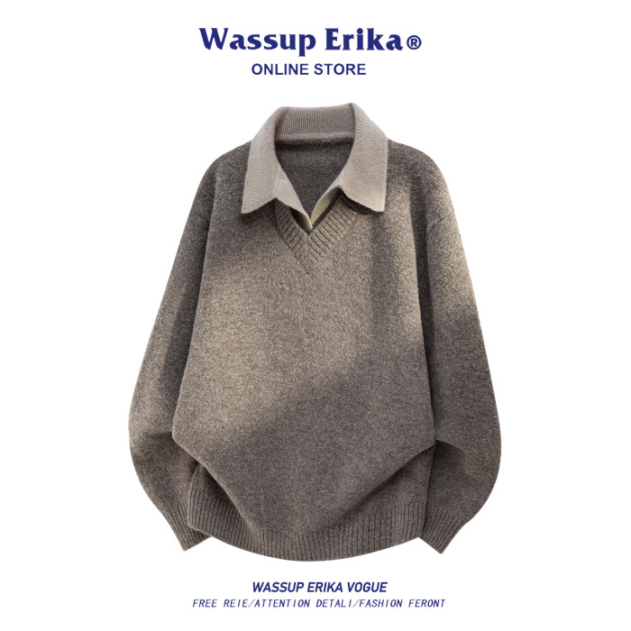 WASSUP ERIKA日系簡約翻領假兩件毛衣男秋冬新款休閒百搭針織衫女